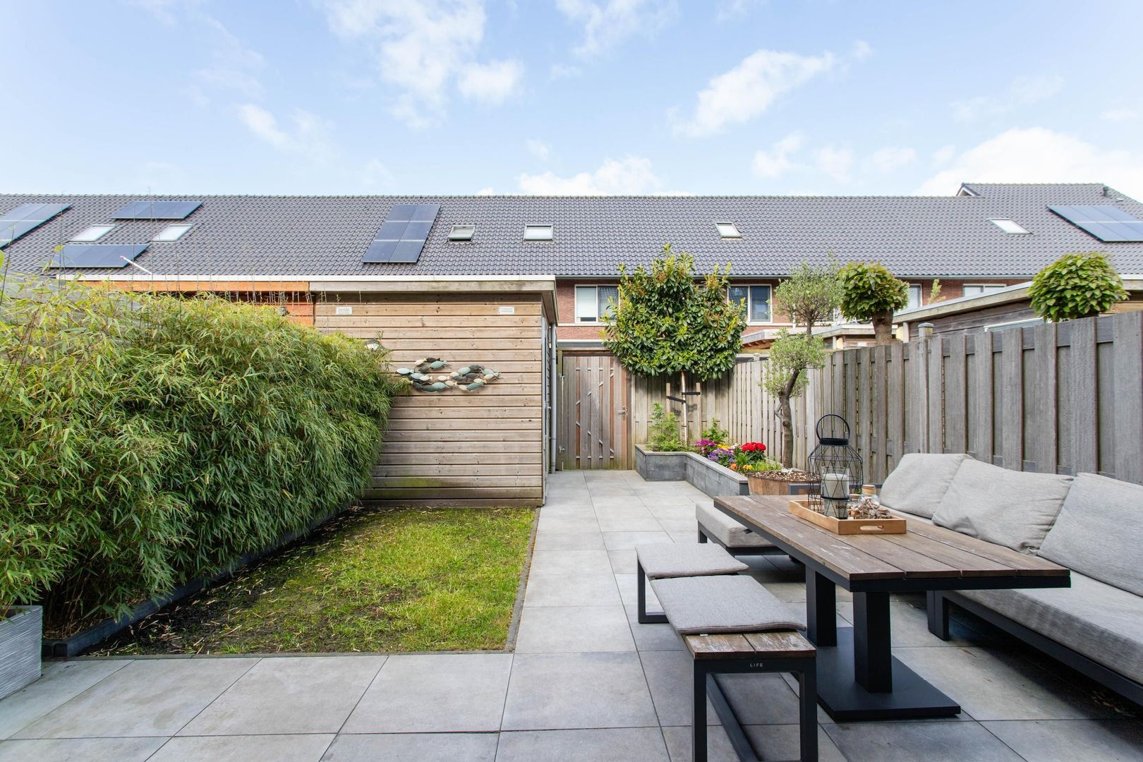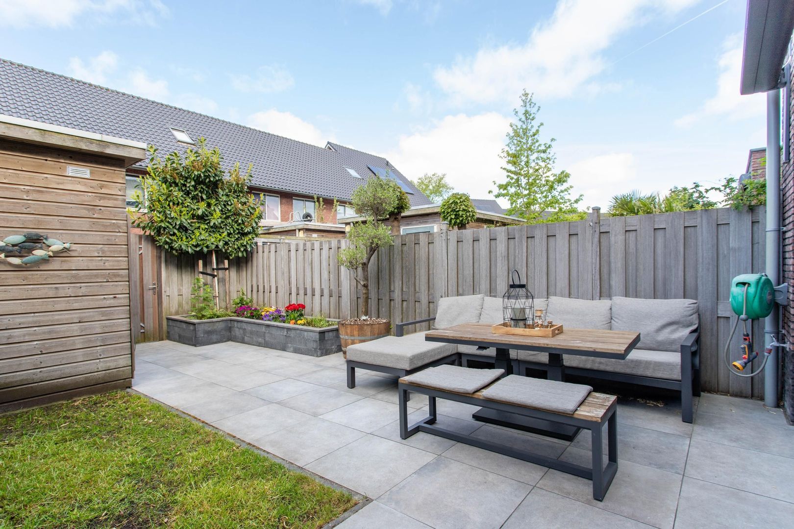 • Achtertuin op het westen waardoor er altijd een plek in de zon én schaduw te vinden is (achtertuin voorzien van achterom en berging);