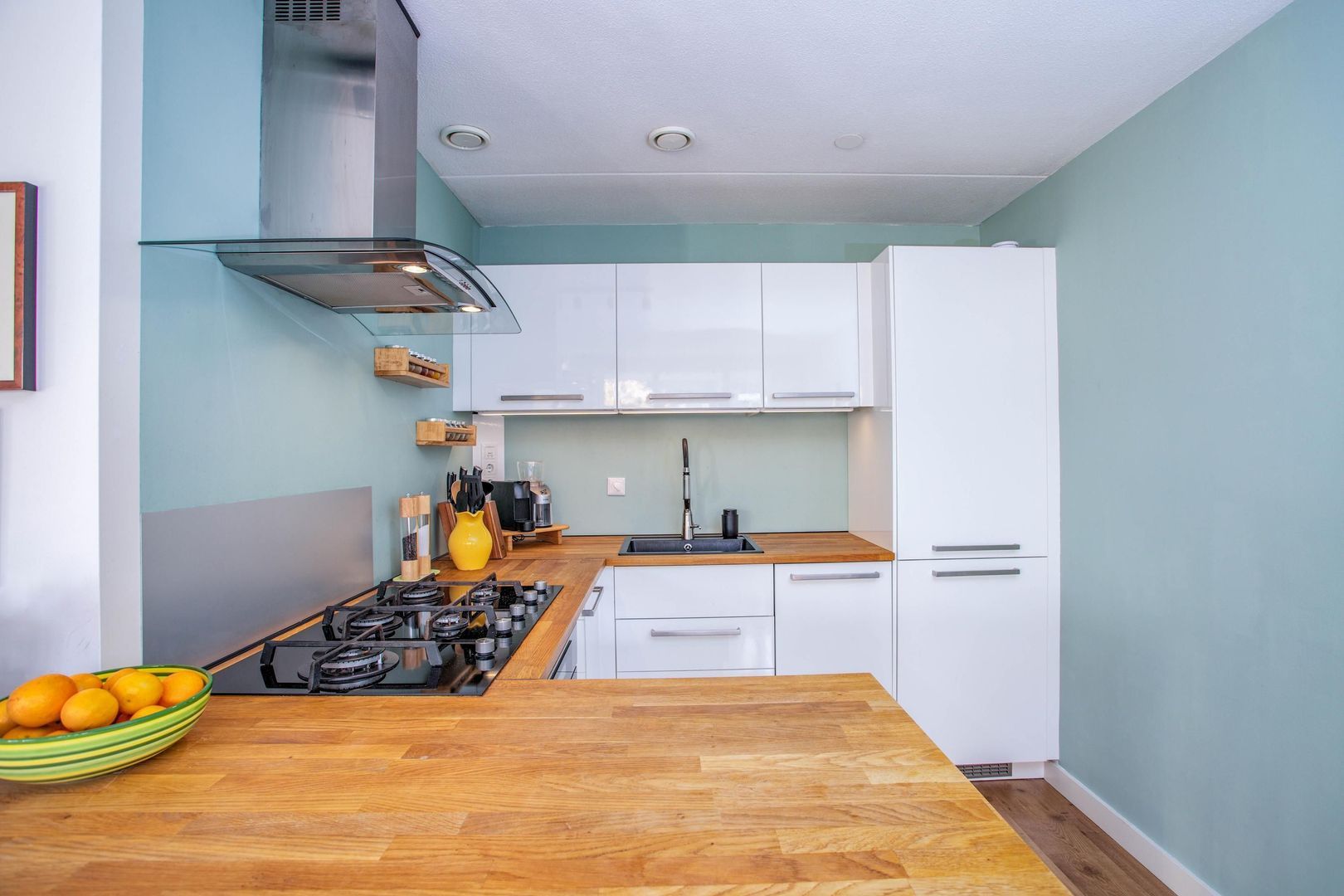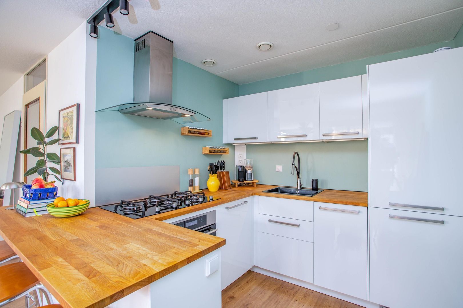 De woning omvat een ruime woonkamer met moderne open keuken met inbouwapparatuur en ruimte voor een fijne zithoek en eettafel. De kamer geeft toegang tot het zonnige balkon met veel privacy. Verder is er een verzorgde badkamer en twee praktische slaapkamers aanwezig. In de onderbouw is nog een eigen fietsberging gesitueerd.