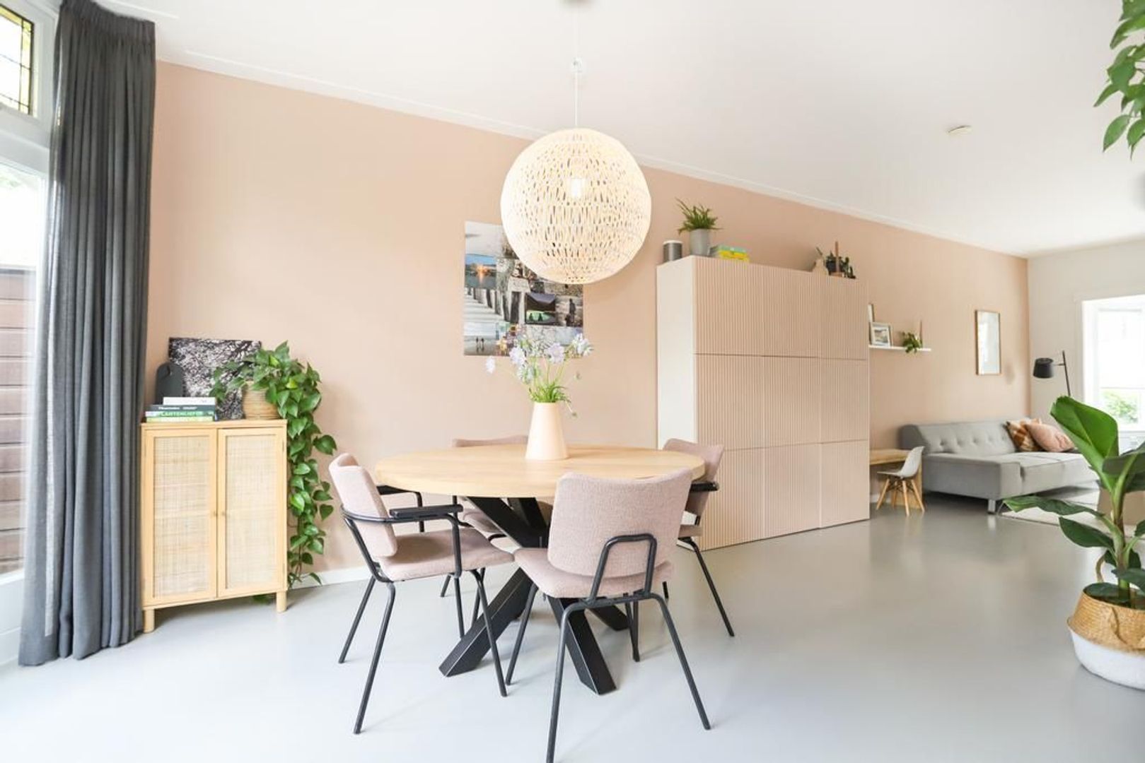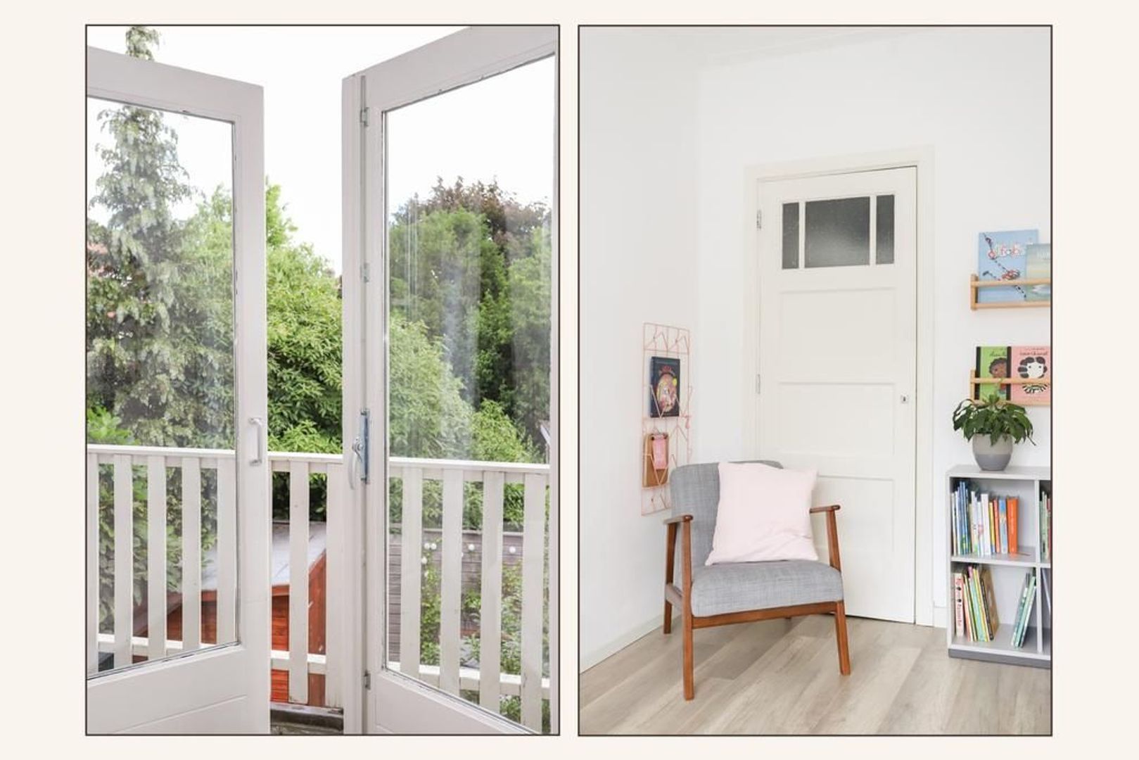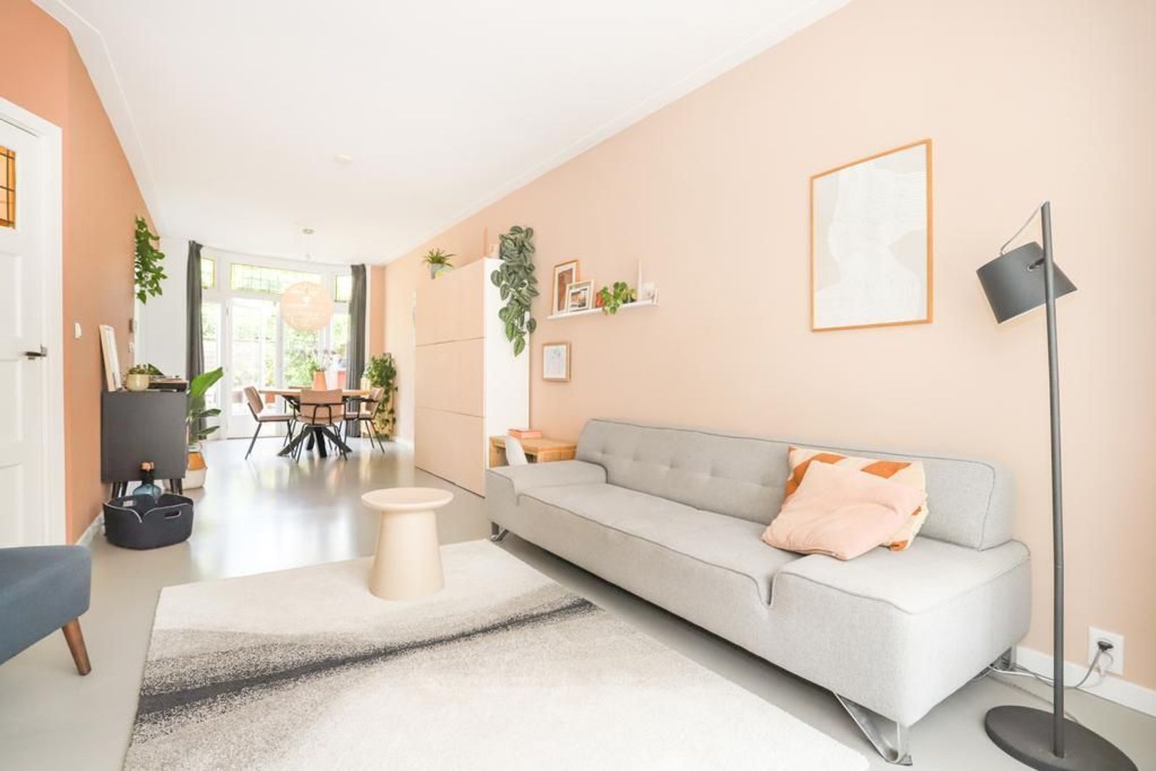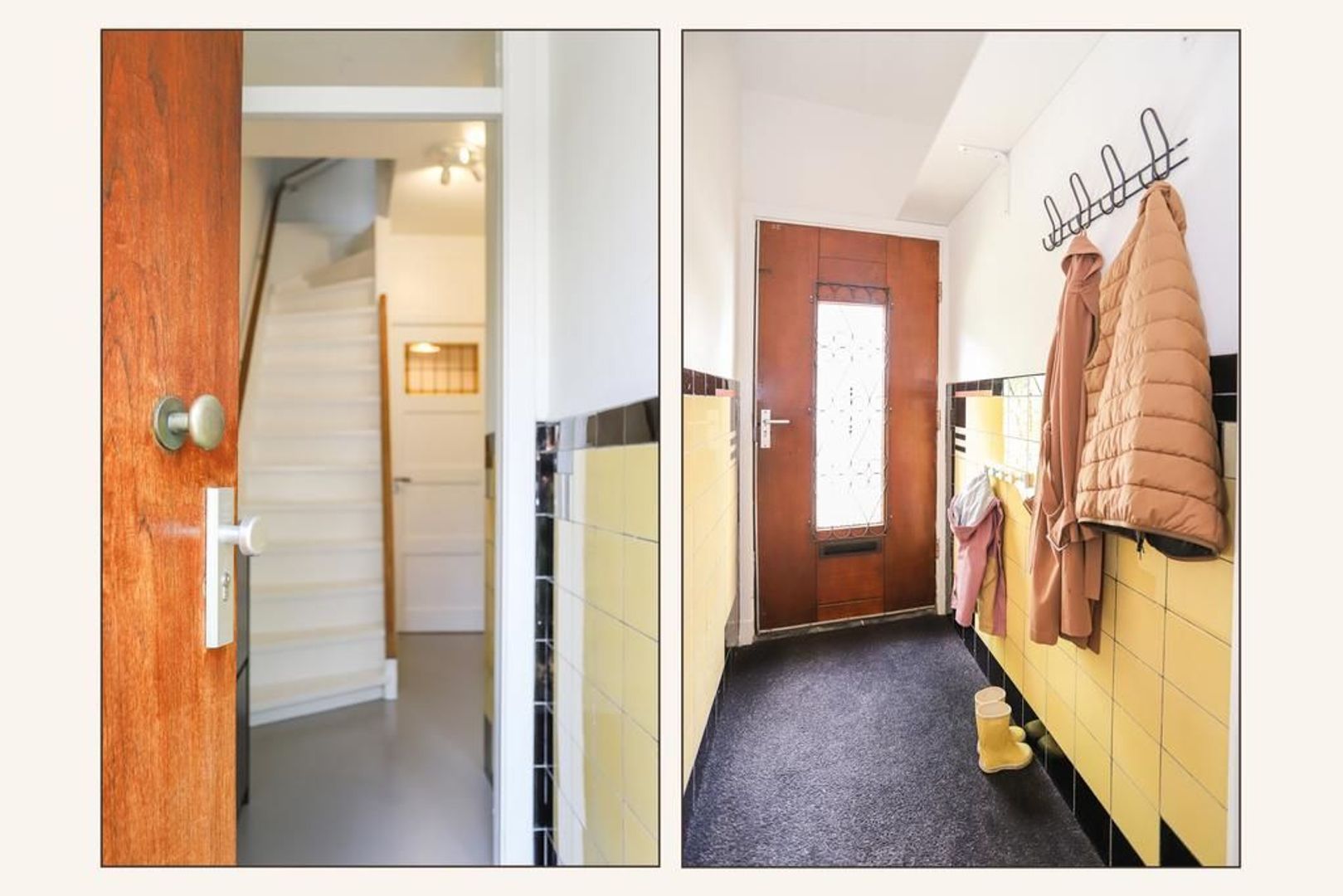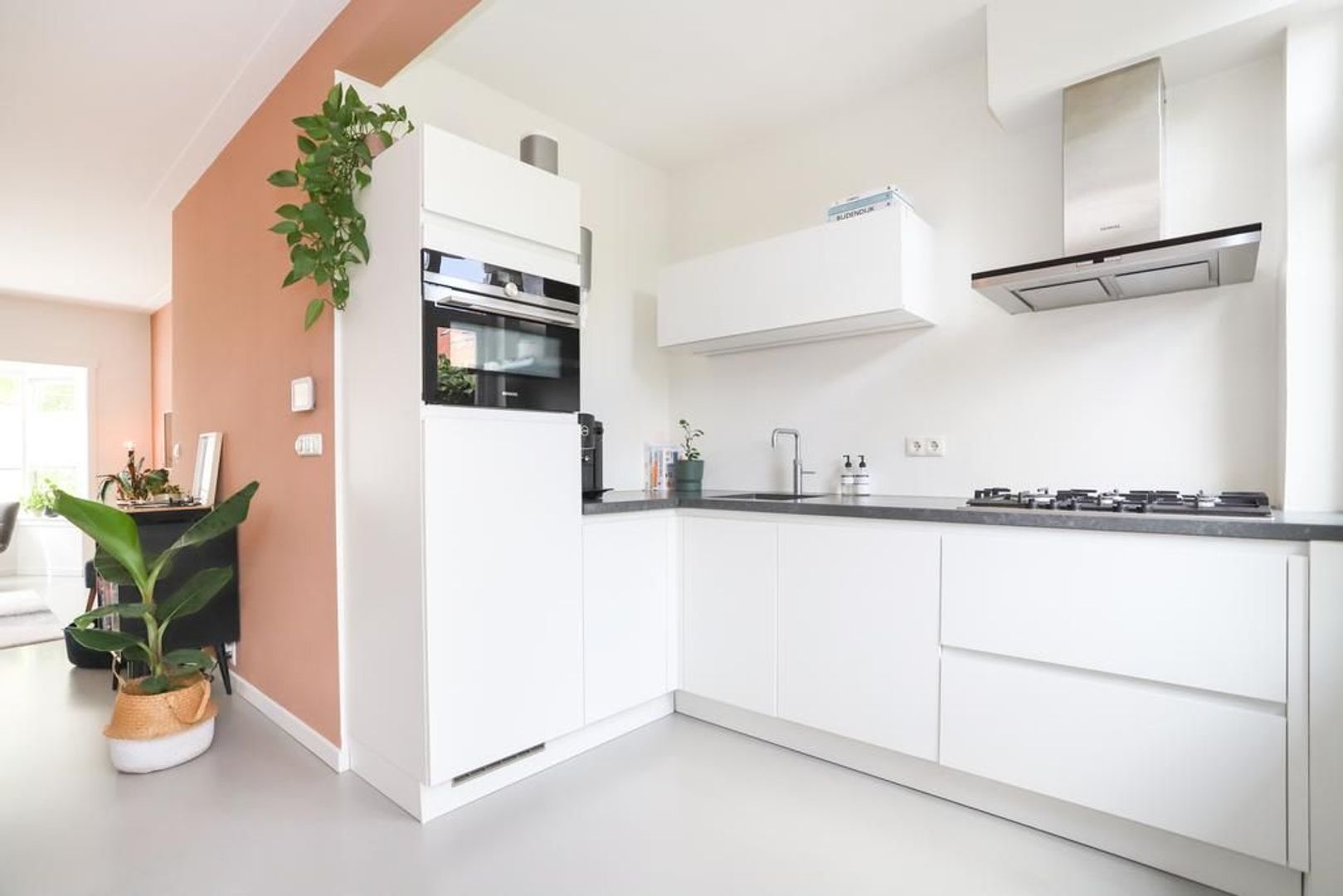 Begane grond: Voortuin gelegen op het zonnige zuiden. Entree met garderobe en authentieke details zoals de wandtegels en het glas-in-lood. Trapopgang naar de eerste verdieping, toegang tot de kelder onder het huis en separaat toilet. Wanneer je de sfeervolle woning binnen stapt merk je direct dat de ruimte licht en ruim aanvoelt. De gietvloer (met vloerverwarming) en de strak gestukte wanden met sierlijsten aan het plafond geven de moderne en een gemoedelijk uitstraling. Aan de voorzijde van de woning is de ruime zithoek gelegen met erker die voor veel licht inval zorgt. Aan de achterzijde van de woning is de royale eetkeuken gelegen met uitzicht op de groene achtertuin. Hier is voldoende plek voor een grote eettafel waar gezellig gedineerd en geborreld kan worden. De moderne matwitte keuken is voorzien van inbouw apparatuur zoals een 5-pits gastoestel, afzuigkap, combi-oven, koel-vriescombinatie, Quooker en een vaatwasser.