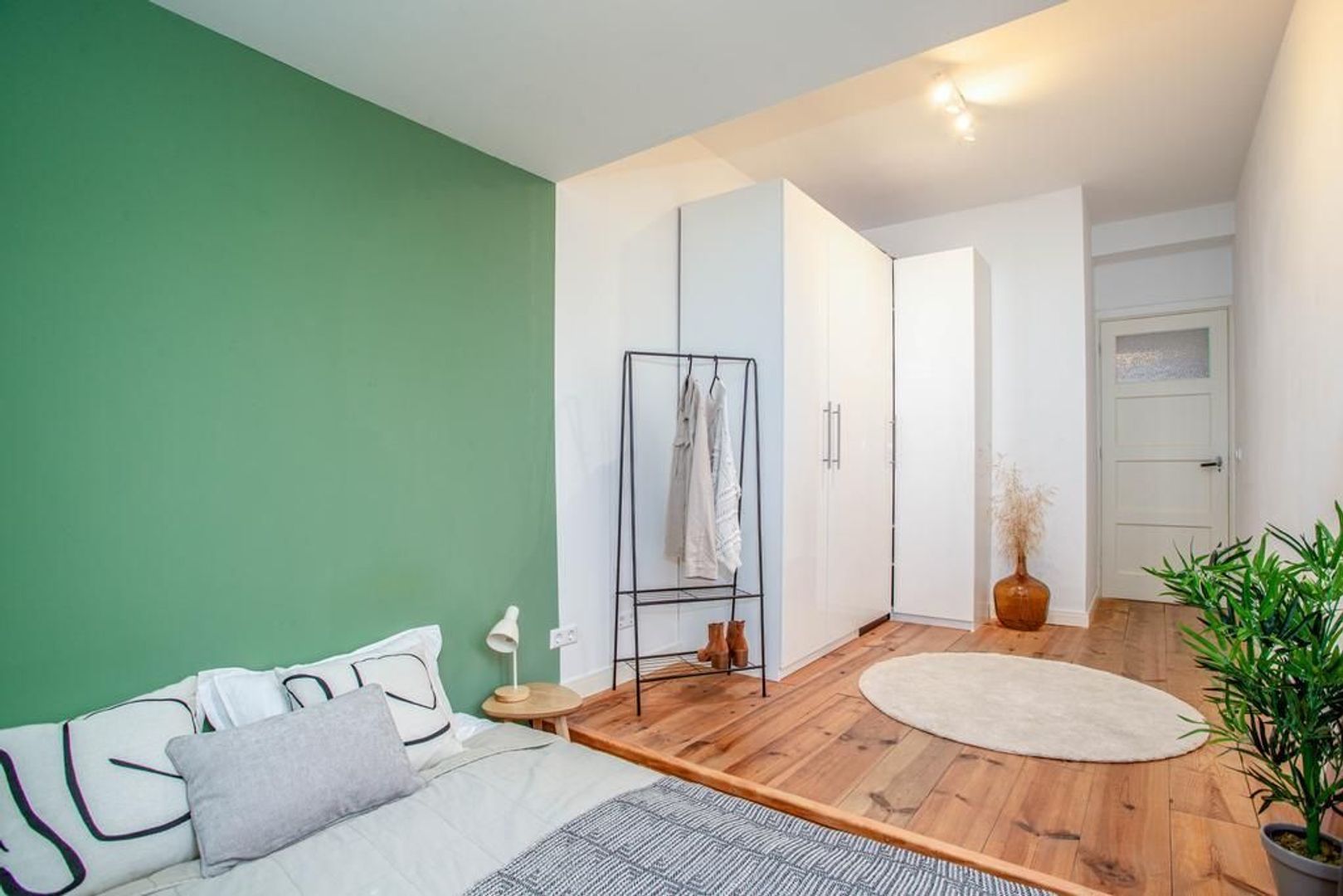 De kleinste slaapkamer bevindt zich aan de voorkant en is groot genoeg voor een tweepersoonsbed en een kast. Deze kamer leent zich ook uitstekend als thuiskantoor. De grootste slaapkamer ligt aan de achterkant en biedt voldoende ruimte voor een groot tweepersoonsbed en een kast. Door de verhoging heeft deze kamer een speelse indeling. Bovendien heeft de slaapkamer een directe verbinding met de tuin via de openslaande deuren.