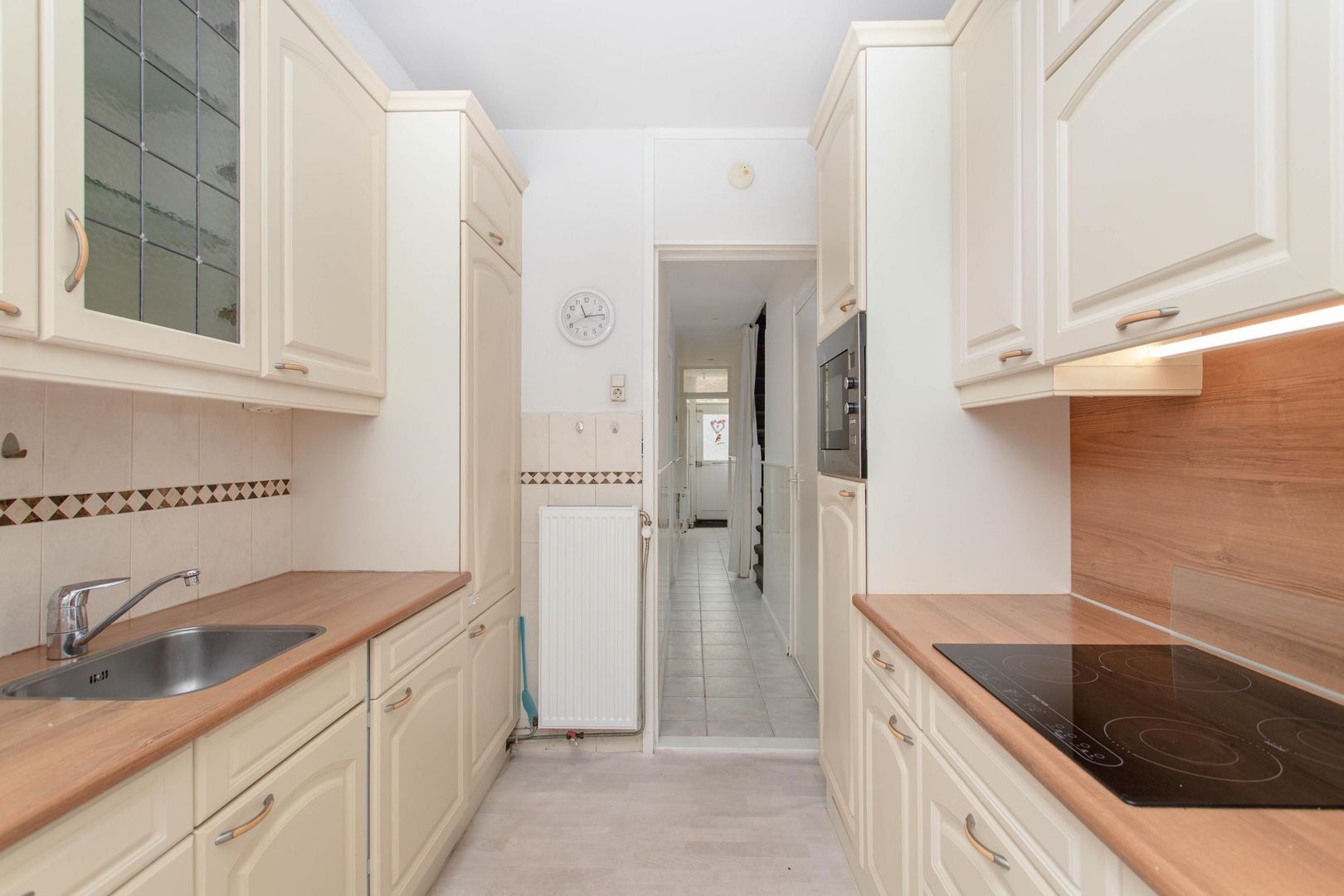De keuken is bereikbaar via de hal en voorzien van diverse inbouwapparatuur, zoals een koel-/vriescombinatie, inductiekookplaat, combi-oven en vaatwasser.