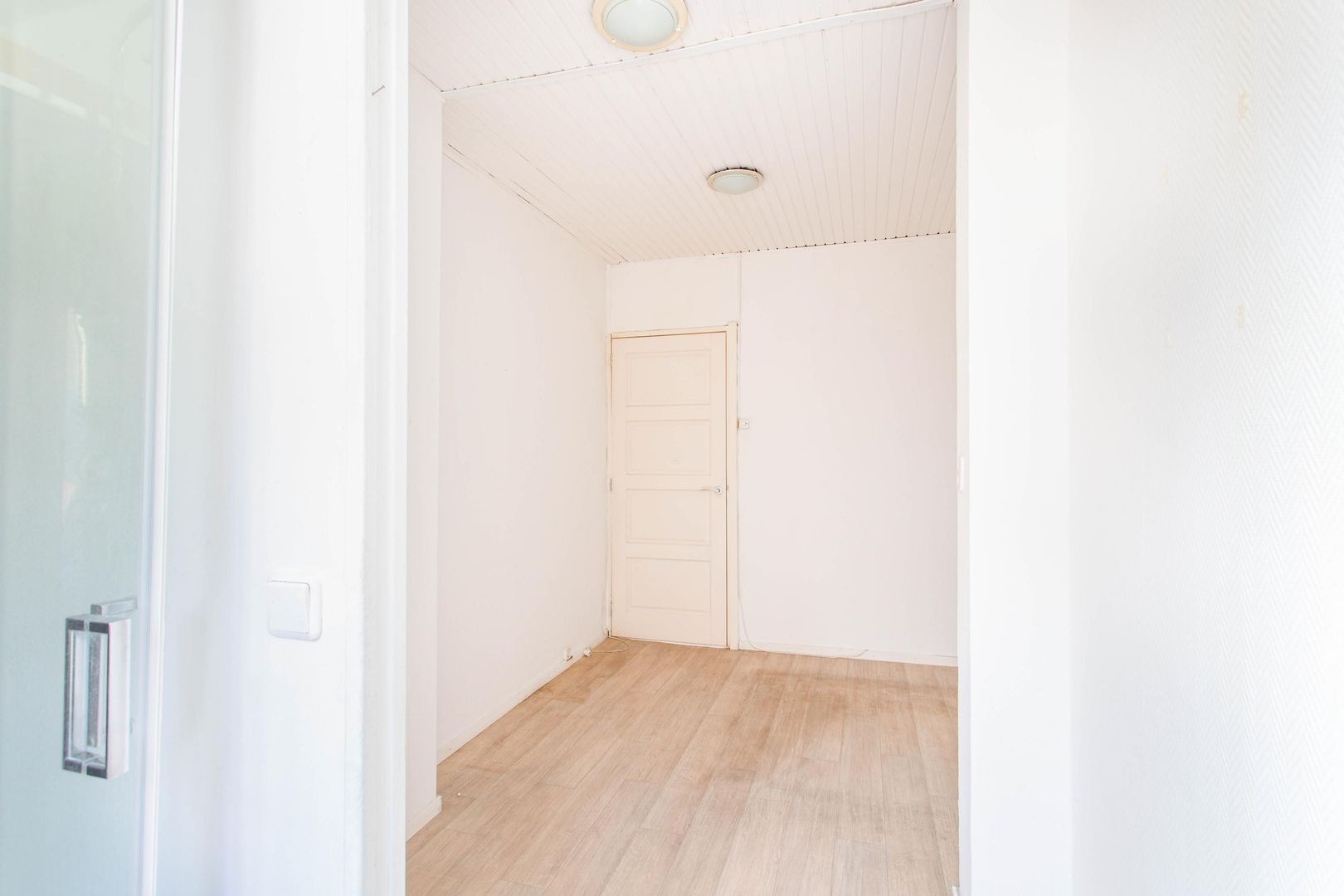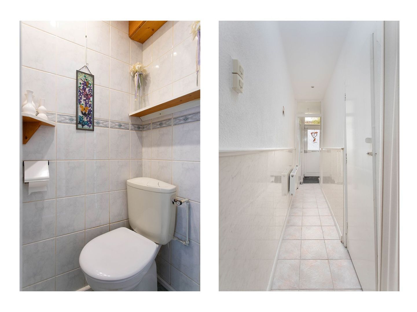 Via de hal bereik je ook het separate toilet en de trap naar de eerste verdieping.