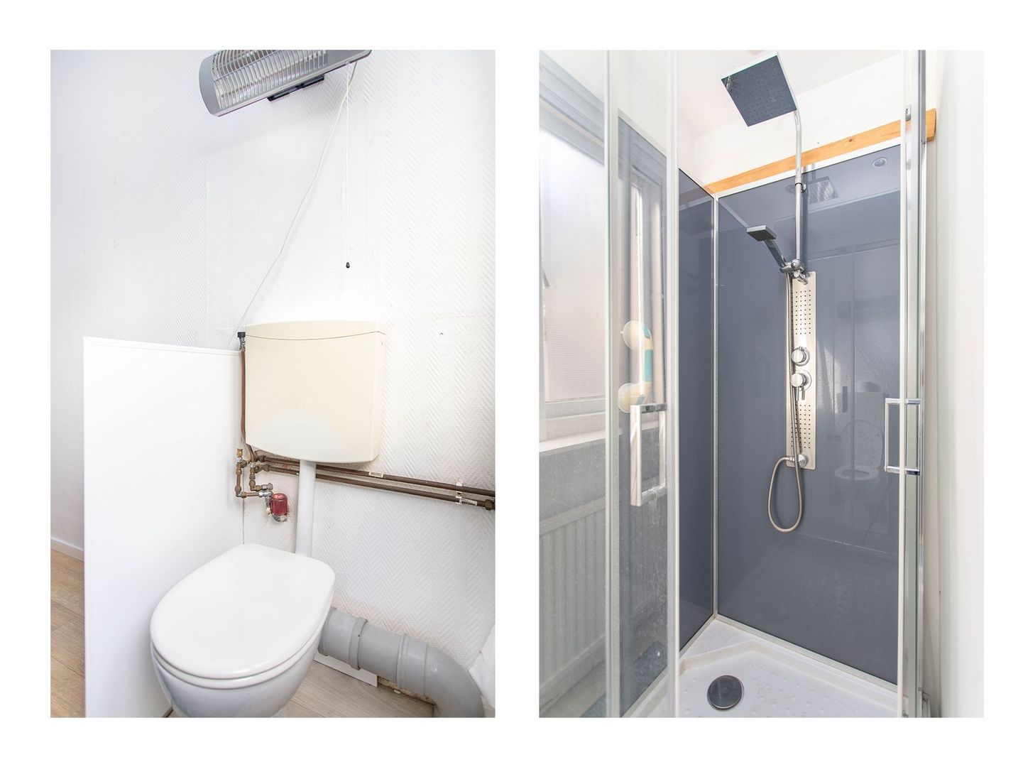 Aan de voorzijde van de woning bevindt zich het woongedeelte, dat voldoende ruimte biedt voor een gezellige zithoek en eettafel. Vanuit de woonkamer heb je toegang tot de slaapkamer op de begane grond, die uitzicht biedt op de tuin. De tuin ligt op het noordoosten – ideaal om zowel van de zon als van de schaduw te genieten. In de tuin bevindt zich tevens een vrijstaande berging.