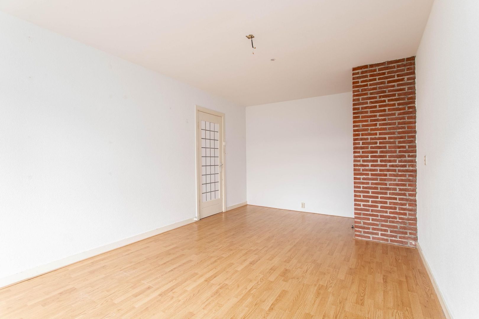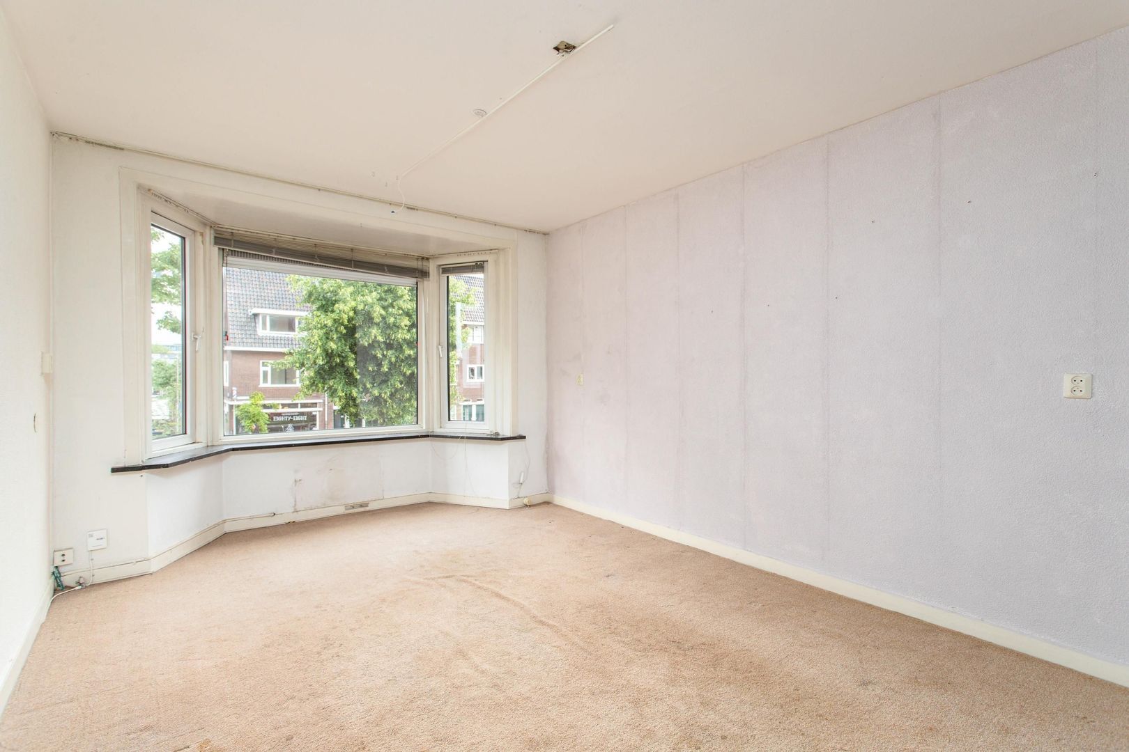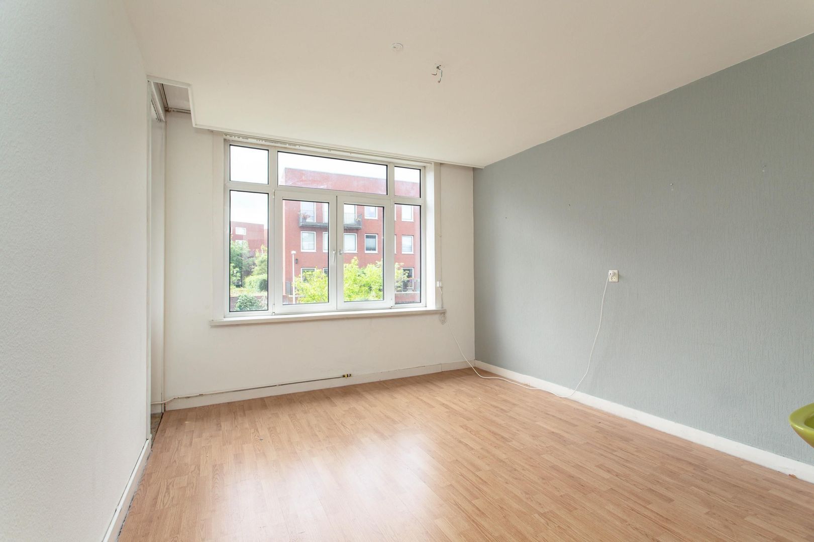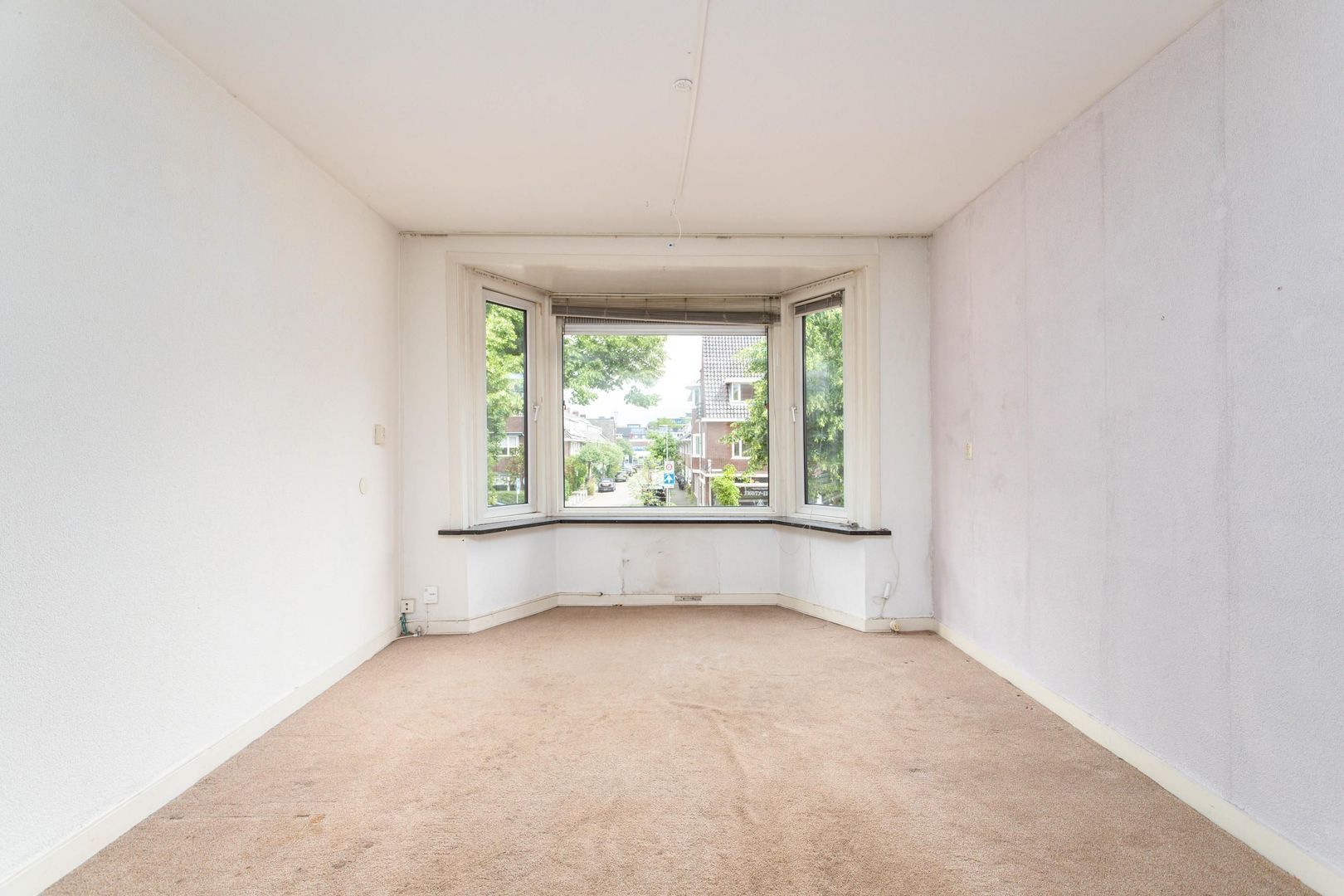De woonkamer ligt aan de voorzijde en is opvallend licht dankzij de brede erker. Aan de achterzijde is een slaapkamer gecreëerd. De wand tussen de woon- en slaapkamer is eenvoudig te verwijderen, waardoor een lichte doorzonkamer ontstaat met zicht aan zowel voor- als achterzijde. Vanuit deze kamer is het balkon op het westen te bereiken, waar je tot in de avond van de zon kunt genieten.