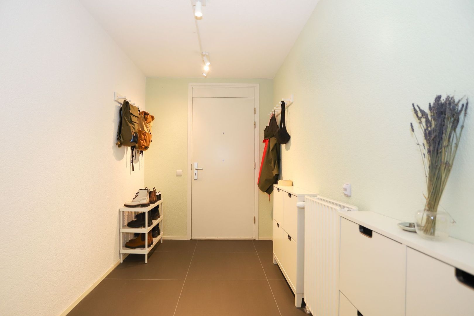 Centrale entree: Afgesloten ruime entreehal, die slechts met twee andere appartementseigenaren wordt gedeeld. Privé entree, ruime ontvangsthal met bergruimte onder de trap. Aansluitend aan deze hal tref je de inpandige privé berging, die ook bereikbaar is via de entree aan de achterzijde (met toegang tot de parkeergarage).