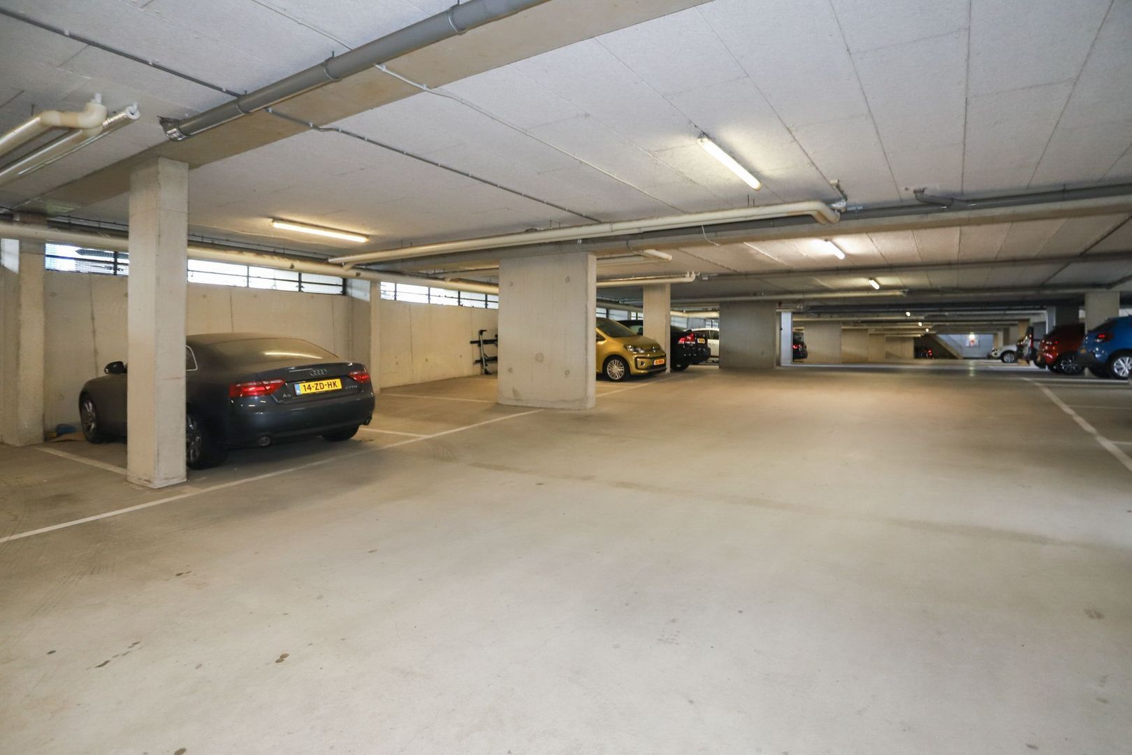 De ruime inpandige berging is direct toegankelijk vanuit het appartement. Aan de achterzijde van het appartement is een eigen overdekte opstelplaats voor twee fietsen en is de parkeergarage beneden bereikbaar. Bij het appartement behoort een privé parkeerplek en de entree van de garage ligt aan de Vondellaan.