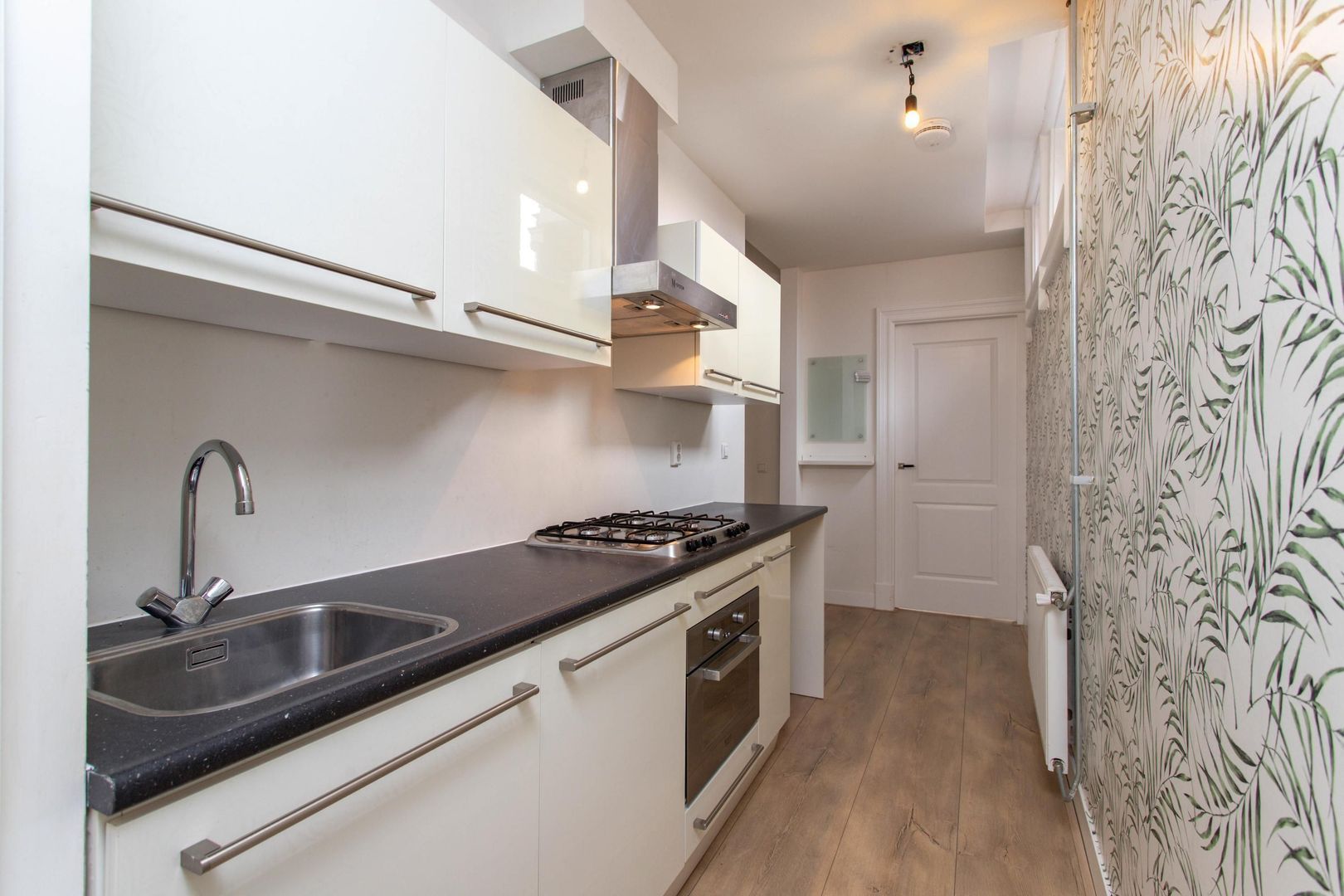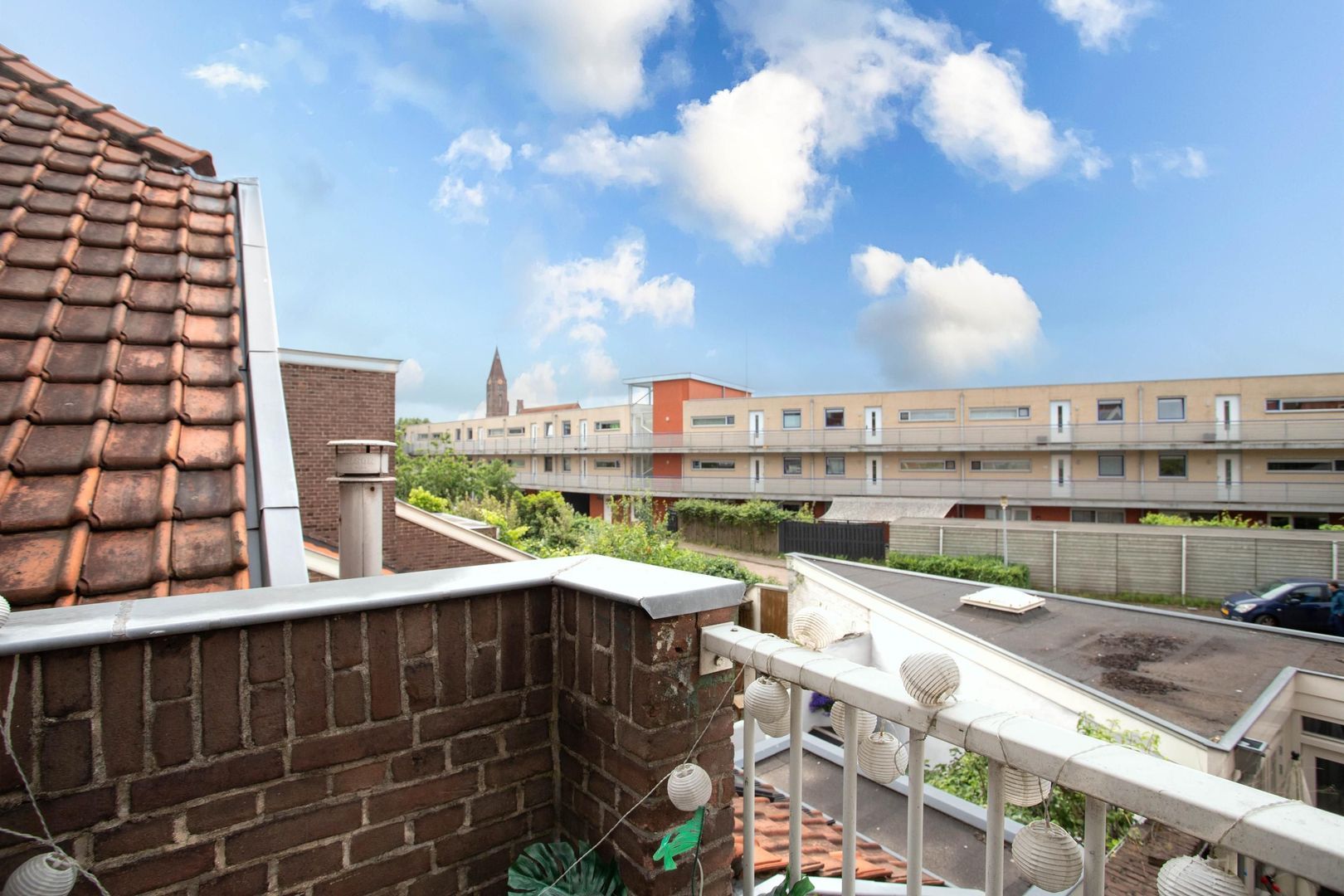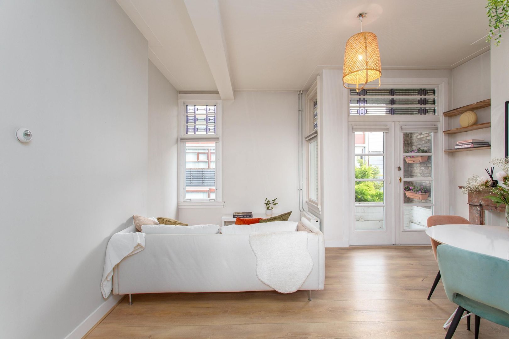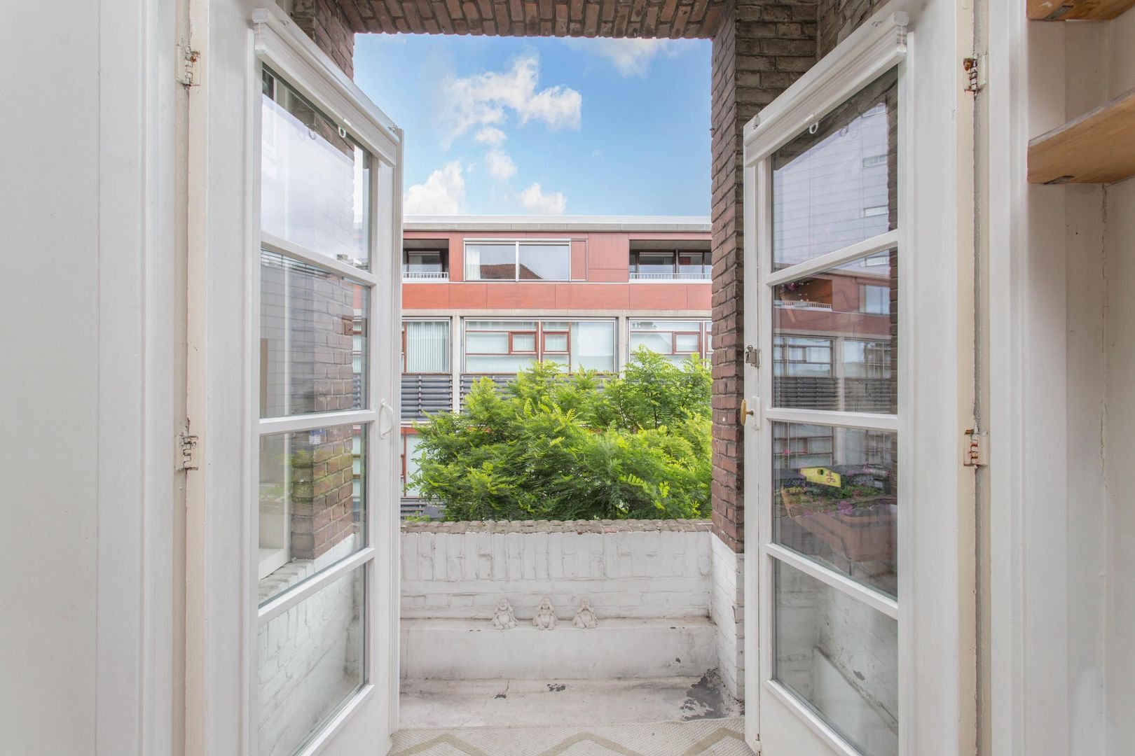De woning beschikt in totaal over twee balkons. Het balkon aan de achterzijde is toegankelijk vanuit de slaapkamer. Dankzij de ligging op het zonnige zuiden is dit een heerlijke plek om op een zomerse dag te ontspannen met een glas wijn en te genieten van het stadse leven.