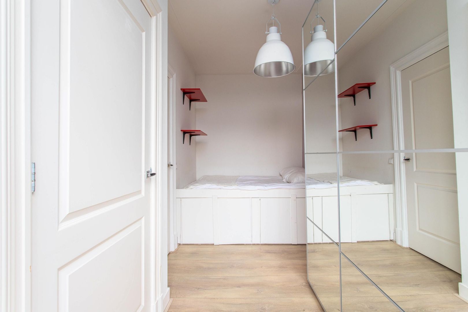 De slaapkamer is gelegen aan de achterzijde van het appartement en is ruim genoeg voor een tweepersoonsbed en een grote linnenkast. Tevens is de slaapkamer voorzien van een inbouwkast.