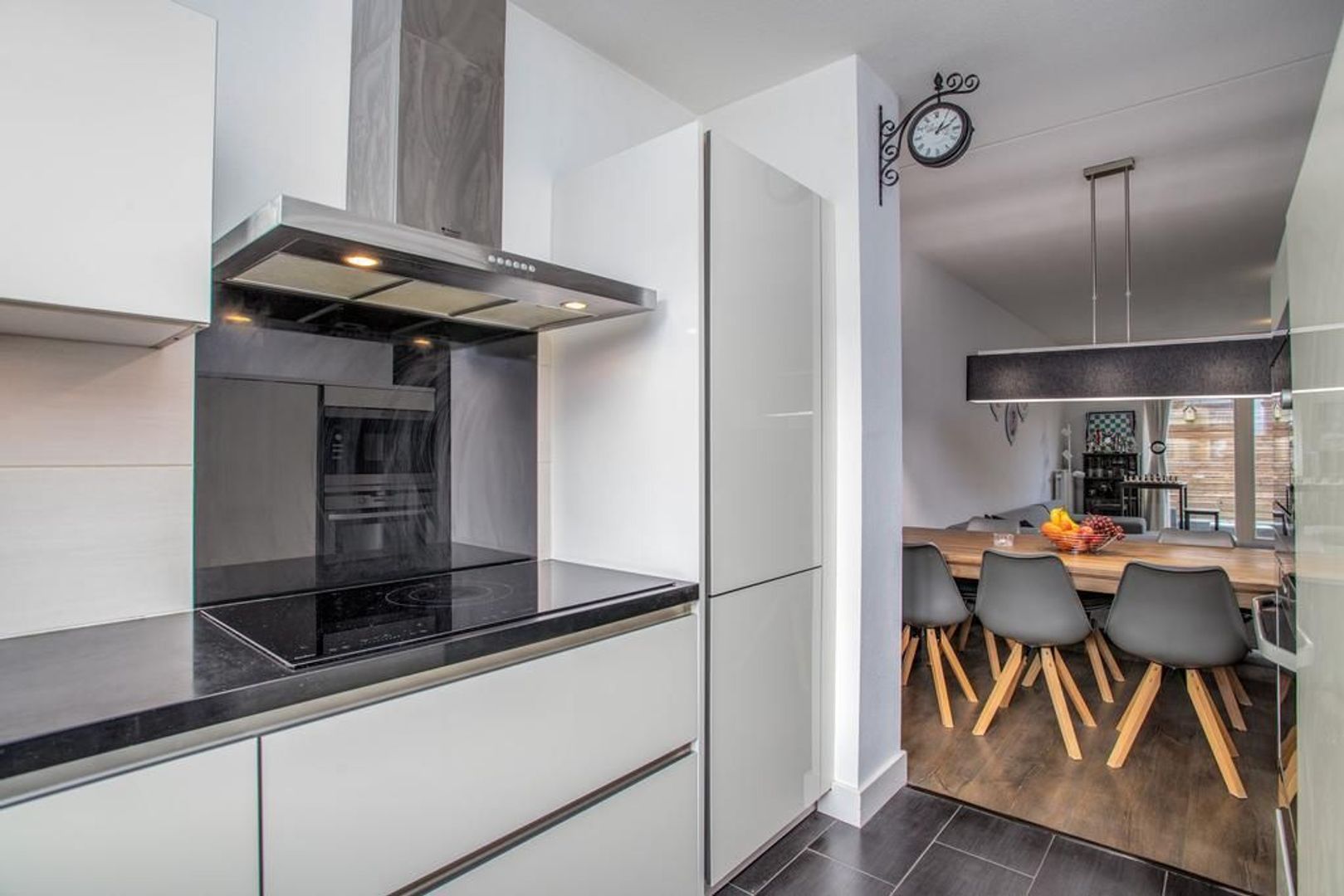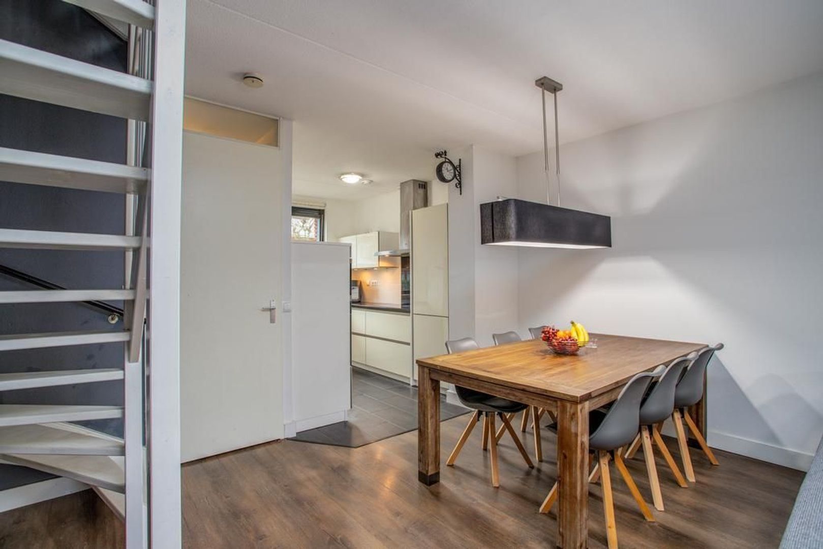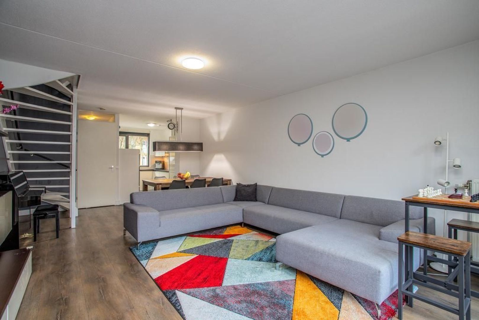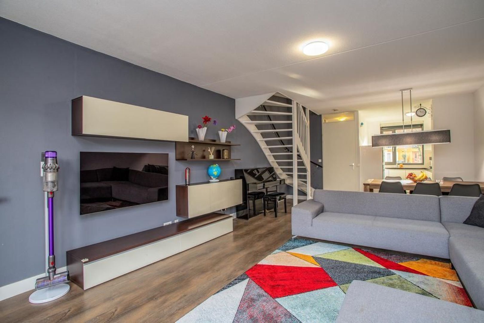 Je betreedt de woning via de vrolijke, kleurrijke gele deur en komt terecht in de hal. Deze hal biedt toegang tot het toilet en de woonkamer. De ruime woonkamer biedt voldoende plek voor een grote hoekbank en een lange eettafel. Aangrenzend vind je de open keuken, die een prettige indeling heeft en van alle gemakken is voorzien. De keuken is uitgerust met inbouwapparatuur zoals een koffiezetapparaat, oven, vaatwasser, inductiekookplaat, afzuigkap, koelkast en vriezer. Via de openslaande deuren in de woonkamer kom je in de heerlijke, volledig betegelde tuin, die beschikt over een handige houten berging en een achterom. In de woonkamer bevindt zich een open trap die leidt naar de eerste verdieping.