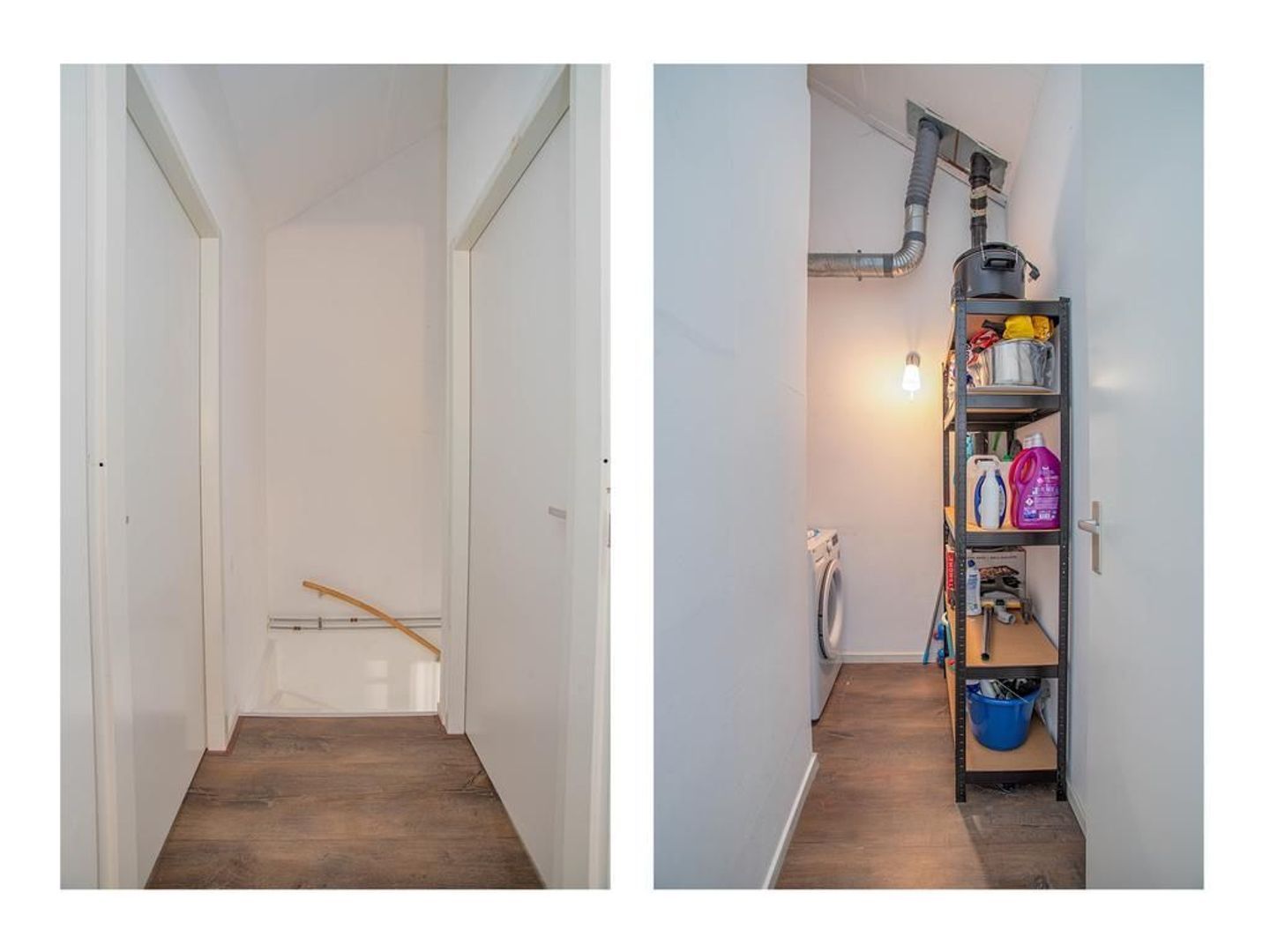 De zolder van de woning beschikt over een hal die toegang geeft tot de wasruimte en nog twee zeer ruime slaapkamers. De kamer aan de achterzijde is voorzien van een grote opbouw, waardoor je in de gehele kamer kunt staan. De andere slaapkamer wordt momenteel als werkkamer gebruikt, maar kan ook uitstekend dienen als slaapkamer.