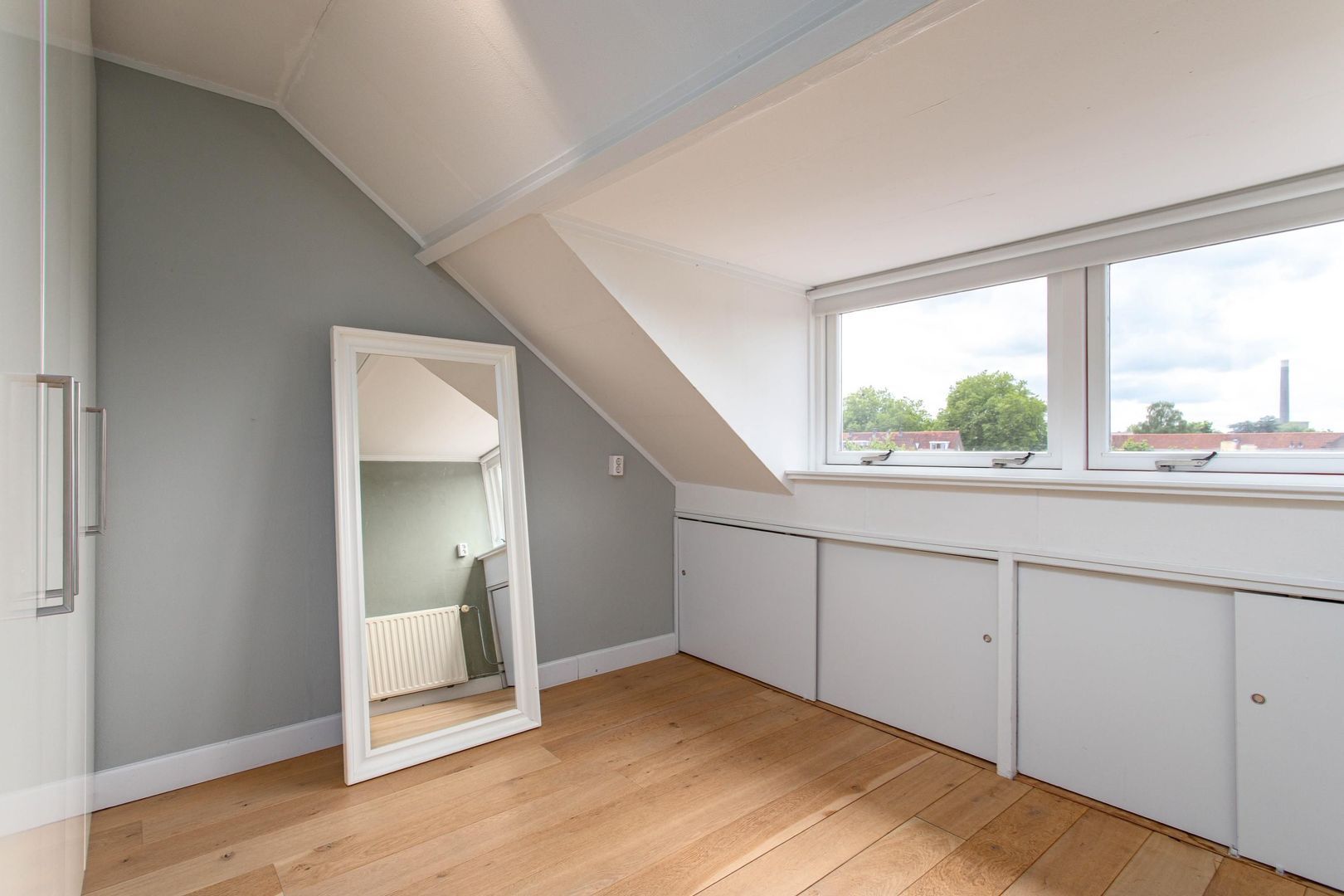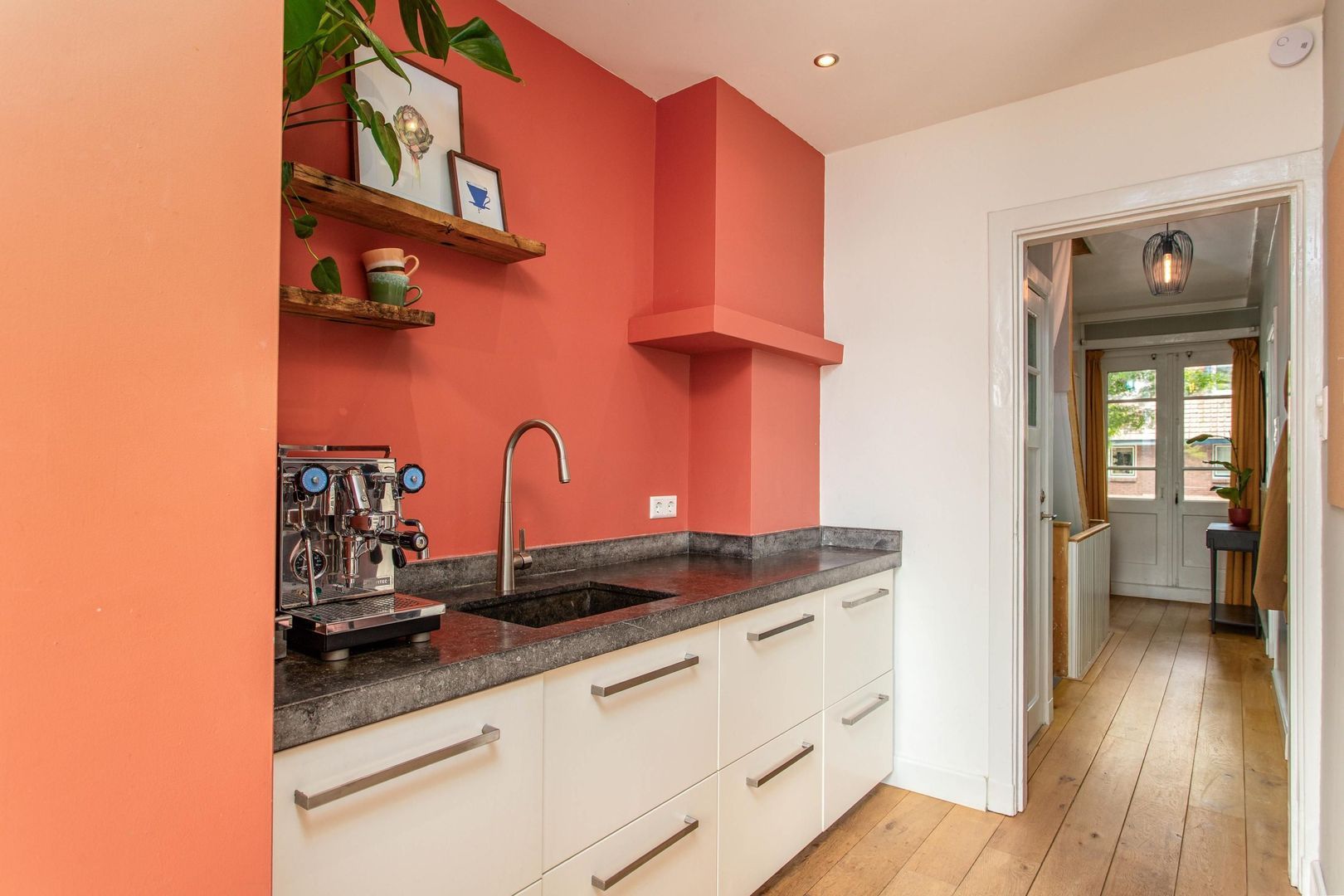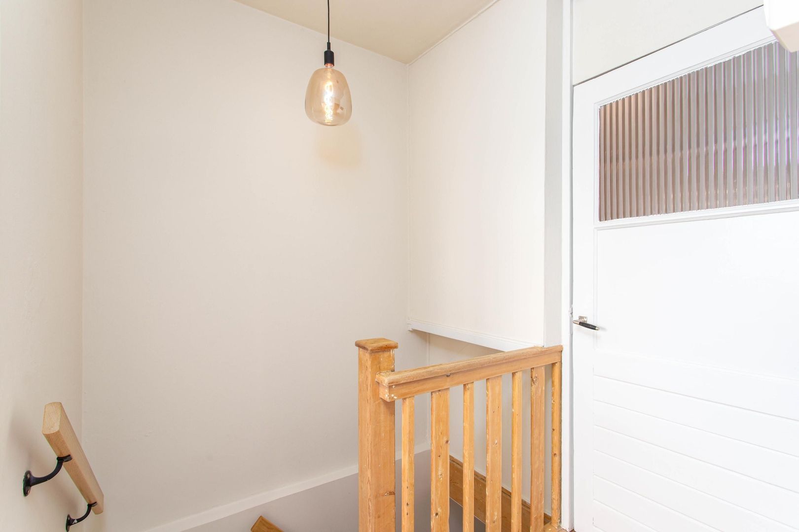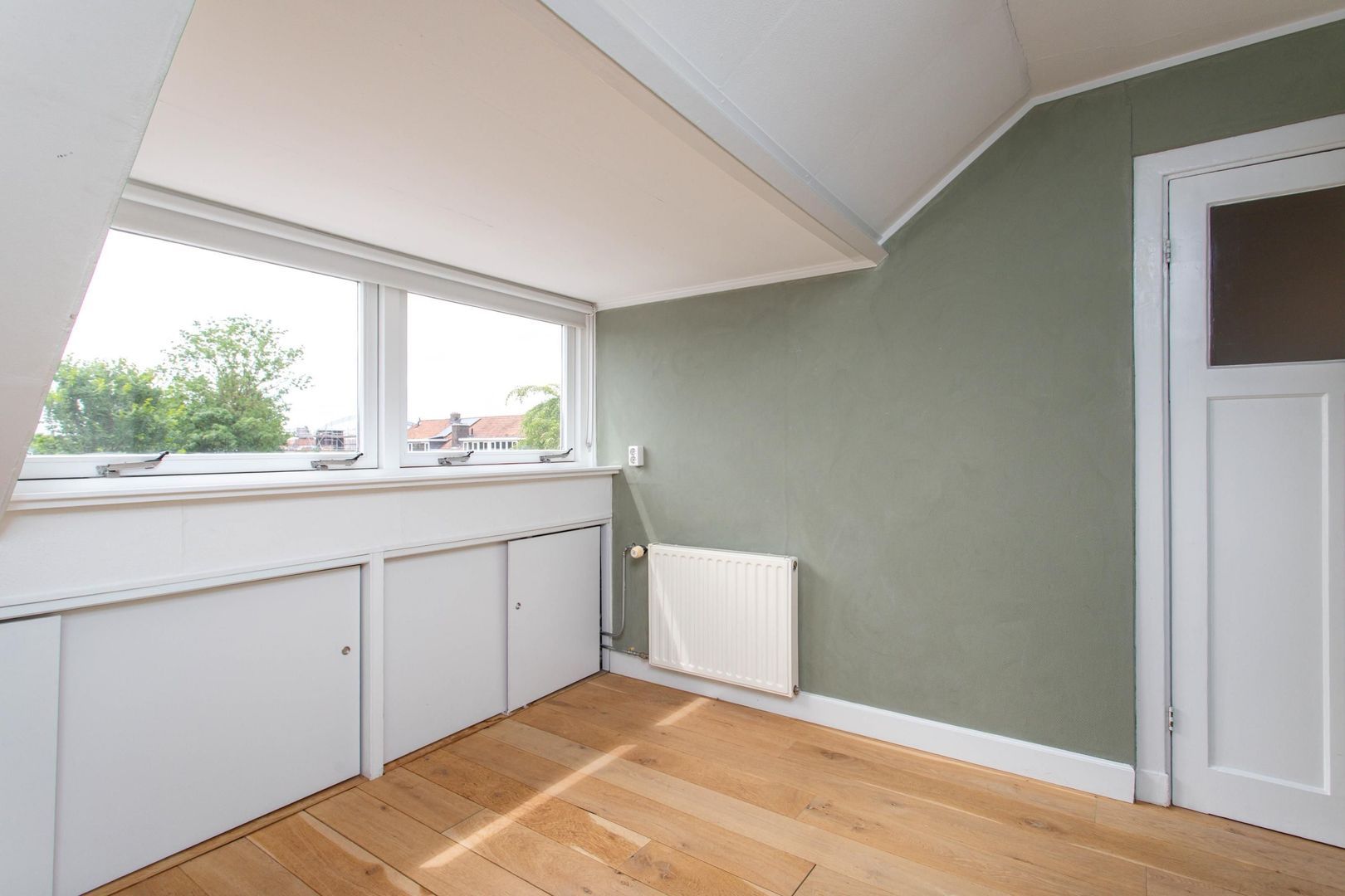 Vanuit de keuken bereik je het ruime en fraai gelegen dakterras. Het sfeervolle dakterras doet qua formaat bijna niet onder voor de gemiddelde stadstuin maar heeft daarentegen aanzienlijk meer zon, mede dankzij de zuidwestelijke ligging. Daarnaast is er een hoge mate van privacy en fraai uitzicht op groen.