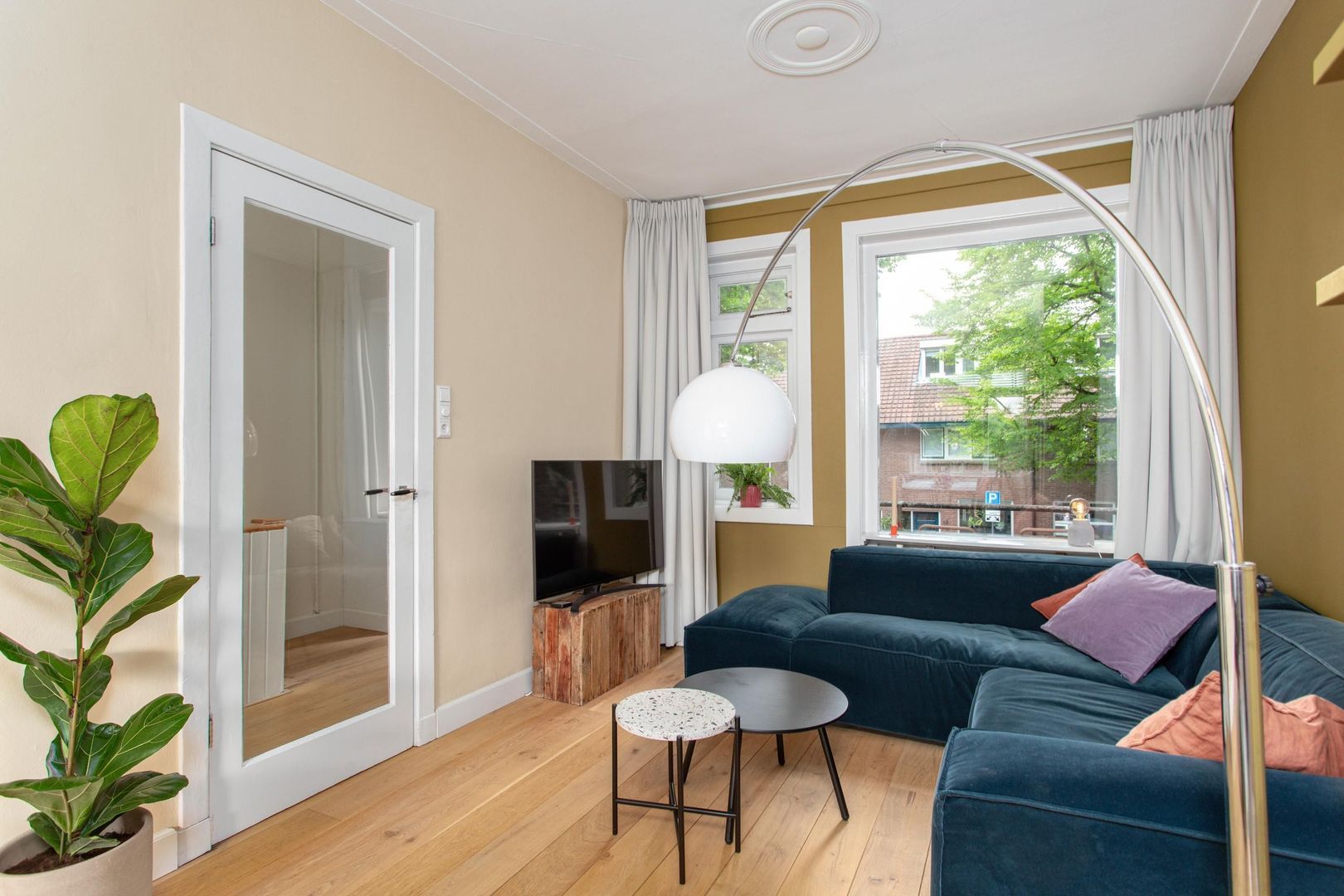 Ook de woning zelf laat ook weinig te wensen over. In de afgelopen jaren is de woning flink aangepakt en door gedurfde maar smaakvolle keuzes is er een bijzonder sfeervolle geheel ontstaan. Momenteel omvat de woning een ruime doorzon woonkamer met half open keuken. De keuken is praktisch ingedeeld, heeft een moderne uitstraling en is voorzien van de nodige inbouwapparatuur. Vanuit de keuken bereik je het ruime dakterras met een zuidelijkwestelijke, dus zonnige, oriëntatie. Het terras heeft een vrij uitzicht en een hoge mate van privacy. Aan de voorzijde van de woning is tevens nog een balkon aanwezig met uitzicht op de volwassenboompartijen die de straat rijk is.