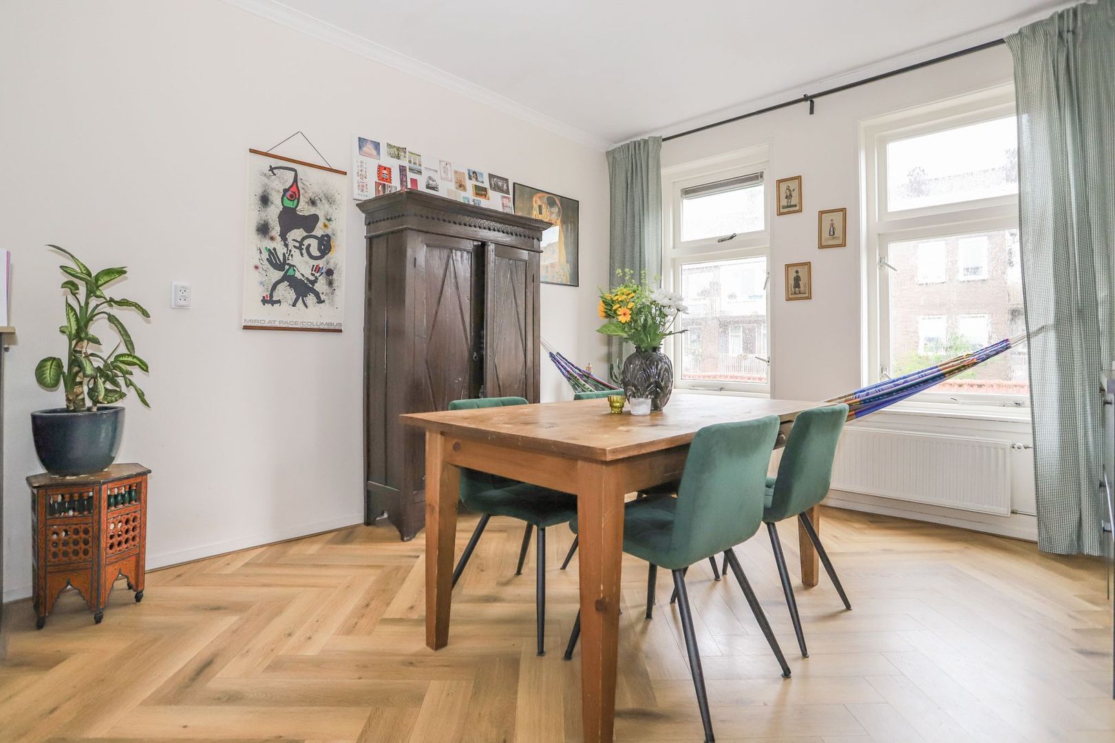 De woning beschikt op dit moment van een woon- en eetkamer die heerlijk ruim aanvoelt door het vele licht inval en de hoge plafonds. Aan de achterzijde is de moderne openkeuken met toegang tot het zonnige balkon aanwezig.