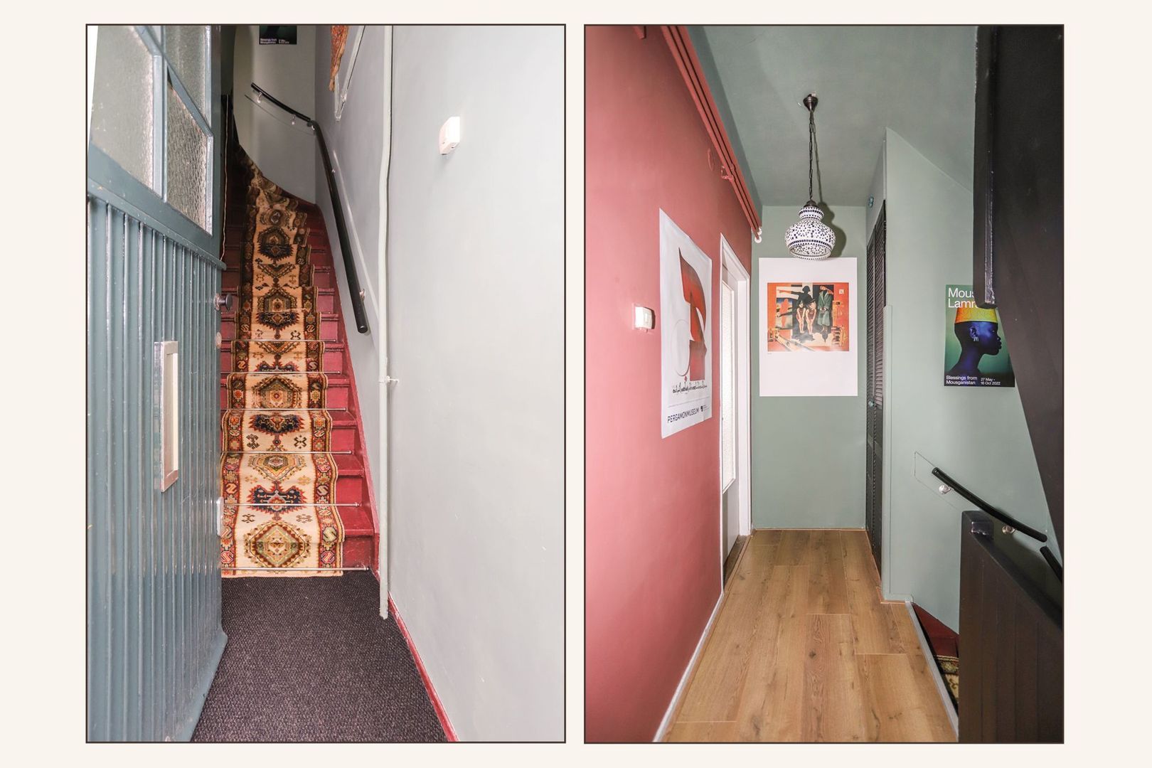 Begane grond: Eigen entree met trapopgang naar de eerste verdieping. Externe berging die via een gedeelde achterom te bereiken is voor bijvoorbeeld fietsen te plaatsen.