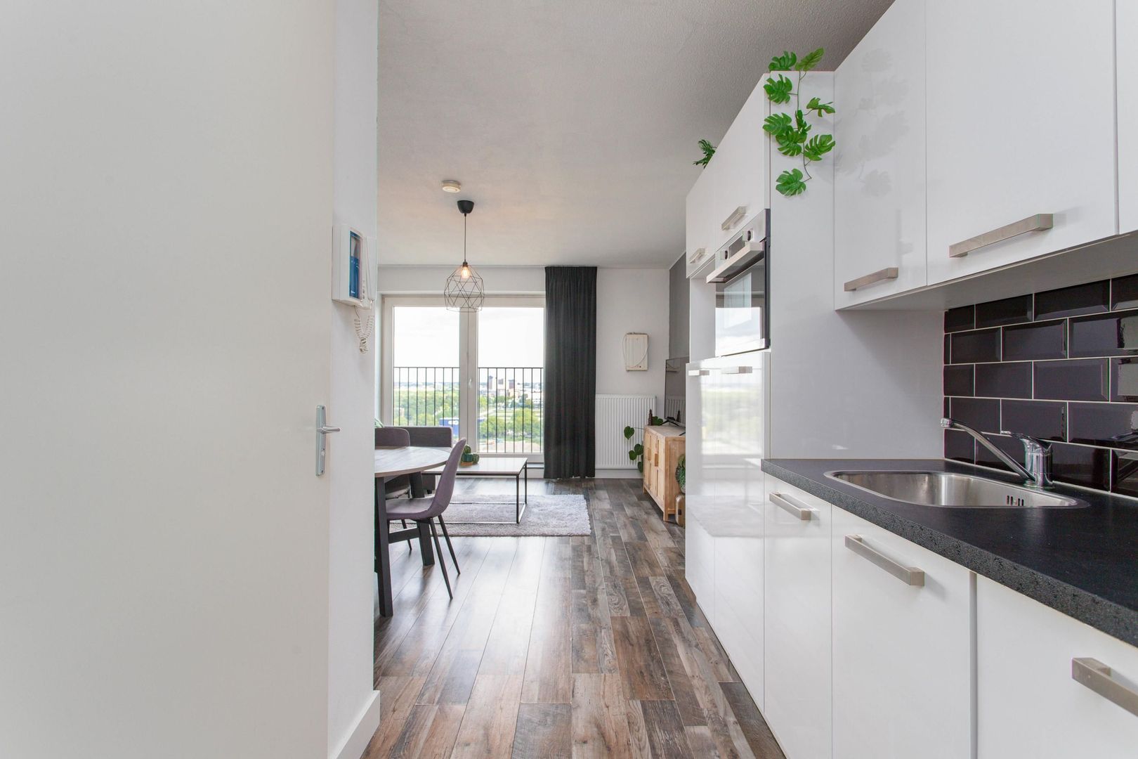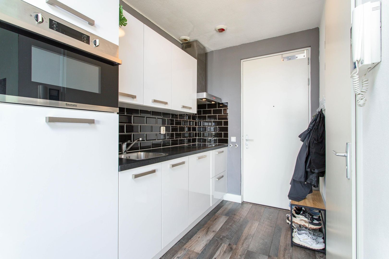 Bij binnenkomst in het appartement stap je direct in de lichte en open keuken, die is vergroot en modern is ingericht. De keuken is voorzien van diverse inbouwapparatuur, waaronder een combi-oven, een keramische en een koel-vriescombinatie.