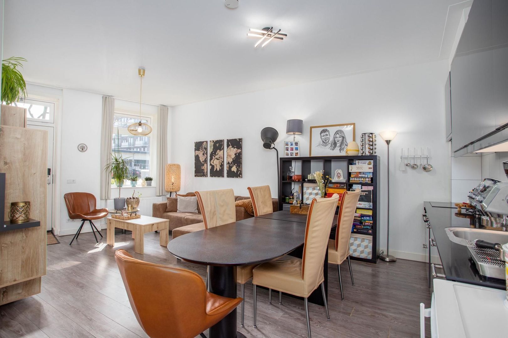 Deze benedenwoning bevindt zich in een karakteristiek jaren ’30-pand dat in 2013 is gerenoveerd, waarbij deze woning is gerealiseerd. Dit 2-kamerappartement kenmerkt zich door de hoge plafonds, wat zorgt voor een ruimtelijk gevoel, en heeft een fijne, praktische indeling. De woning beschikt over een prettig woon- en eetgedeelte waar je gemakkelijk een eettafel en zithoek kunt creëren. Hier bevindt zich ook de open keuken, die strak is afgewerkt en voorzien is van de benodigde inbouwapparatuur. Verder is er een moderne badkamer en een apart toilet.