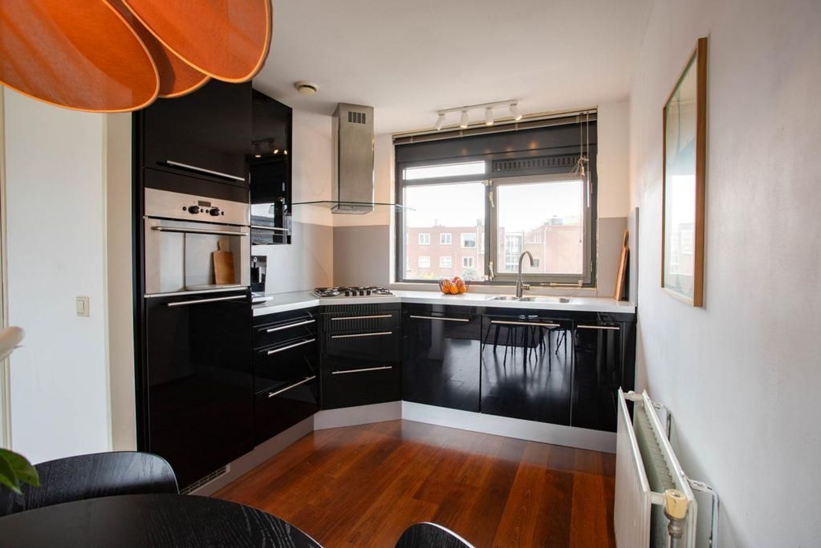 De keuken is aan de voorzijde van de woning gelegen. De keuken heeft een nette uitstraling en is voorzien van de volgende inbouwapparatuur: gasfornuis, oven, afzuigkap, koelkast en vaatwasser.