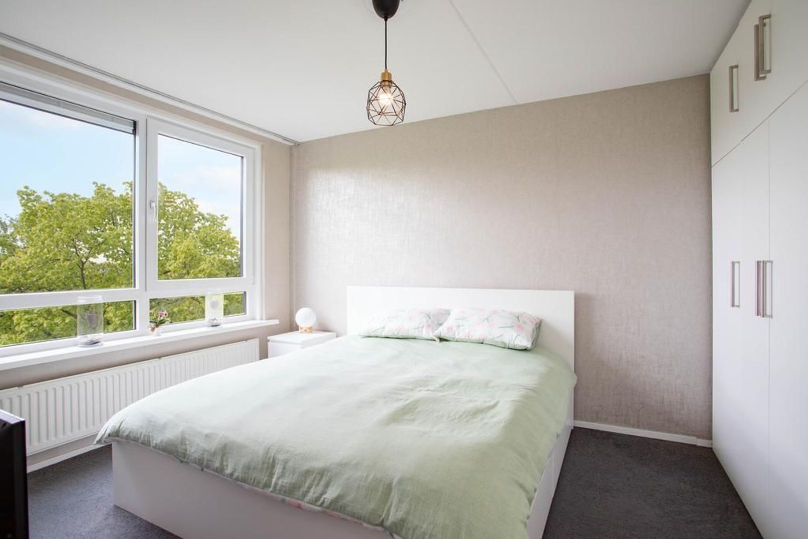 Het appartement beschikt over twee ruime slaapkamers, één gelegen aan de voorzijde en één gelegen aan de achterzijde van de woning. Beide slaapkamers hebben een fijn formaat, er is ruim voldoende plek voor het plaatsen van een tweepersoonsbed en kledingkast. De slaapkamer aan de achterzijde geeft, net als de hal, toegang tot de badkamer.