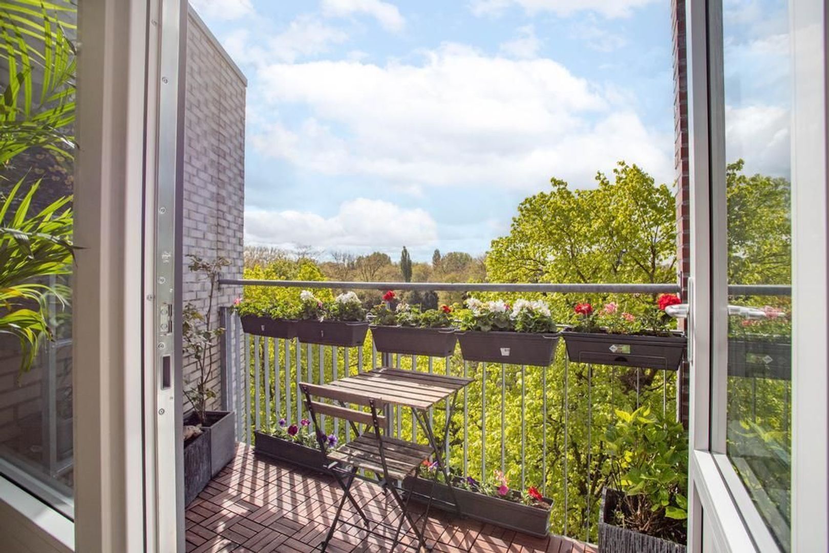 • Balkon gelegen op het zuiden met vrij uitzicht over het groen;