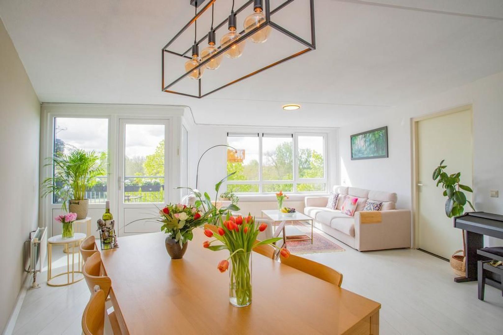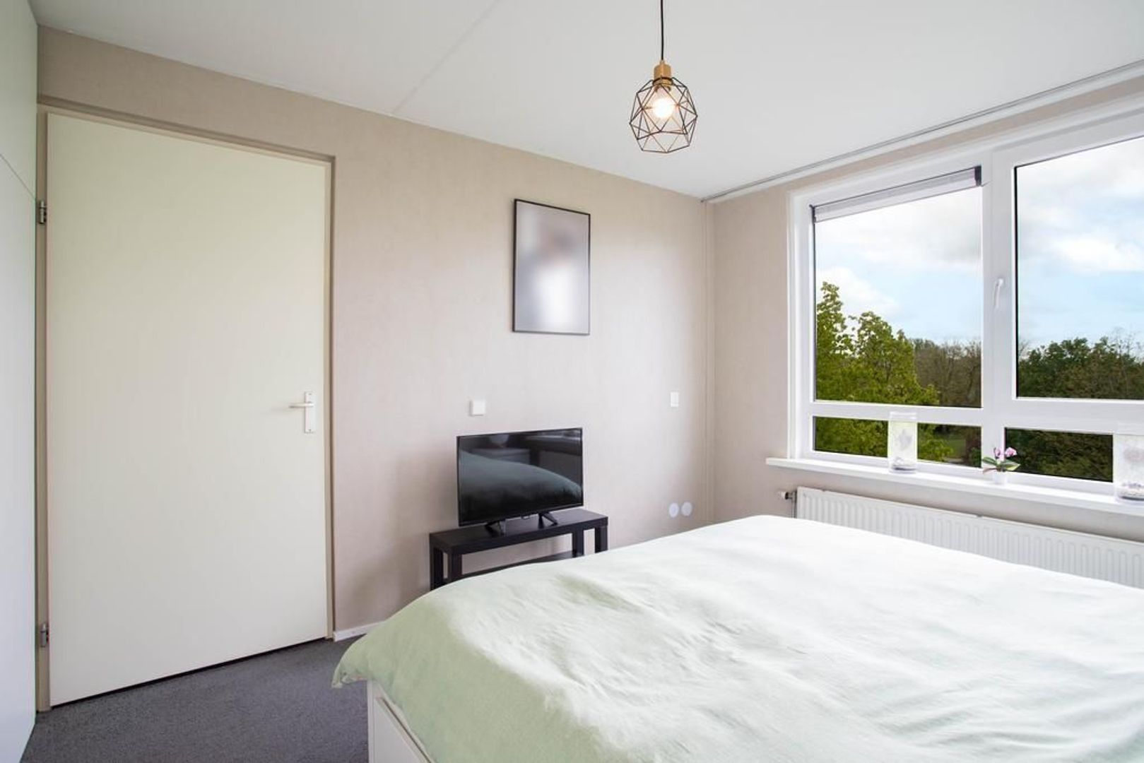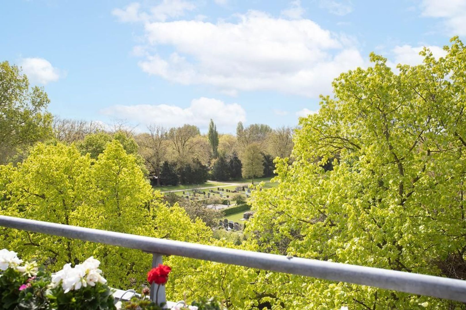 Via de woonkamer is het balkon toegankelijk. Het balkon is gelegen op het zonnige zuiden, zomers is het op zonnige dagen dan ook bijzonder fijn genieten met vrij uitzicht over het groen.