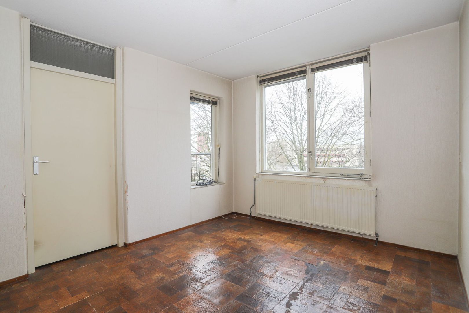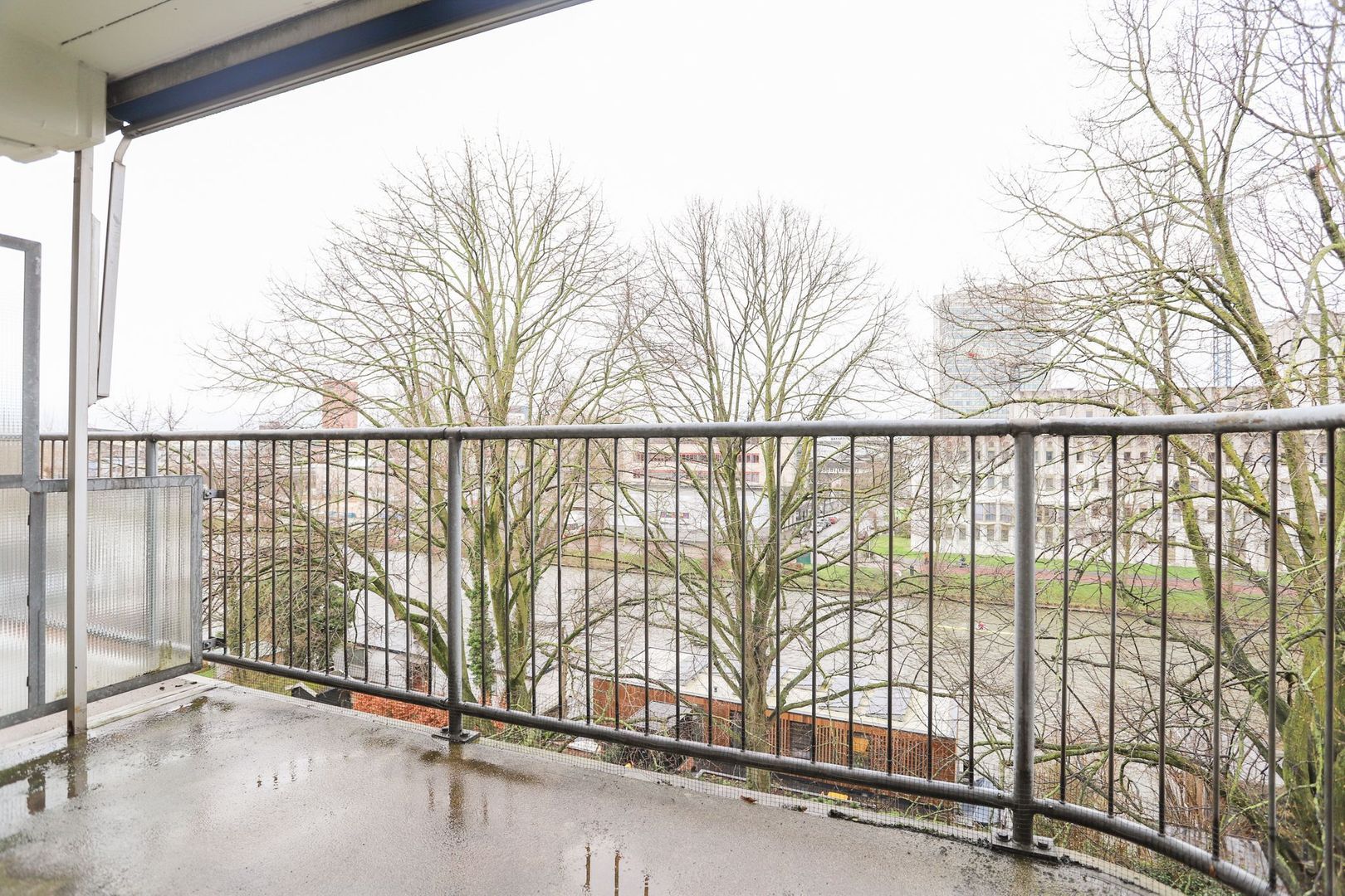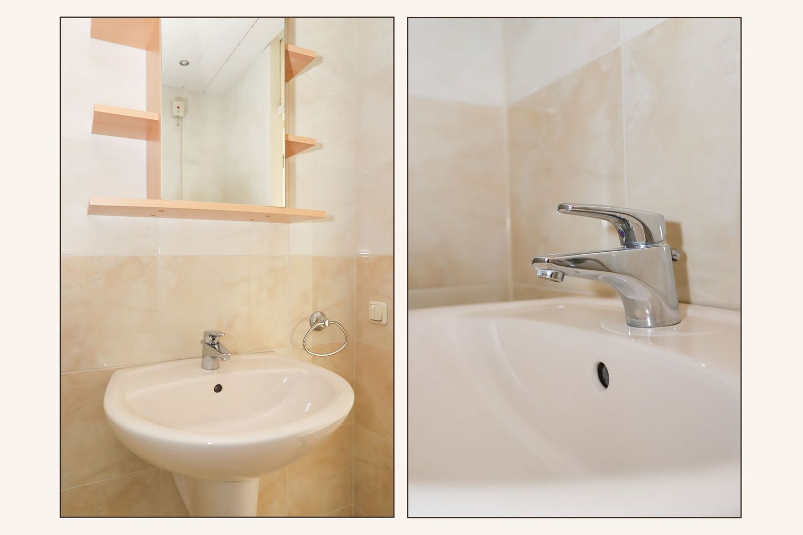 Zesde verdieping: Entree met meterkast. De praktisch in te delen woonkamer is ca. 6 meter lang en ca. 3 meter breed. De woonkamer is aan de voorzijde voorzien van een open keuken met eenvoudig keukenblok en aan de achterzijde geeft het toegang tot het zonnige balkon met vrij uitzicht. Via de gang kom je in de twee ruime slaapkamers, de extra berging, het toilet en de badkamer. De badkamer is op dit moment voorzien van verzorgd tegelwerk en is uitgevoerd met een douche, wastafelmeubel en een wasmachine aansluiting.