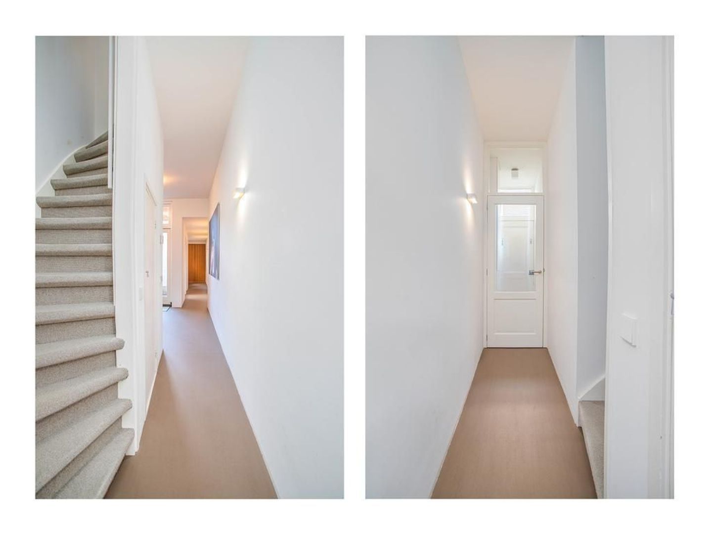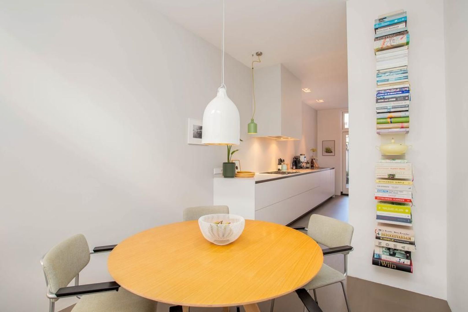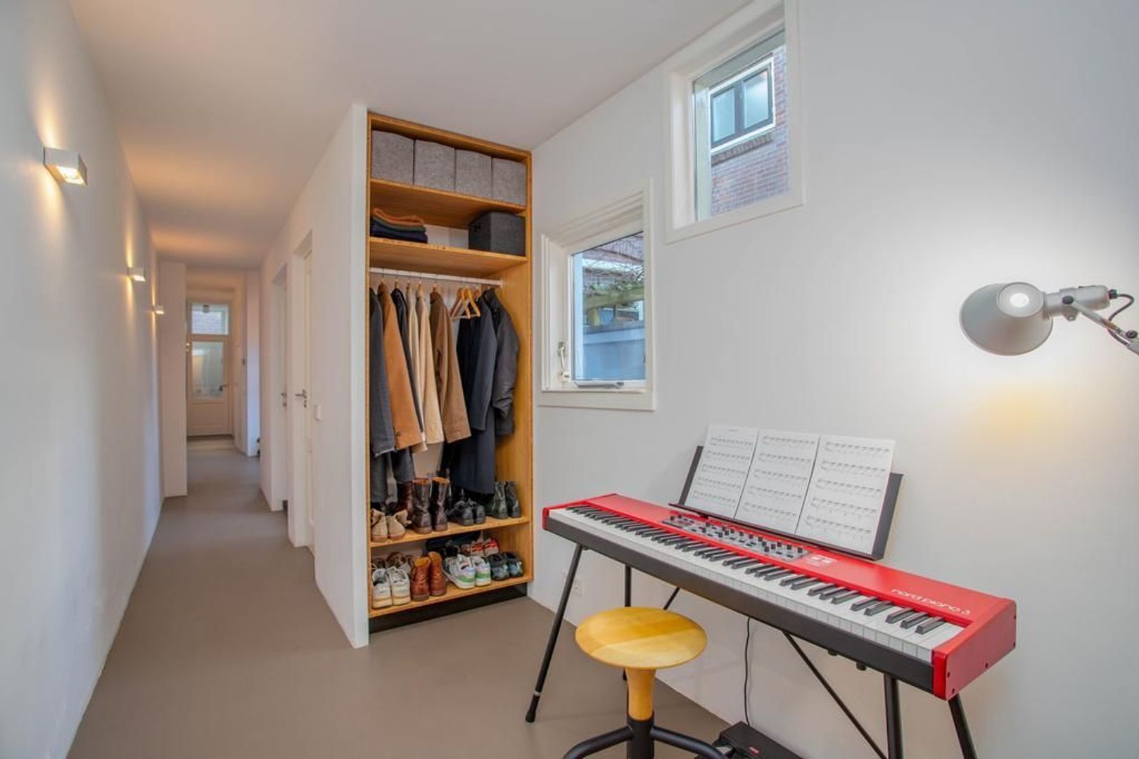 Wanneer je verder loopt, kom je in de eetkamer, die een heerlijk uitzicht biedt op de rustige straat. Aan de andere zijde van de keuken vind je het separate toilet en de hobbykamer, waar fraai weggewerkt ook de aansluitingen voor de witgoedinstallaties zijn. De begane grond blijft heerlijk koel in de zomer. Via de openslaande deuren van de keuken en via de gang is de stadstuin te bereiken. De tuin heeft een ideale ligging op het zuid(oost)en. De tuin voorzien van een ruime berging.
