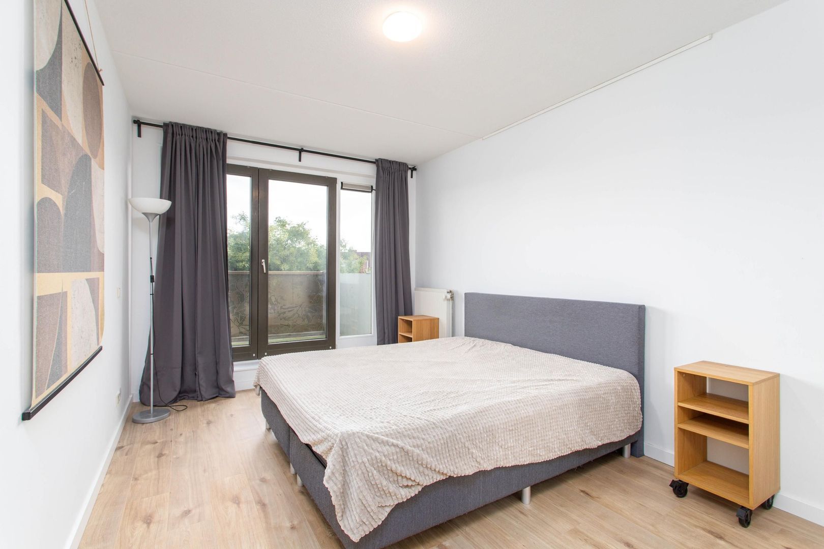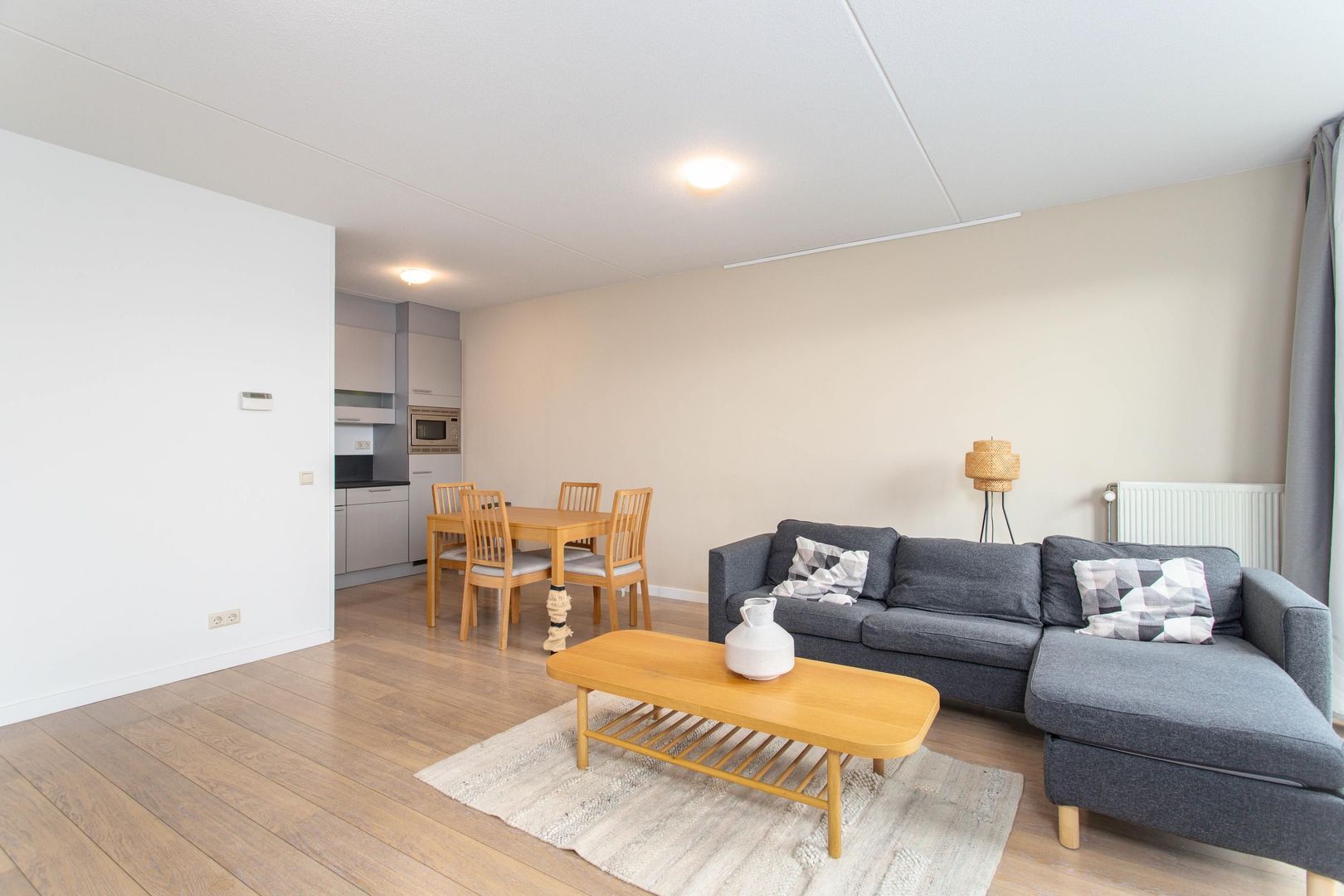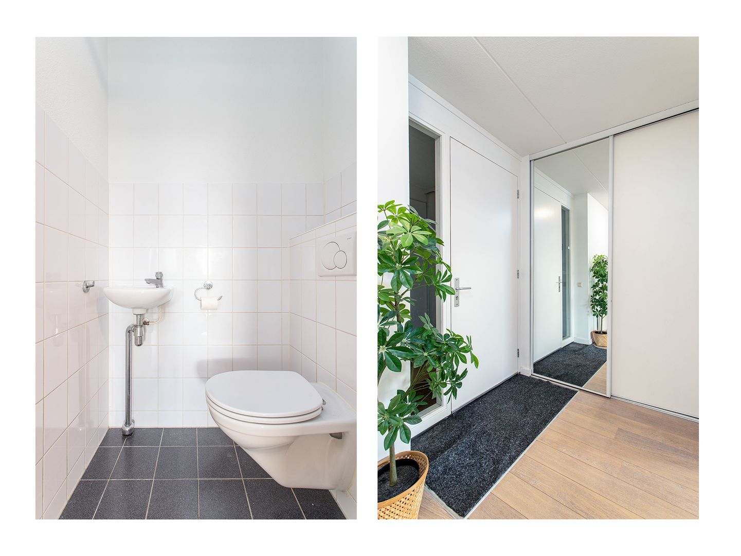 Bij binnenkomst van het appartement kom je aan in de verzorgde hal met inbouwkasten. Deze hal biedt toegang tot de woonkamer, twee slaapkamers, de badkamer, een wasruimte en het separate toilet. De woonkamer is een praktische ruimte die gezellig ingericht kan worden. Aansluitend vind je de open keuken, die veel kastruimte biedt en is uitgerust met diverse inbouwapparatuur: een inductiekookplaat, afzuigkap, vaatwasser, magnetron en koelkast. De hoofdslaapkamer is ruim en beschikt over een fijn balkon met uitzicht op de binnentuin. De tweede slaapkamer is perfect te gebruiken als kinderkamer, werkkamer of hobbykamer. De badkamer is neutraal uitgevoerd en van alle gemakken voorzien, zoals een douche, ligbad en een wastafel met spiegelkast. Naast de badkamer bevindt zich de praktische wasruimte.