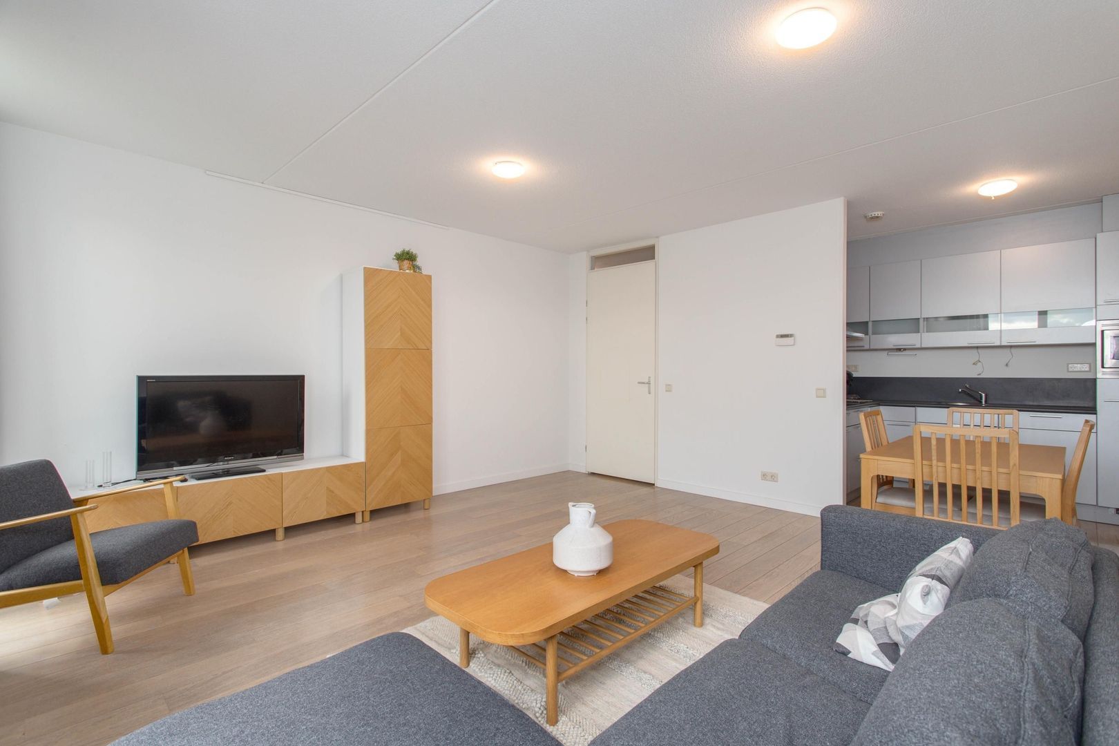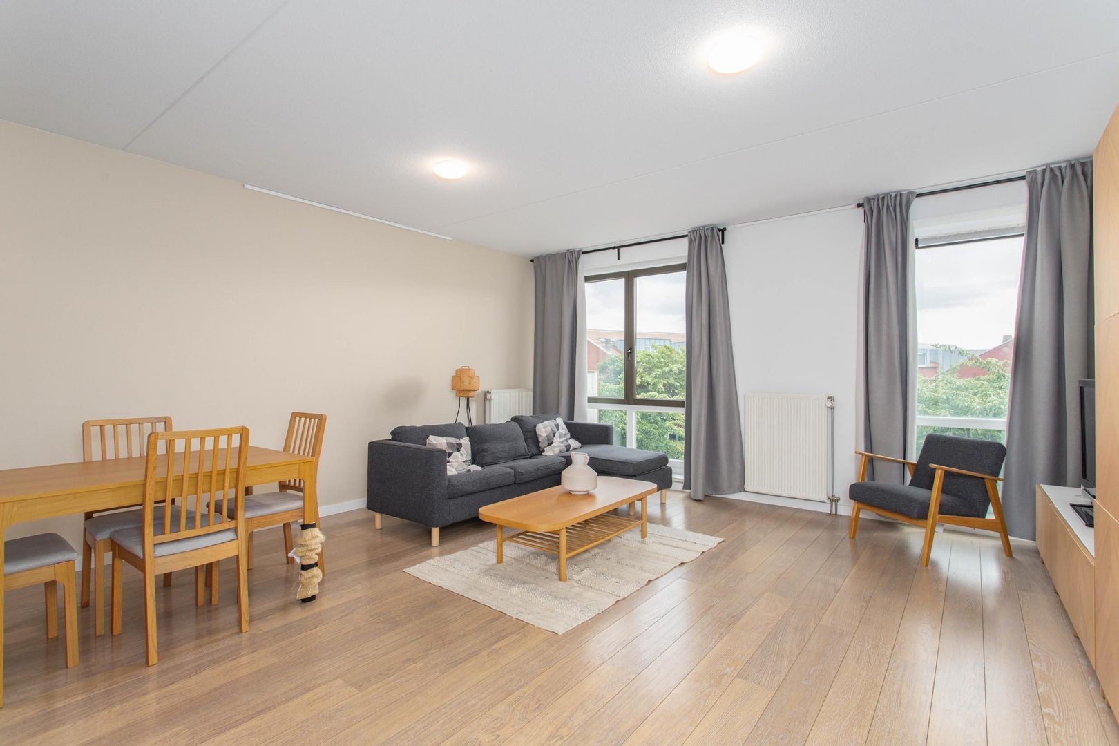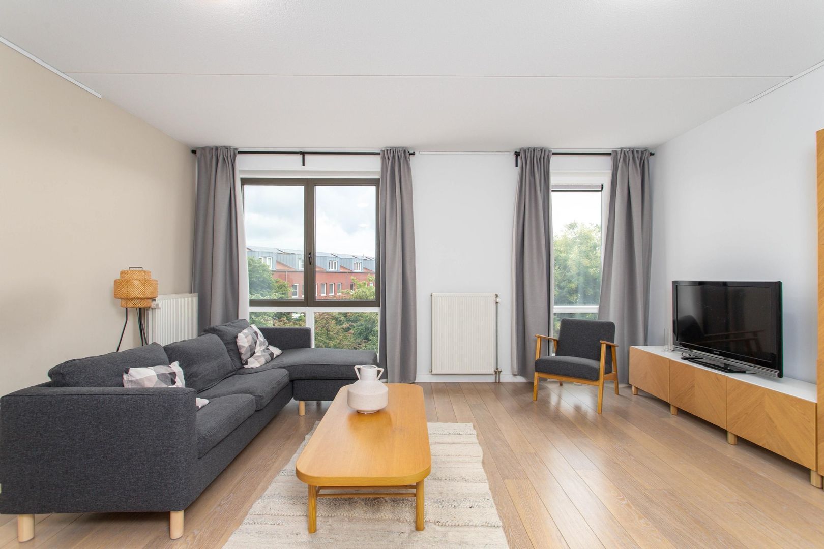 Bij binnenkomst van het appartement kom je aan in de verzorgde hal met inbouwkasten. Deze hal biedt toegang tot de woonkamer, twee slaapkamers, de badkamer, een wasruimte en het separate toilet. De woonkamer is een praktische ruimte die gezellig ingericht kan worden. Aansluitend vind je de open keuken, die veel kastruimte biedt en is uitgerust met diverse inbouwapparatuur: een inductiekookplaat, afzuigkap, vaatwasser, magnetron en koelkast. De hoofdslaapkamer is ruim en beschikt over een fijn balkon met uitzicht op de binnentuin. De tweede slaapkamer is perfect te gebruiken als kinderkamer, werkkamer of hobbykamer. De badkamer is neutraal uitgevoerd en van alle gemakken voorzien, zoals een douche, ligbad en een wastafel met spiegelkast. Naast de badkamer bevindt zich de praktische wasruimte.