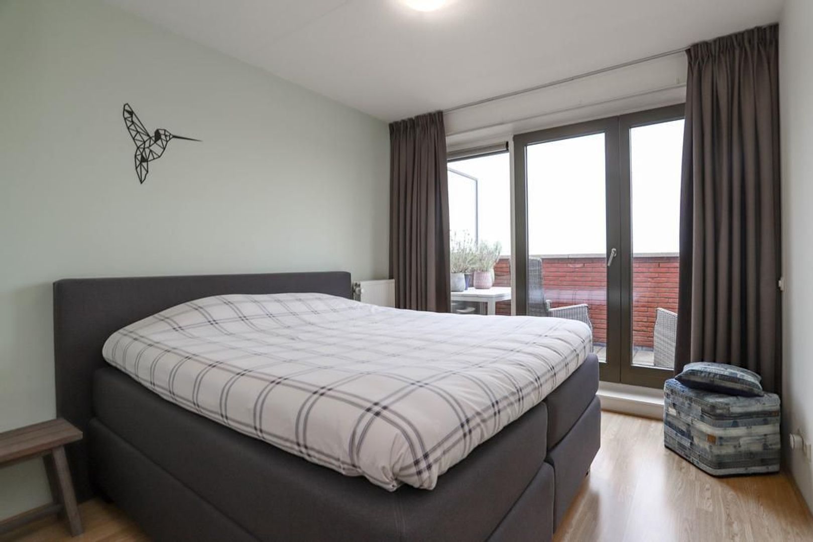 Vierde verdieping: Via de entree komt u in de hal van het appartement. De hal geeft toegang tot de woonkamer, de twee slaapkamers, de badkamer, de berging en het separate toilet. De woonkamer is op verschillende manieren in te delen, heeft grote raampartijen en een deur naar het balkon. De open keuken heeft een nette afwerking en is geplaatst tijdens de bouw in 2007, een nieuwe koel-vriescombinatie is geplaatst in 2019. De grootste slaapkamer biedt genoeg ruimte voor een tweepersoonsbed en heeft, net als de andere slaapkamer en de woonkamer, toegang tot het balkon. Het grote balkon loopt langs de gehele achterzijde van het appartement en door de ligging op het zuiden is er de hele dag zon. De badkamer is, net als de keuken, geplaatst in 2007 en heeft een prettige indeling. Deze beschikt over een douche, wastafel, wastafelmeubel en een handige kast. In het appartement bevindt zich nog een handige berging waar de wasmachine en droger geplaatst kunnen worden.