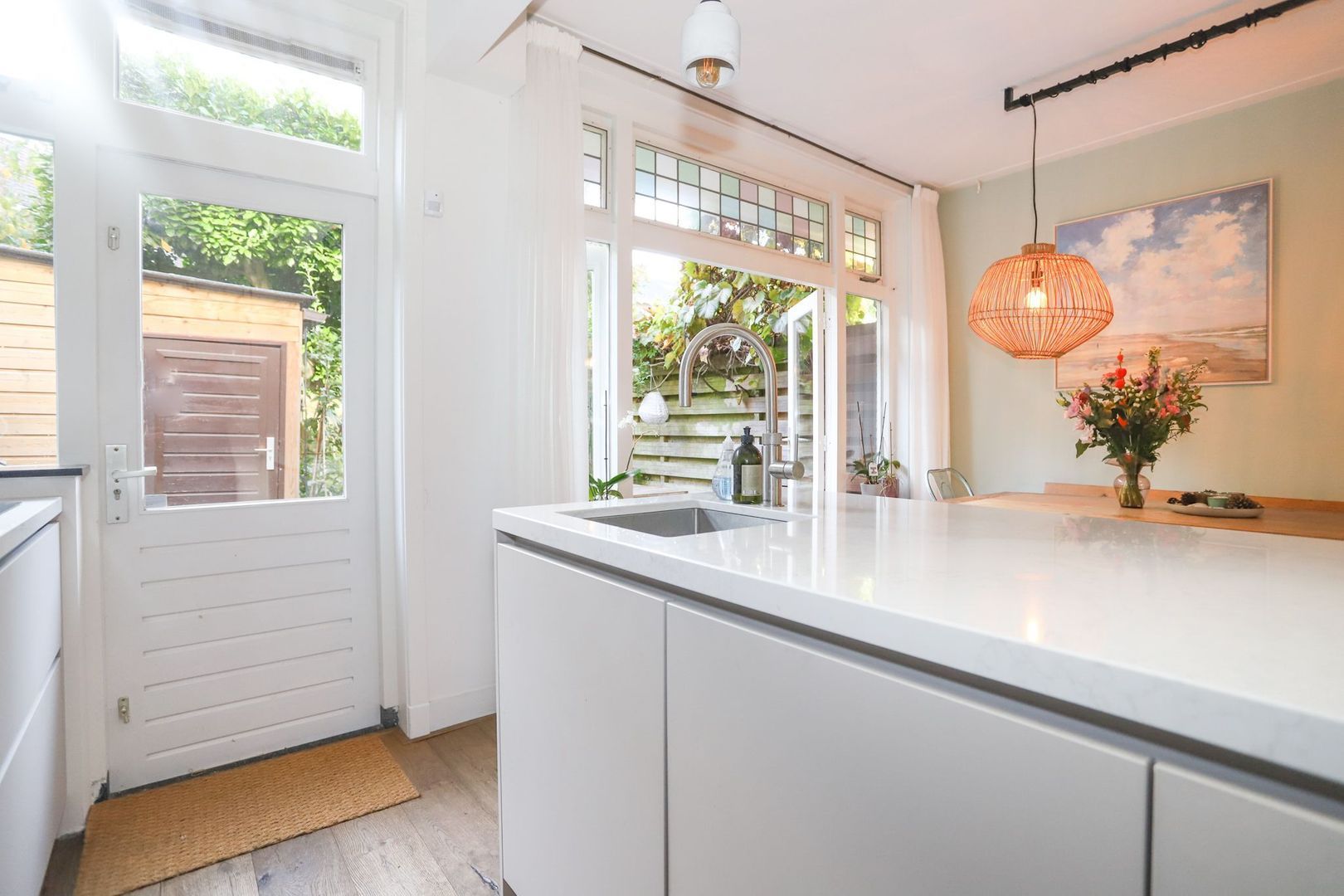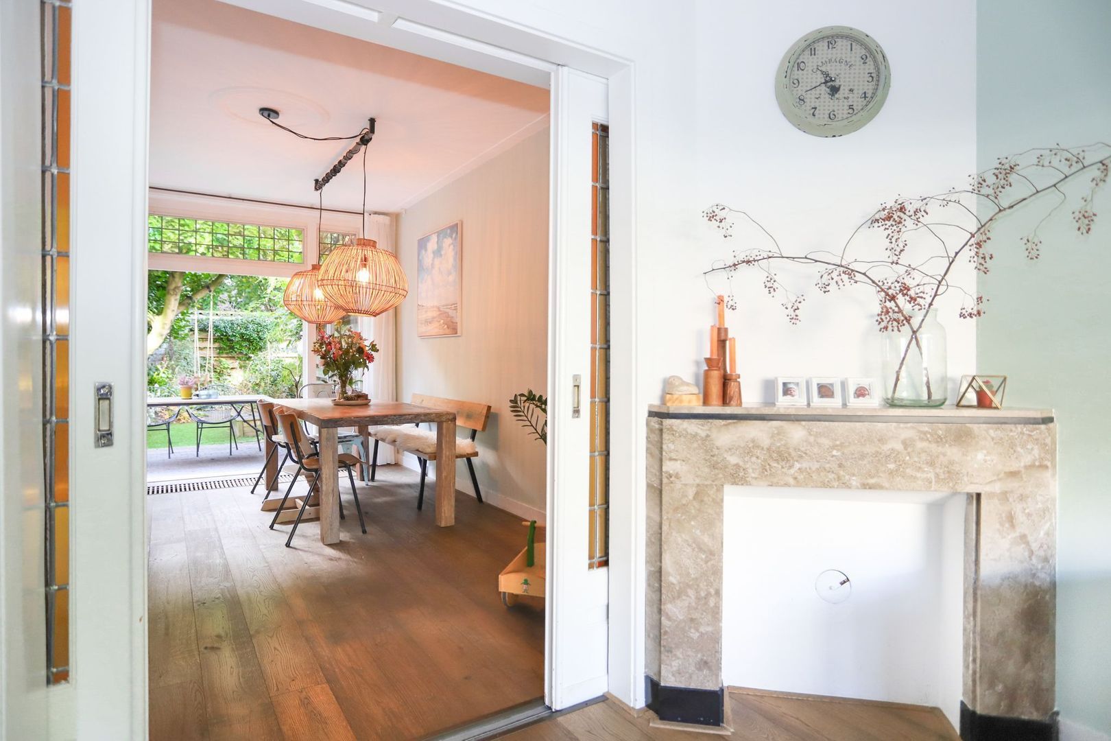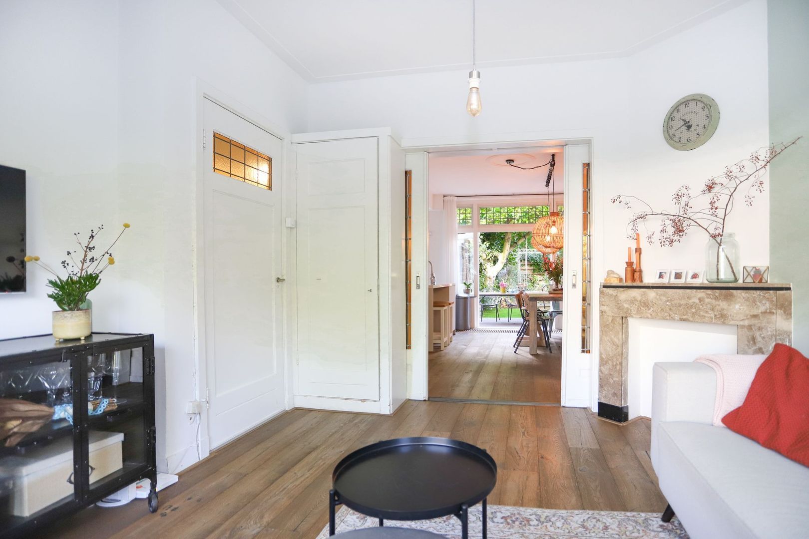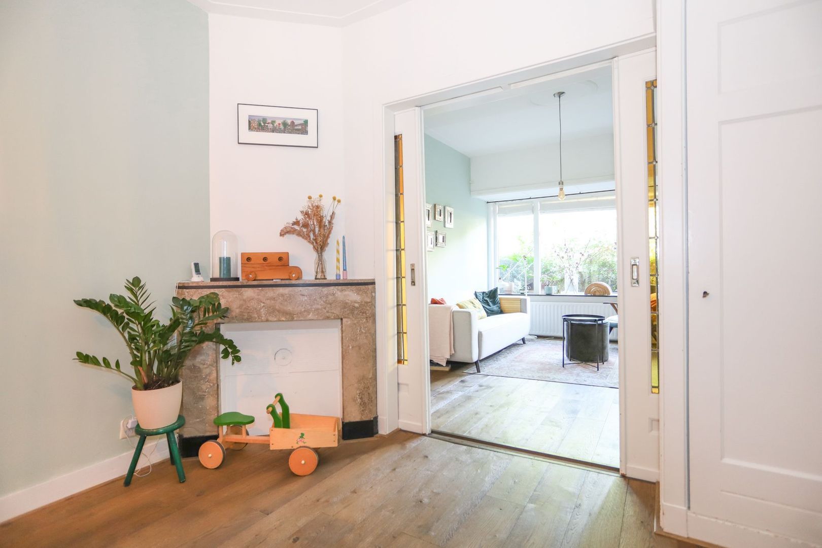 In deze heerlijke woning vind je alle moderne gemakken met een nieuwe keuken (2021) en badkamer (2018), terwijl diverse originele details nog zichtbaar zijn. Hierdoor straalt de woning zowel sfeer als luxe uit. Dat is pas een fijne plek om thuis te komen! Direct in de hal zijn diverse authentieke elementen, zoals de vloer, tegels, voorportaal, zelfs nog een originele telefoon. In de keuken is diverse inbouwapparatuur aanwezig, in combinatie met het schiereiland is hier een fijne woonkeuken gecreëerd in wat vroeger de achterkamer was. Deze wordt via de prachtige ensuite deuren gescheiden van de voorkamer, waar een prettige woonkamer is gesitueerd met sfeervolle schouw. Hier is het rookkanaal zelfs nog aanwezig, waardoor je eenvoudig (na vernieuwen van buis) een open haard kunt plaatsen.