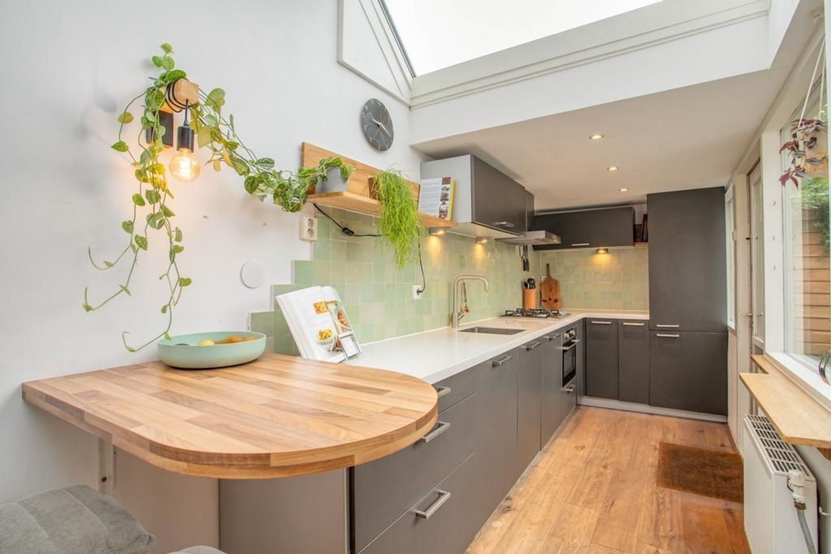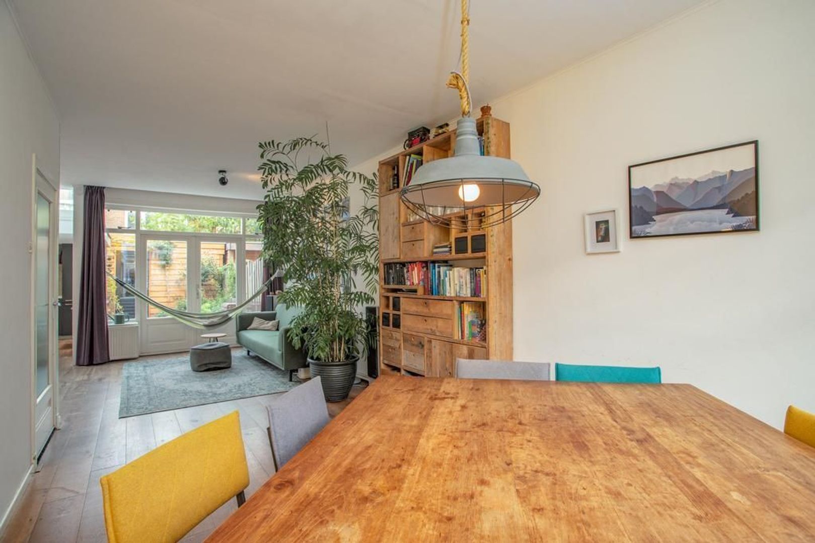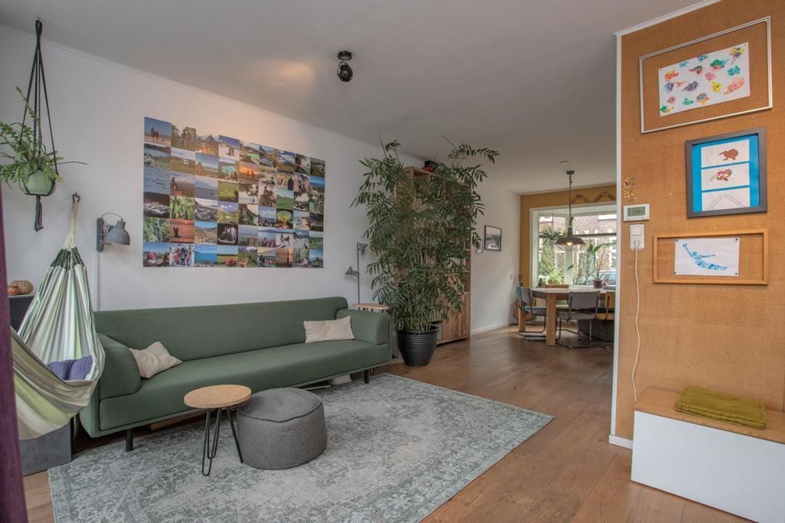 Je betreedt de woning via de eigen voortuin. Bij binnenkomst kom je in de hal, waar je je jas kunt ophangen en toegang hebt tot de woonkamer, het toilet en de trapopgang. De woonkamer is één grote ruimte, maar verdeeld in een zit- en eethoek. In de eethoek is er ruimte voor een grote eettafel, perfect voor gezellige diners. De zithoek biedt plaats aan een ruime hoekbank. Als je verder loopt, kom je in de open keuken. In de hoek van de keuken is op een creatieve manier een bar gemaakt. De keuken heeft de afgelopen jaren verschillende vernieuwingen ondergaan; de keukenkastjes zijn van 2011, het werkblad en de spoelbak zijn van 2021, en de inbouwapparatuur varieert. De aanwezige inbouwapparatuur omvat een combioven, afzuigkap, vaatwasser, vriezer en koelkast. Boven de keuken bevindt zich een groot schuin raam en er zijn grote raampartijen, wat zorgt voor een fijne natuurlijke lichtinval in de woning. Via de openslaande deuren in de woonkamer en de deur in de keuken is de tuin toegankelijk. In de riante tuin op het zuidwesten kun je heerlijk van de zon genieten. Momenteel staat er een eettafel en een grote tuinset. Achterin de tuin is een berging aanwezig welke genoeg plaats heeft voor vier fietsen. Tevens is de berging achterom bereikbaar.