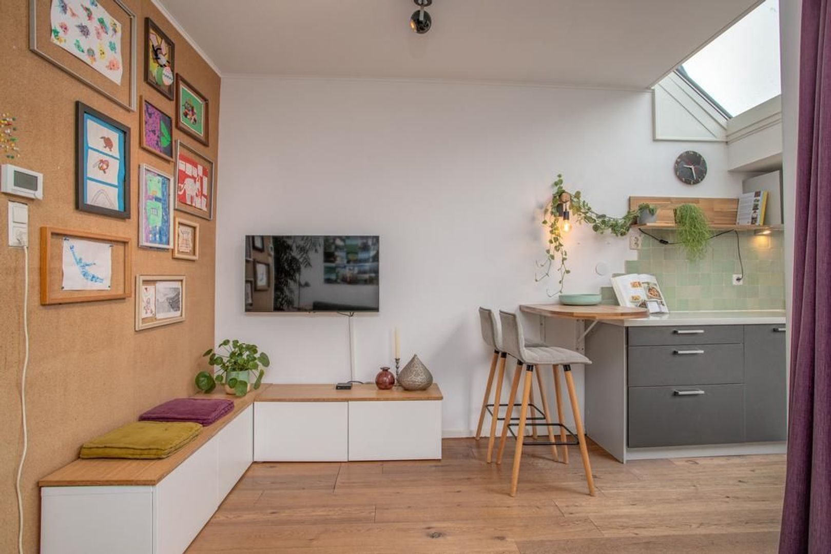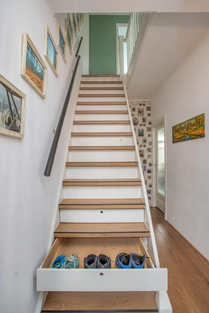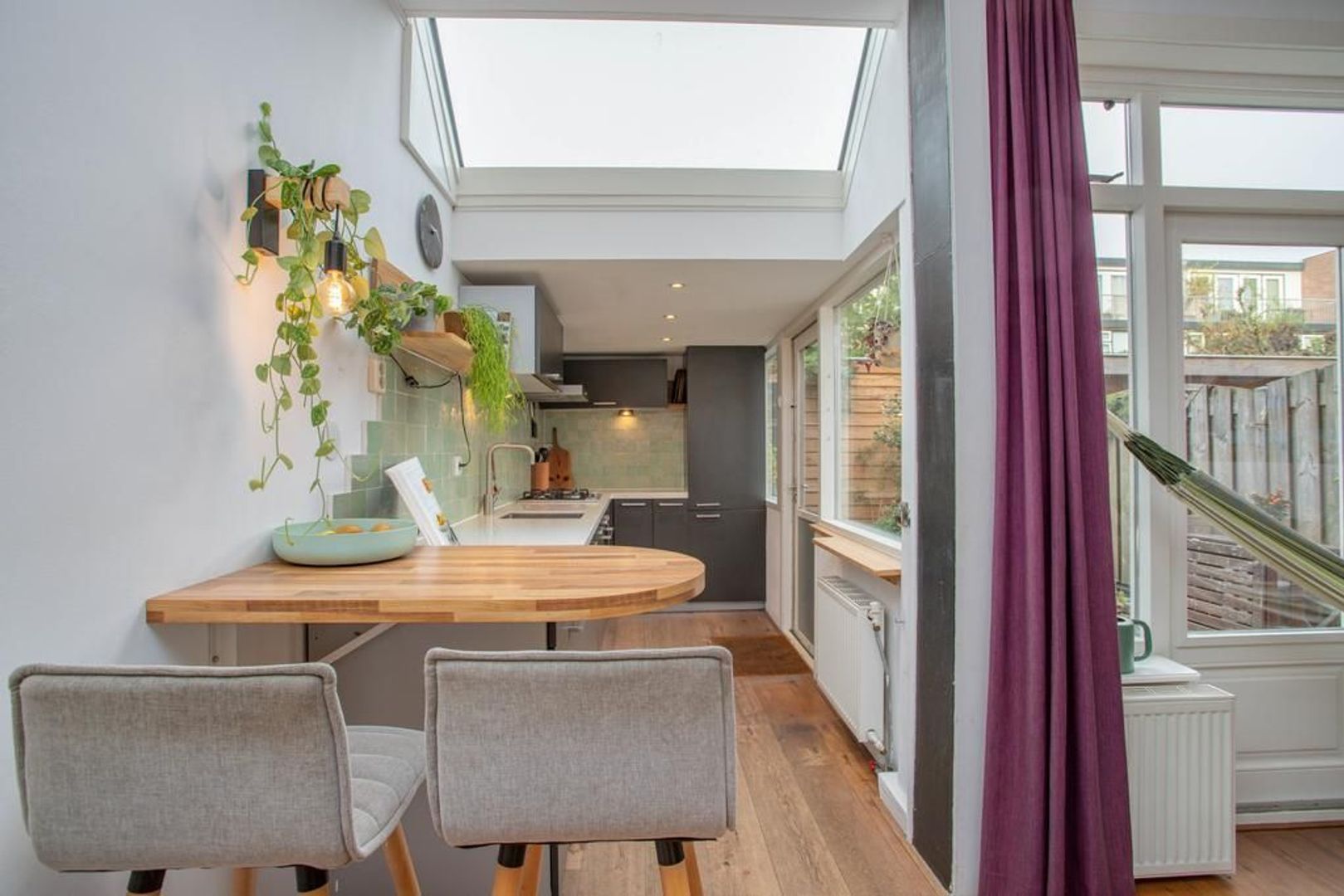 Je betreedt de woning via de eigen voortuin. Bij binnenkomst kom je in de hal, waar je je jas kunt ophangen en toegang hebt tot de woonkamer, het toilet en de trapopgang. De woonkamer is één grote ruimte, maar verdeeld in een zit- en eethoek. In de eethoek is er ruimte voor een grote eettafel, perfect voor gezellige diners. De zithoek biedt plaats aan een ruime hoekbank. Als je verder loopt, kom je in de open keuken. In de hoek van de keuken is op een creatieve manier een bar gemaakt. De keuken heeft de afgelopen jaren verschillende vernieuwingen ondergaan; de keukenkastjes zijn van 2011, het werkblad en de spoelbak zijn van 2021, en de inbouwapparatuur varieert. De aanwezige inbouwapparatuur omvat een combioven, afzuigkap, vaatwasser, vriezer en koelkast. Boven de keuken bevindt zich een groot schuin raam en er zijn grote raampartijen, wat zorgt voor een fijne natuurlijke lichtinval in de woning. Via de openslaande deuren in de woonkamer en de deur in de keuken is de tuin toegankelijk. In de riante tuin op het zuidwesten kun je heerlijk van de zon genieten. Momenteel staat er een eettafel en een grote tuinset. Achterin de tuin is een berging aanwezig welke genoeg plaats heeft voor vier fietsen. Tevens is de berging achterom bereikbaar.