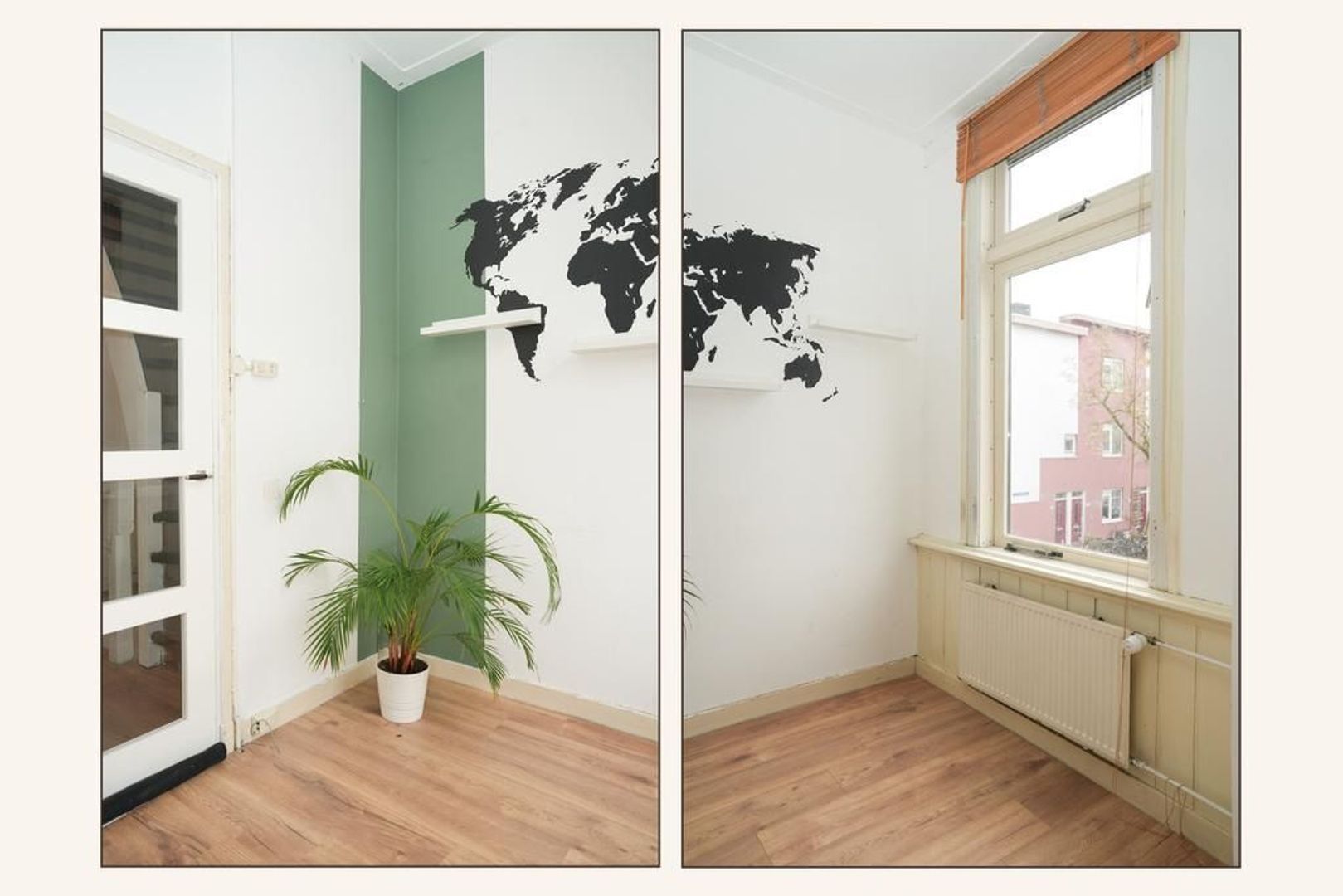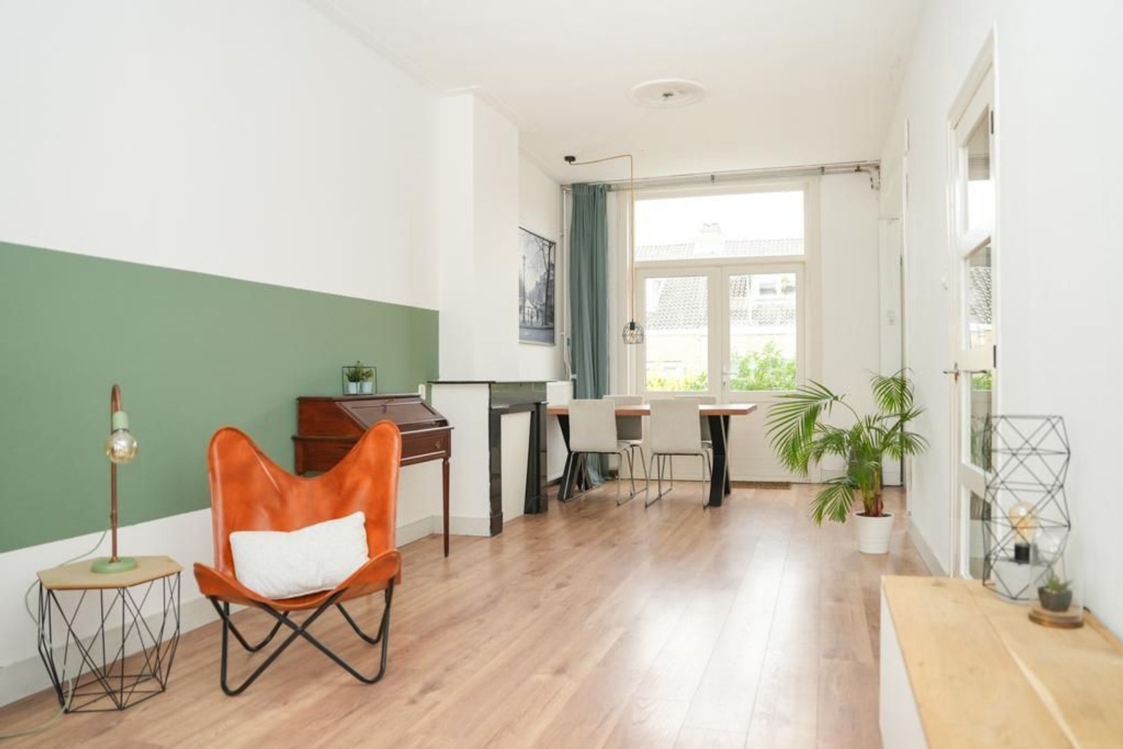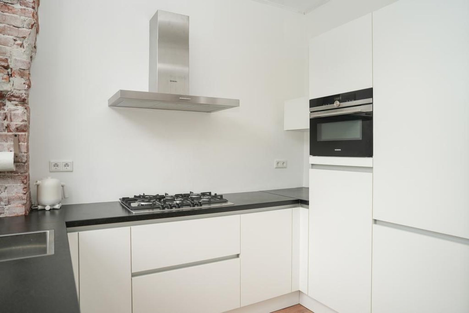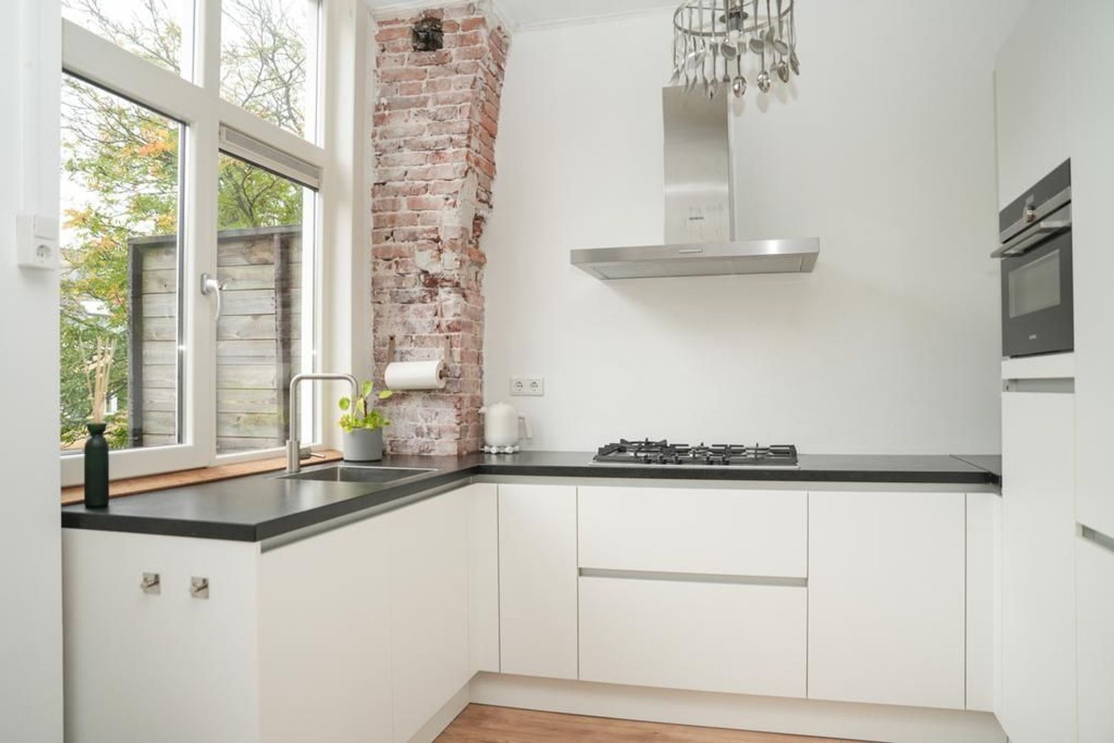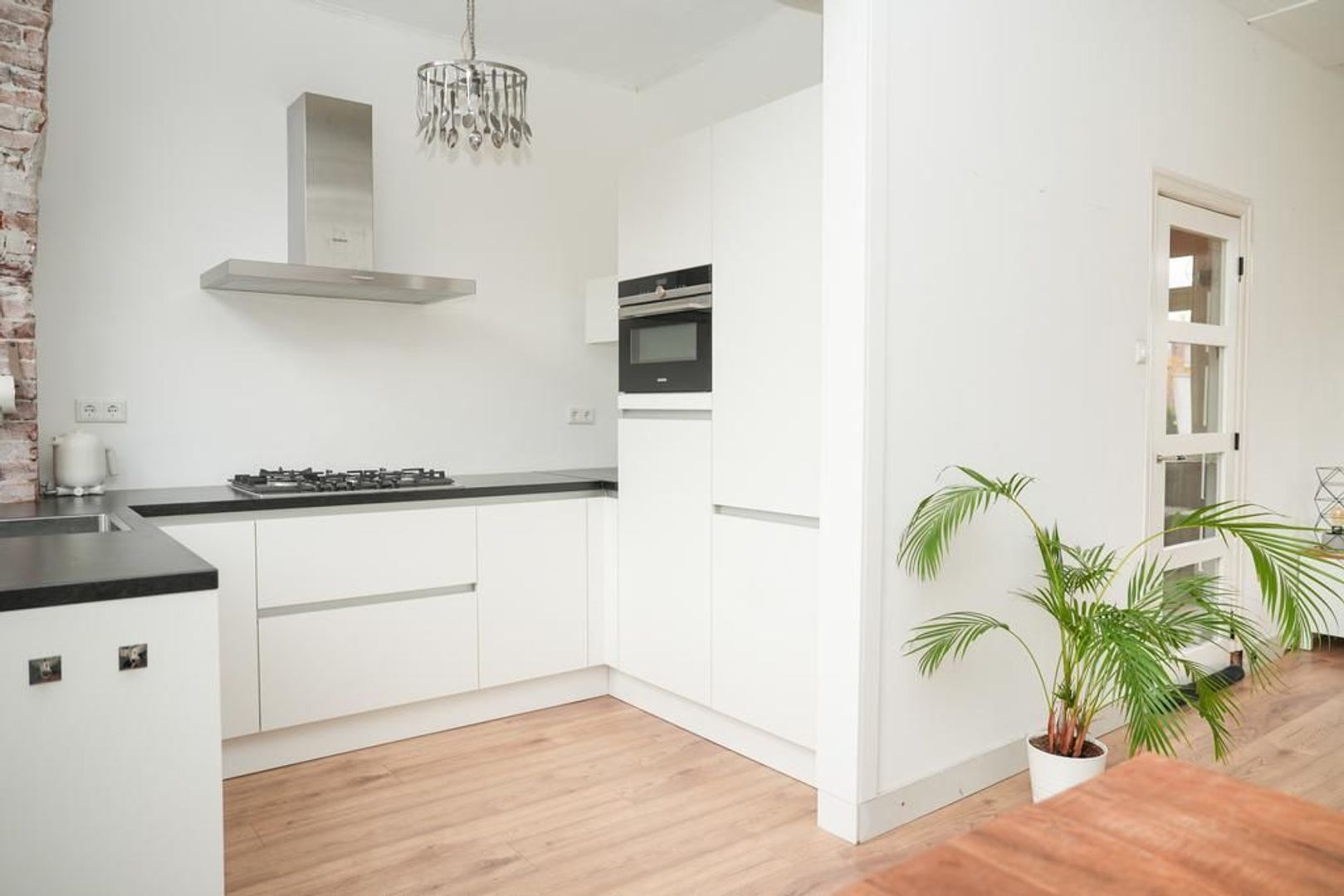 Overloop met separaat toilet en de trapopgang naar de tweede verdieping. Op deze verdieping tref je een ruime woonkamer met open keuken en een fijn balkon. De heerlijke woonkamer met schouw is aan de voorzijde van de woning gelegen. Aan de voorzijde tref je tevens een extra ruimte, grenzend aan de woonkamer, die perfect kan worden ingericht als speelruimte of werkplek. Aan de achterzijde bevindt zich de eetkamer en keuken. In de eetkamer is plek voor een ruime eettafel waar gezellig geborreld en gedineerd kan worden. De moderne keuken is geplaatst in 2018 en uitgerust met inbouwapparatuur zoals een 5-pits gastoestel, afzuigkap, combi-oven, koelkast, vriezer en een vaatwasser. De in het zicht gelaten oude bakstenen muur geeft een unieke sfeer aan de keuken. Via de openslaande deuren betreedt je het balkon. Het balkon is gelegen op het noord- westen. In de zomer kan je hier tot de late uren genieten van de zon.