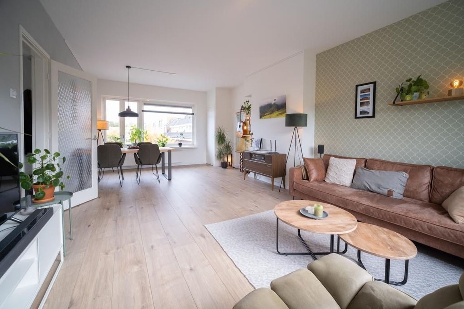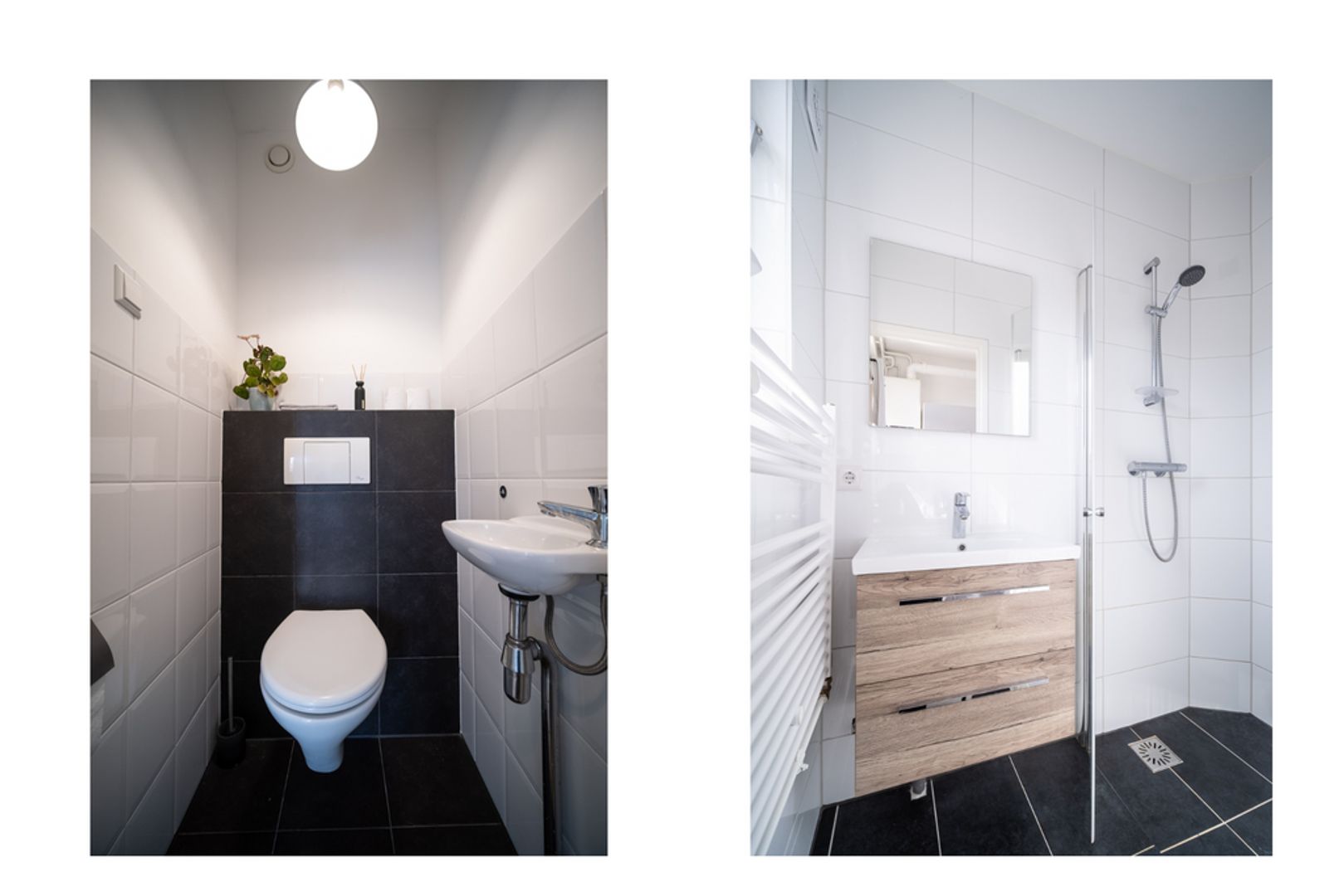 Ruime entree met separaat toilet, een trapopgang en toegang de woonkamer, de keuken en de twee slaapkamers. De woonkamer is ruim en heeft een fijne lichtinval. In de woonkamer is voldoende ruimte voor het creëren van een gezellige zithoek en het plaatsen van een grote eettafel. De woonkamer heeft een hoge staat van afwerking en is voorzien van een nette wand- en vloerafwerking. De keuken grenst aan de woonkamer en heeft een moderne uitstraling. De keuken is voorzien van een vierpits-gasfornuis, een combioven, een afzuigkap, een vaatwasser en een koel/vries combinatie. Vanuit de keuken zijn de badkamer en het balkon bereikbaar. De badkamer is voorzien van een inloopdouche, een wastafel met wastafelmeubel en een handdoekenradiator. Het balkon is gelegen op het zonnige zuiden. Op zonnige dagen kun je hier gehele dag genieten van de zon. Het appartement heeft twee slaapkamers. Beide slaapkamers hebben een fijn formaat, hier is voldoende ruimte voor het plaatsen van een bed en/of kledingkast.