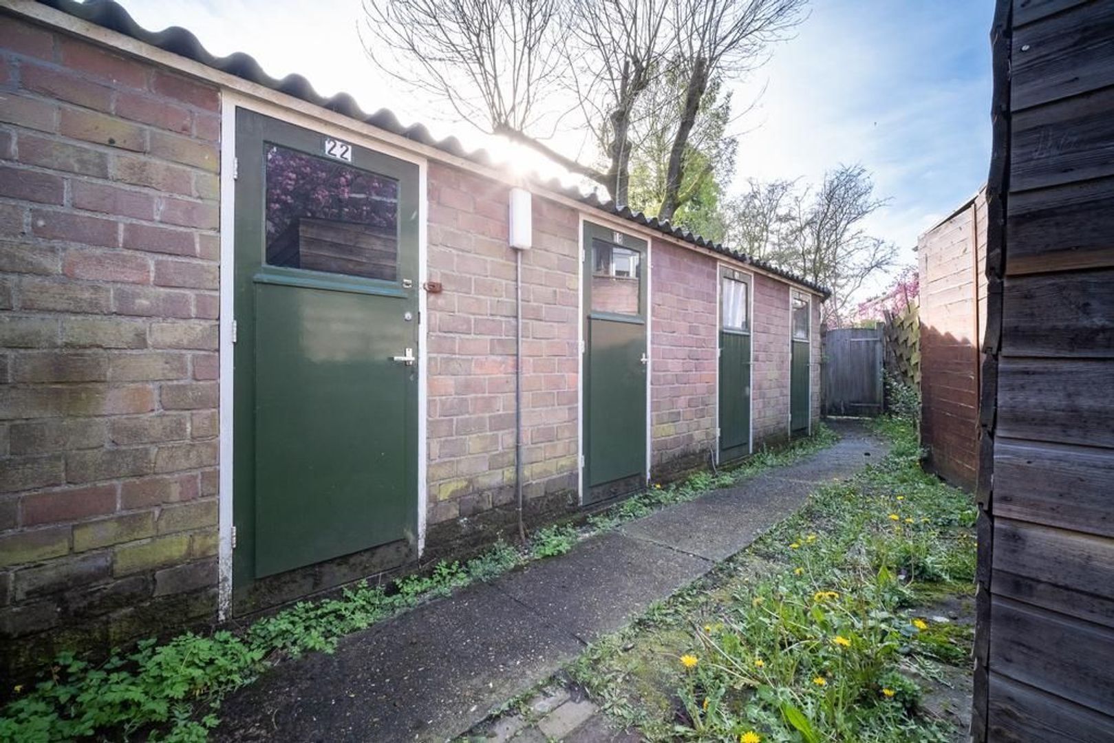 Gemeenschappelijke entree met toegang tot de eerste verdieping. Buiten, op de begane grond, is de berging gelegen. De berging is gelegen achter een gesloten hek waar alleen de bewoners de sleutel van hebben.