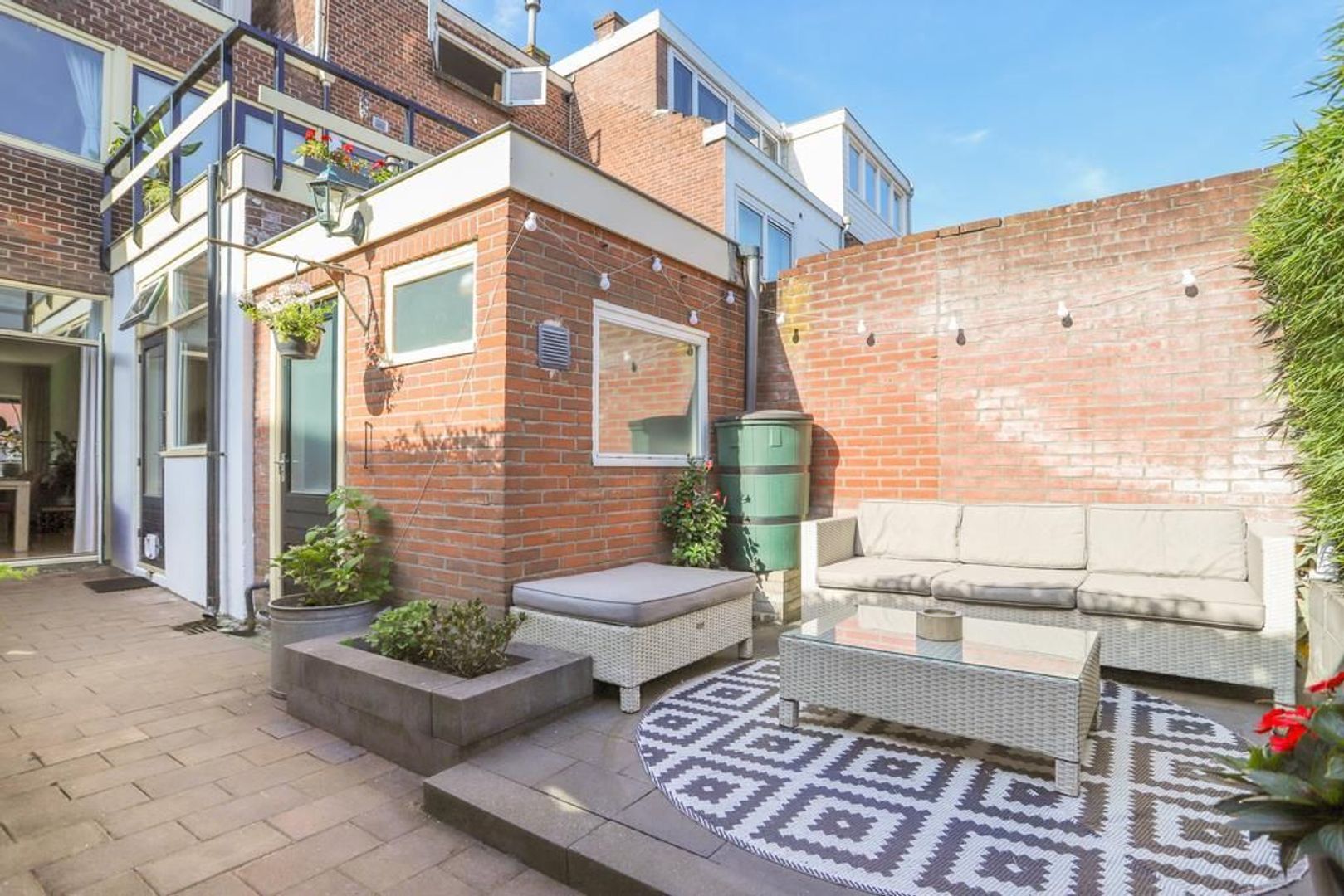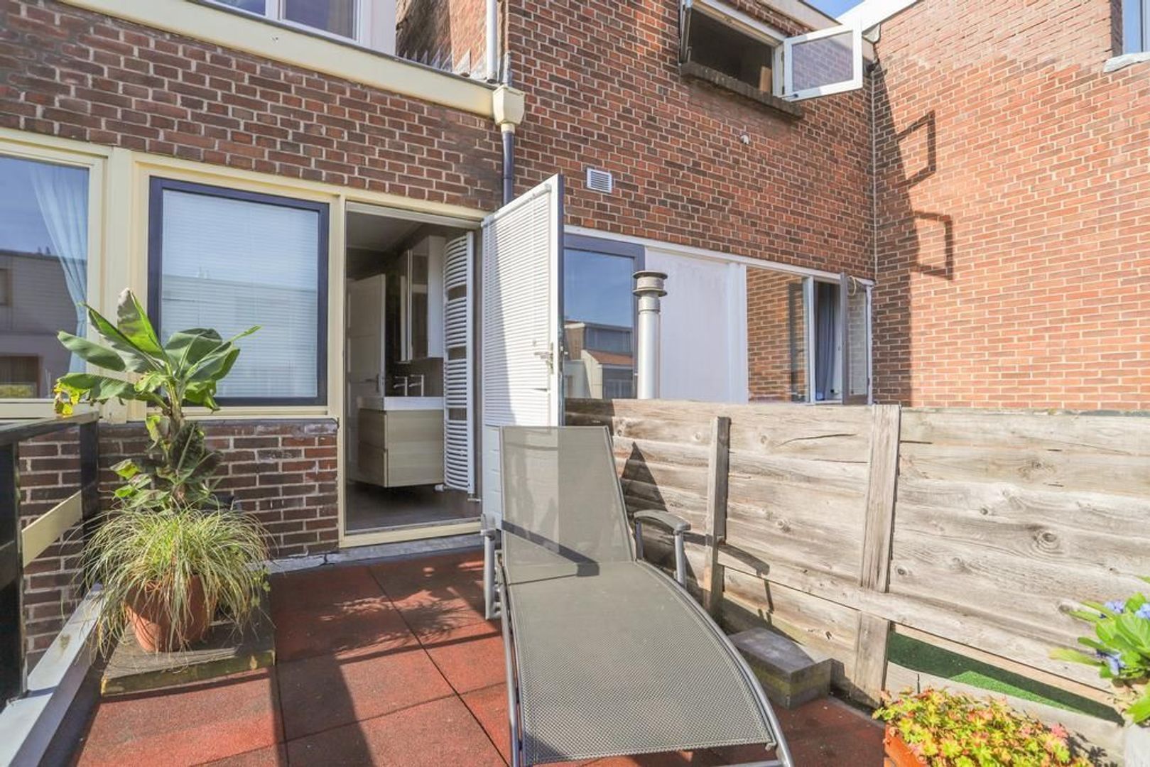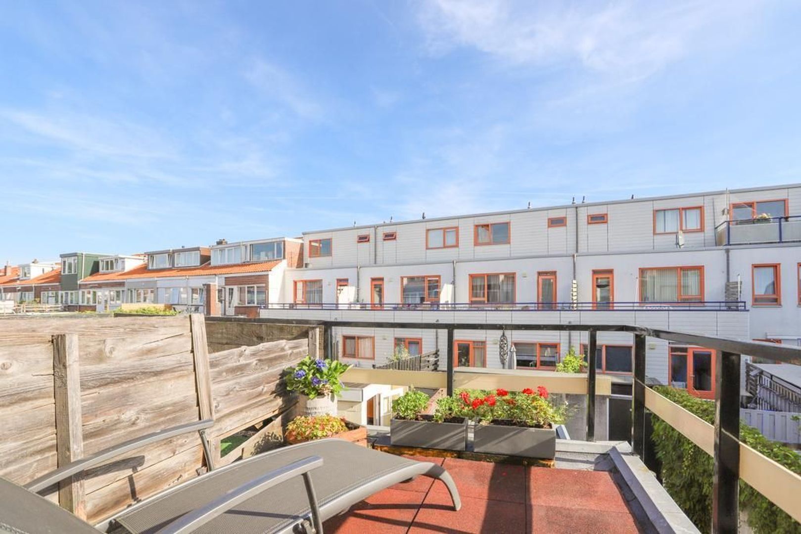 • Achtertuin en dakterras zijn gelegen op het noordoosten waardoor er altijd een plek in de zon én schaduw te vinden is (achtertuin voorzien van achterom en berging);