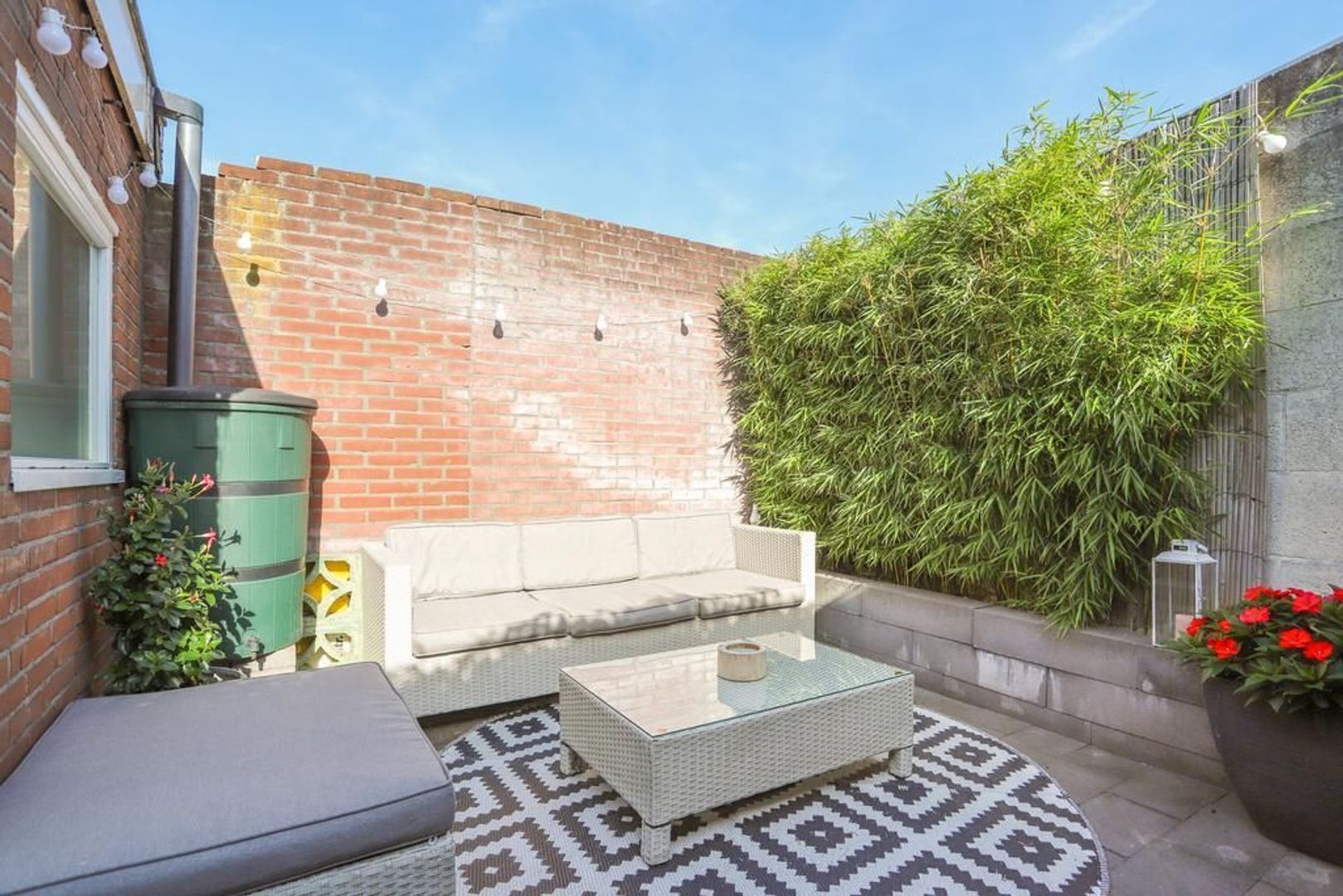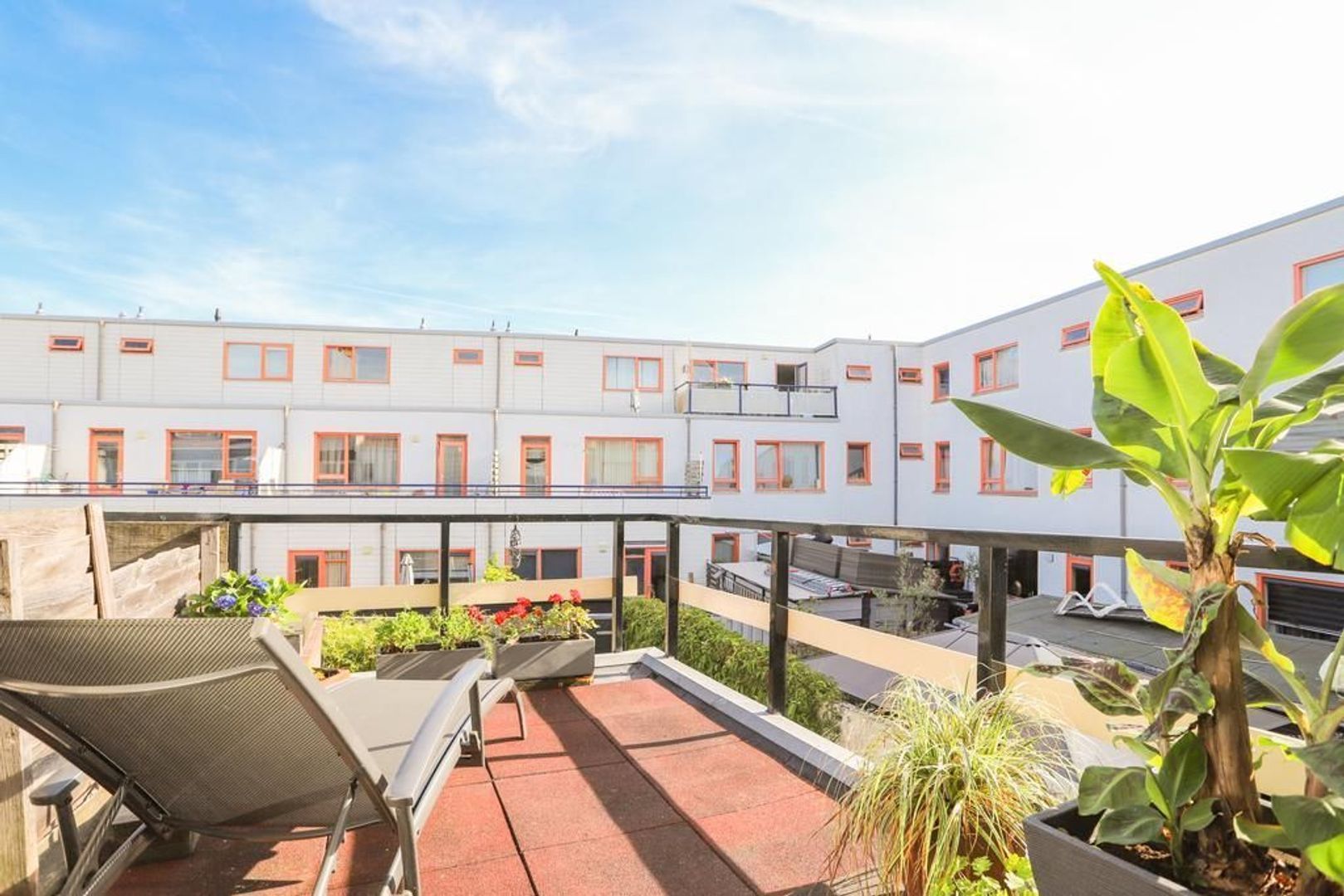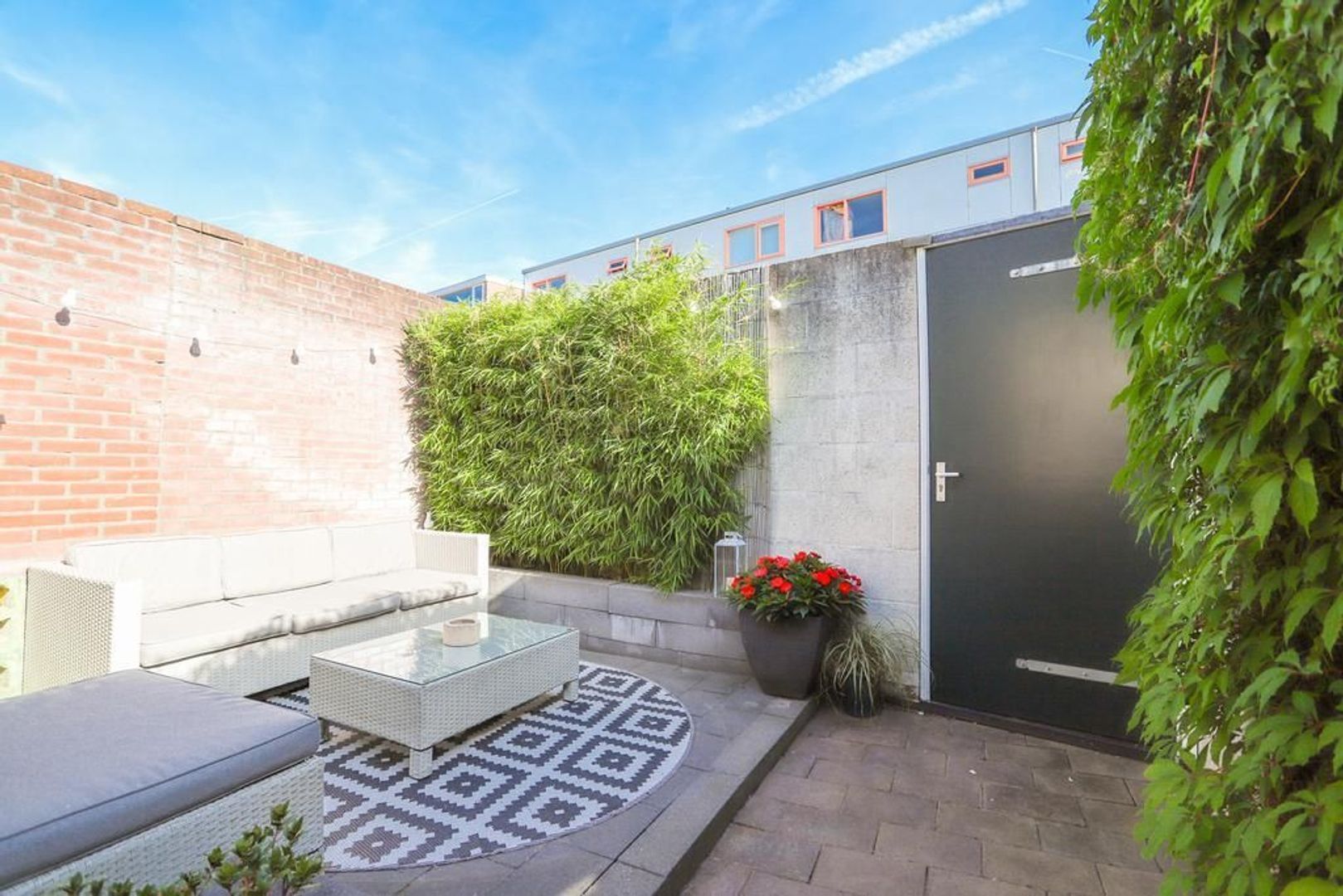 • Achtertuin en dakterras zijn gelegen op het noordoosten waardoor er altijd een plek in de zon én schaduw te vinden is (achtertuin voorzien van achterom en berging);