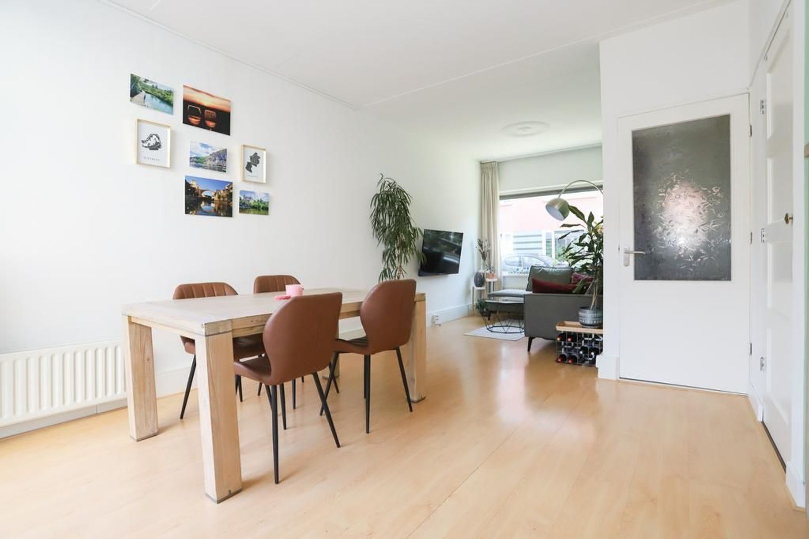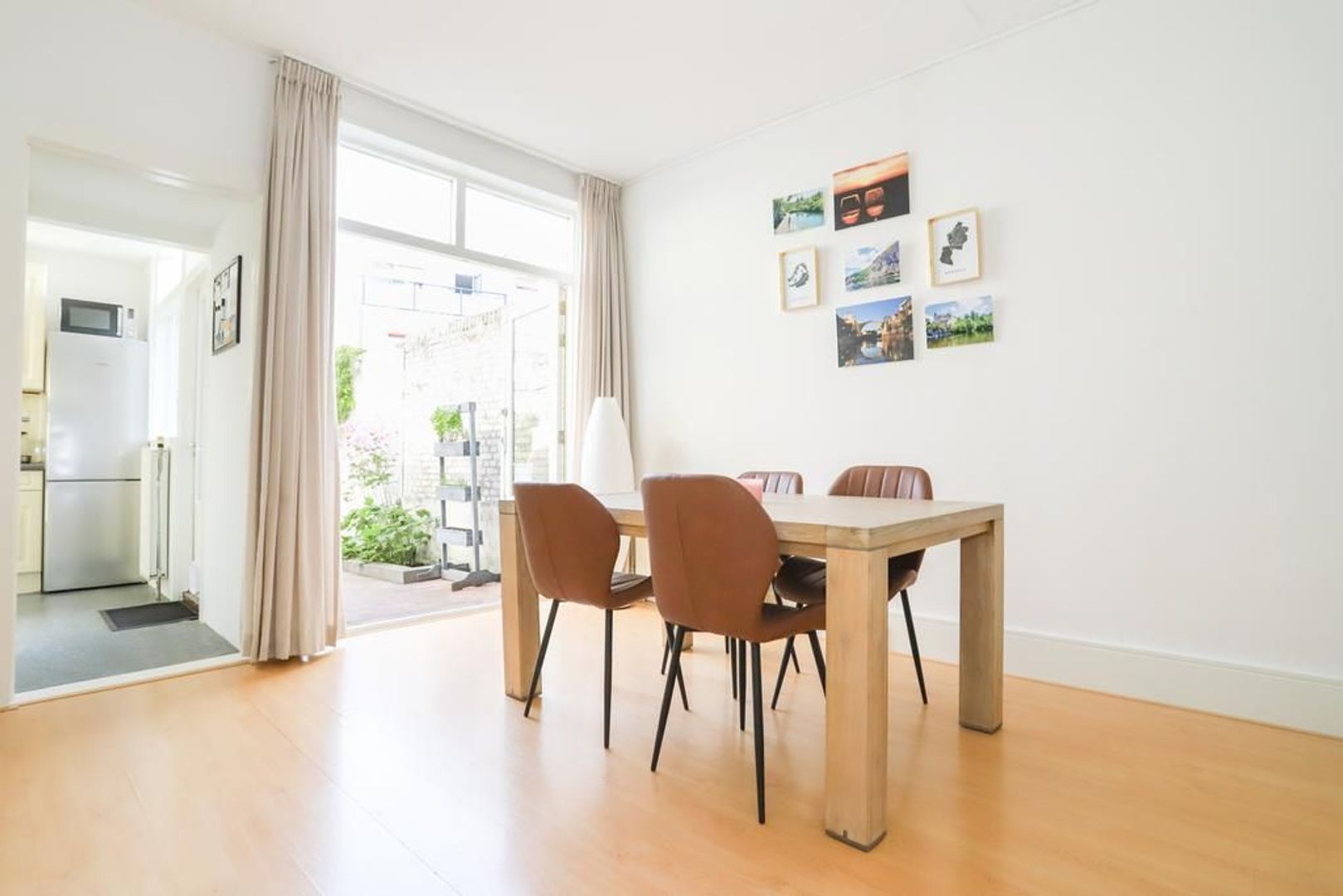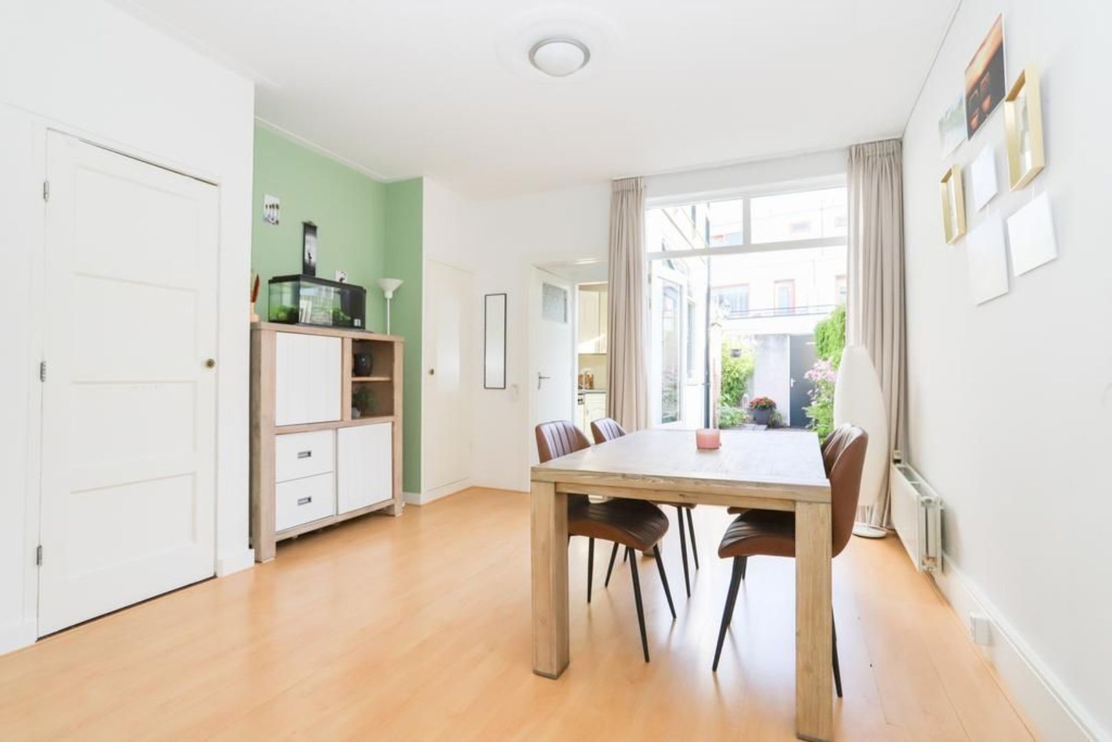 Begane grond: Entree met glas-in-lood raam in de voordeur, trapopgang naar de eerste verdieping. De sfeervolle woon- en eetkamer zijn voorzien van een nette laminaatvloer en strak gestukte wanden en plafond. Aan de voorzijde van de woning is de fijne zithoek gelegen met een groot raampartij waardoor er veel daglicht binnen komt. De tuingericht eetkamer biedt voldoende plek voor een royale eettafel waar gezellig gedineerd kan worden met vrienden en familie. Via de openslaande deuren is de achtertuin bereikbaar. De kelderkast biedt nog extra opbergruimte aan.