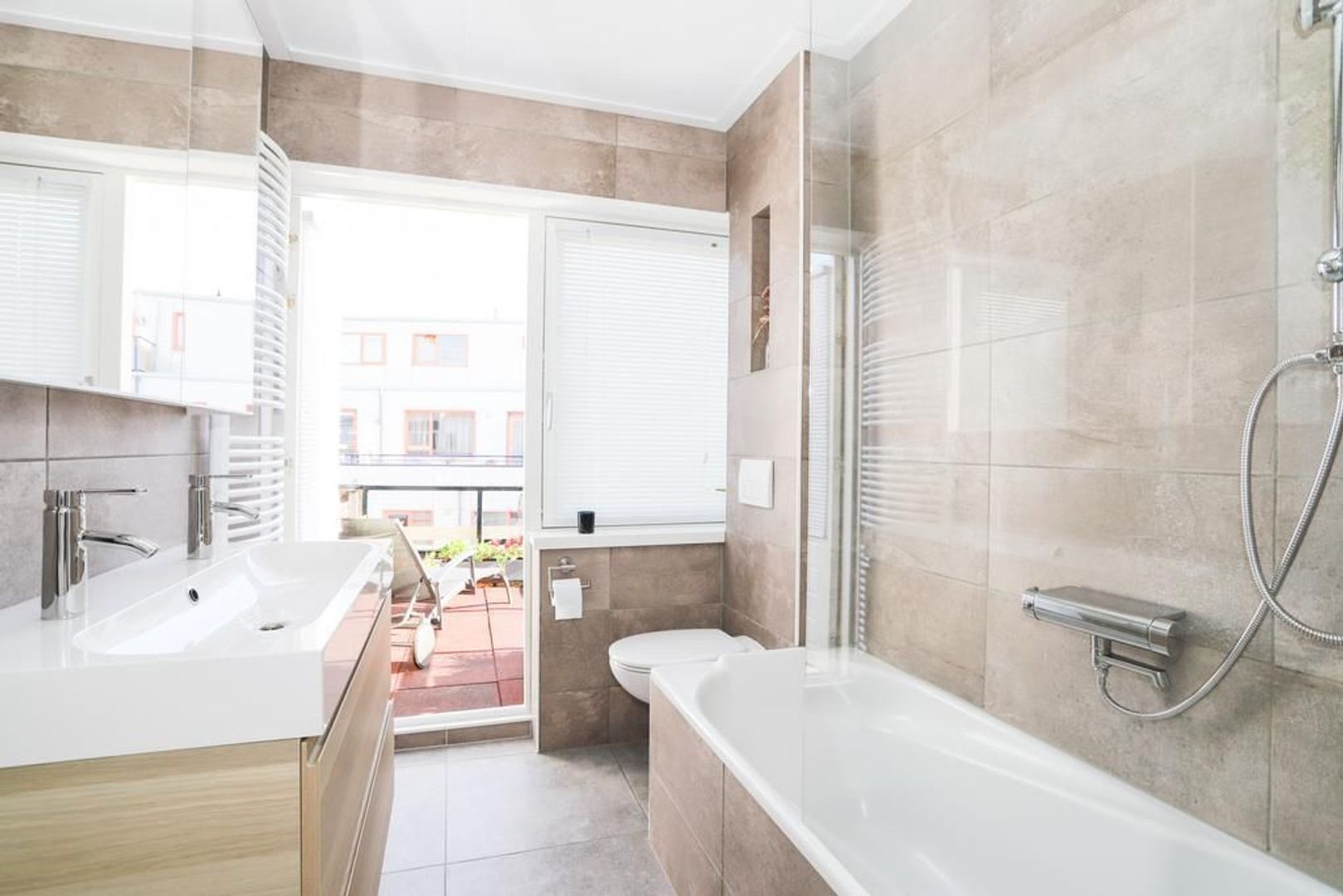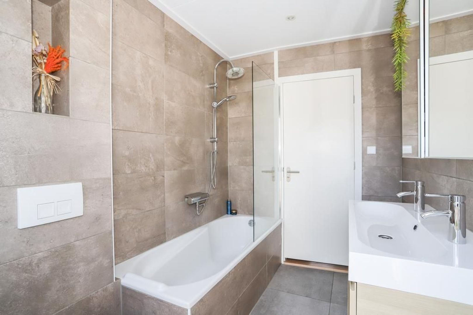 Eerste verdieping: Overloop. Op deze verdieping zijn twee ruime en lichte slaapkamers gesitueerd waarvan één met ruime inbouw(trap)kast en beide v.v. horrengaas. De moderne badkamer (2021) is uitgevoerd met tegelwerk en voorzien van een ligbad met douche voorziening, tweede toilet, designradiator en een wasbak met dubbele kranen. Verder geeft de badkamer toegang tot het zonnige dakterras die gelegen is op het noordoosten.