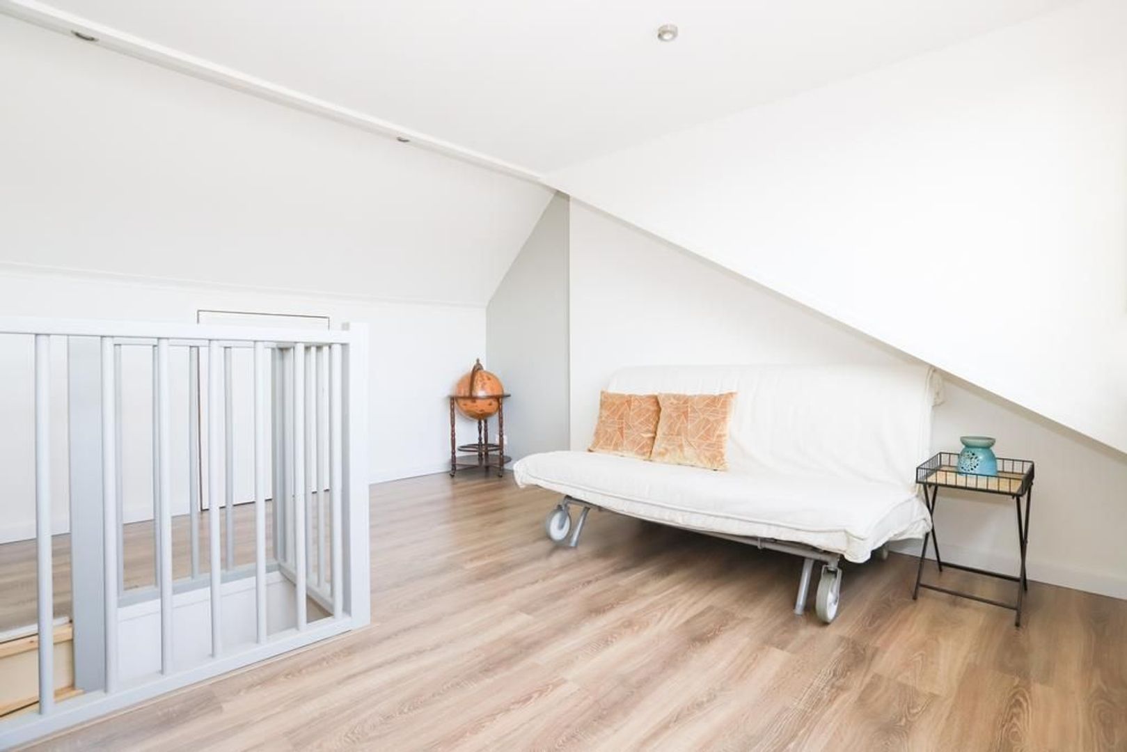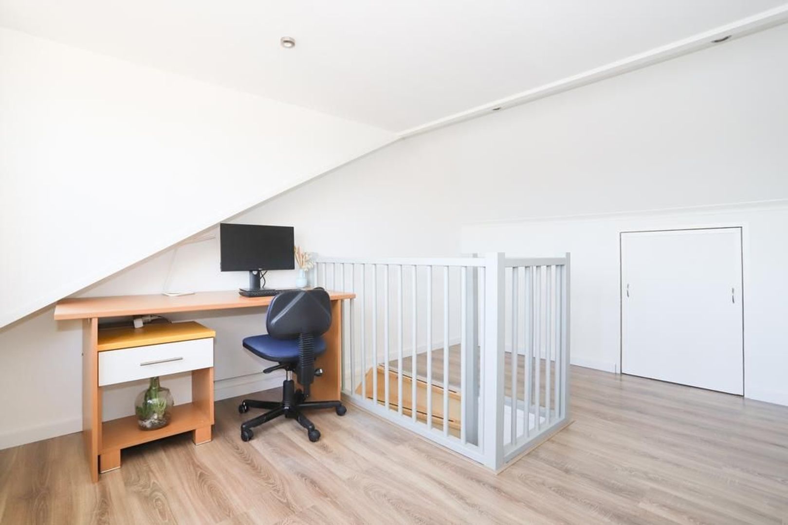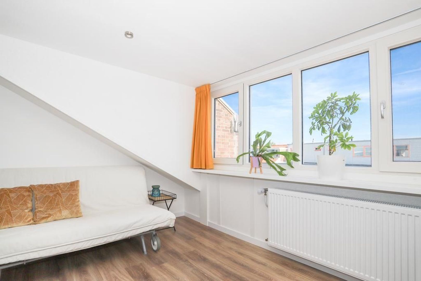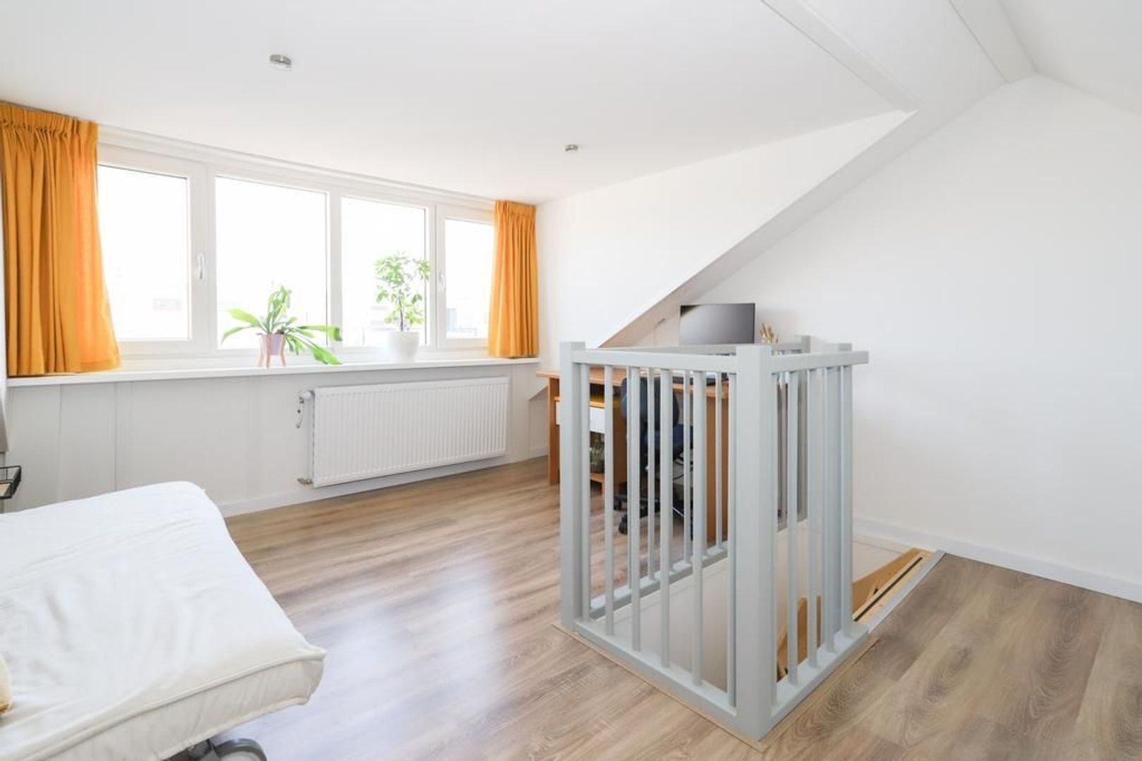 Tweede verdieping: Op deze verdieping is de multifunctionele zolderverdieping aanwezig. Deze ruimte kan gebruikt worden als derde slaapkamer, werkkamer of als hobbyruimte. In 2022 is het volledig gerenoveerd en voorzien van een dakkapel met kunststof kozijnen, zijn alle muren en daken volledig geïsoleerd en zijn dimbare in- en opbouwspots geplaatst. Door de dakkapel is hier een zee van ruimte en licht ontstaan. Achter het knieschotten is er nog voldoende bergruimte.