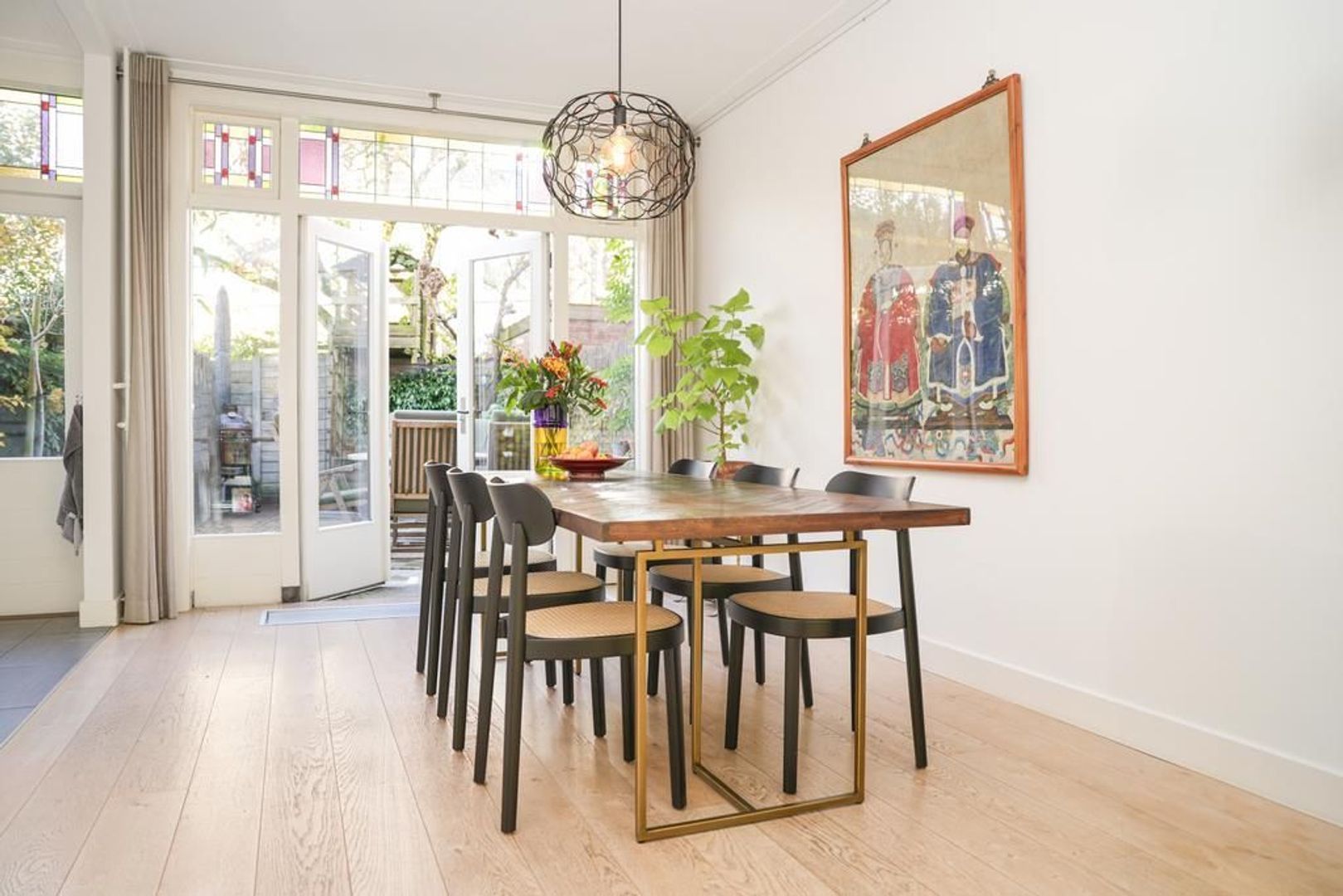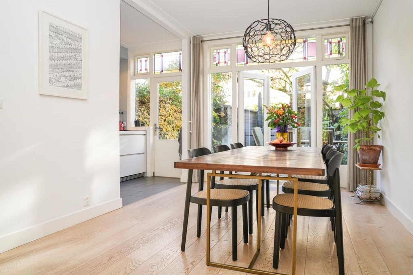 De deze heerlijke jaren '30 tussenwoning is centraal gelegen. De woning is voorzien van authentieke details zoals het tegelwerk in de hal, de granito vloer, glas-in-lood ramen, paneeldeuren en de erker in de woonkamer. De afgelopen jaren is de woning met zorg bewoond en onderhouden. In de zonnige voortuin kan je genieten van de zon maar er is ook voldoende ruimte voor het stallen van o.a. de fietsen. De sfeervolle woonkamer is heerlijk licht en ruim. Aan de voorzijde is een fijne zithoek en aan de achterzijde een ruime eethoek met toegang tot de open moderne Bulthaup keuken met diverse inbouwapparatuur. Aan de voor- en achterzijde van de woning zijn de ramen voorzien van glas-in-lood. Via de keukendeur of via de openslaande deuren is de achtertuin bereikbaar. De tuin is gelegen op het noordwesten (eind ochtend/middag/avondzon) en heeft een berging en een achterom. Op de eerste verdieping zijn drie slaapkamers en de moderne badkamer gesitueerd. Op de zolderverdieping is een vierde slaapkamer met eigen ligbad gesitueerd, daarnaast een ruime overloop met voldoende bergruimte achter de schotten en op de vliering. Tevens is er ruimte voor het plaatsen van de wasmachine en CV-ketel. Een heerlijk huis die aan alle hedendaagse eisen en wensen voldoet!
