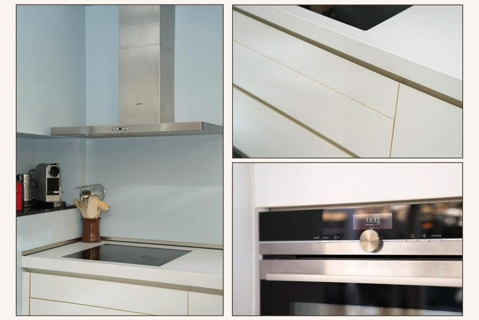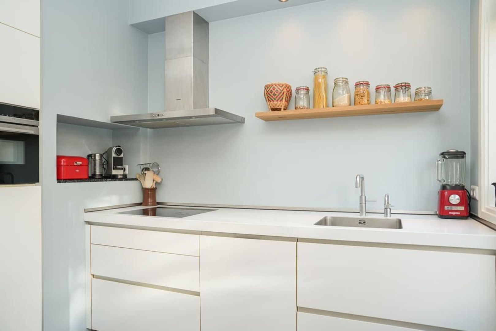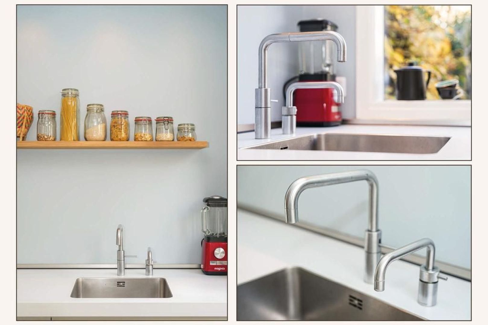 De moderne open keuken is voorzien van inbouwapparatuur zoals een inductiekookplaat, afzuigkap, combi-oven, koelkast, quooker en een vaatwasser. Via de openslaande deuren of via de deur in de keuken is de achtertuin bereikbaar. De achtertuin is gelegen op het noordwesten en voorzien van verschillende terrassen, een berging, een achterom en een eigen boomhut. Ook zijn er verschillende plantenborders en bomen aanwezig.