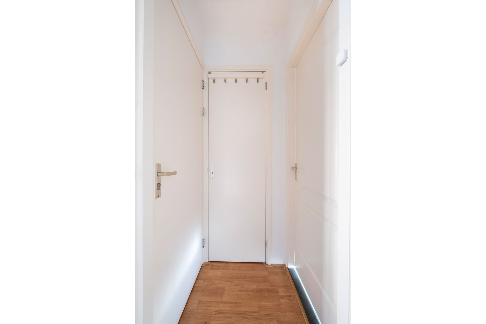 Bij binnenkomst betreed je de woning, waar je direct toegang hebt tot de woonkamer, de badkamer en een handige vaste kast met wasmachineaansluiting. De sfeervolle woonkamer biedt, door de praktische indeling, voldoende ruimte voor een grote bank en een eettafel. De open keuken, die aansluit op de woonkamer, is netjes afgewerkt en voorzien van een koelkast met vriesvak, een magnetron, combi-oven, een 4-pits kookplaat en een rvs afzuigkap. De slaapkamer bevindt zich aan de achterzijde van de woning en biedt toegang tot een fijn terras van bijna 8m² waar door de ideale ligging op het zuidoosten hier gedurende bijna de hele dag zon te vinden is. De moderne badkamer is uitgerust met een douche met regendouchekop, een wastafel met wastafelmeubel en spiegelkast en een toilet.