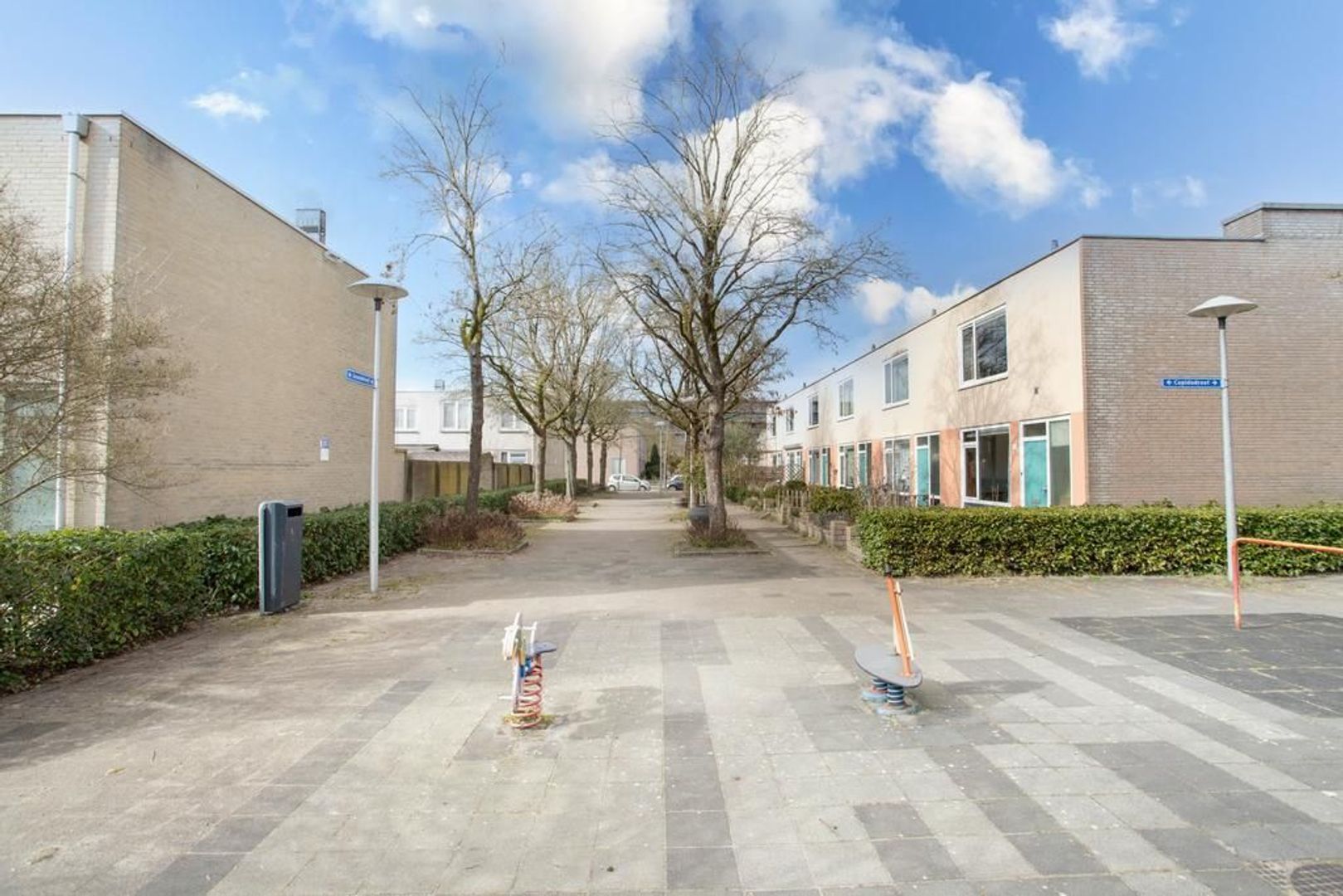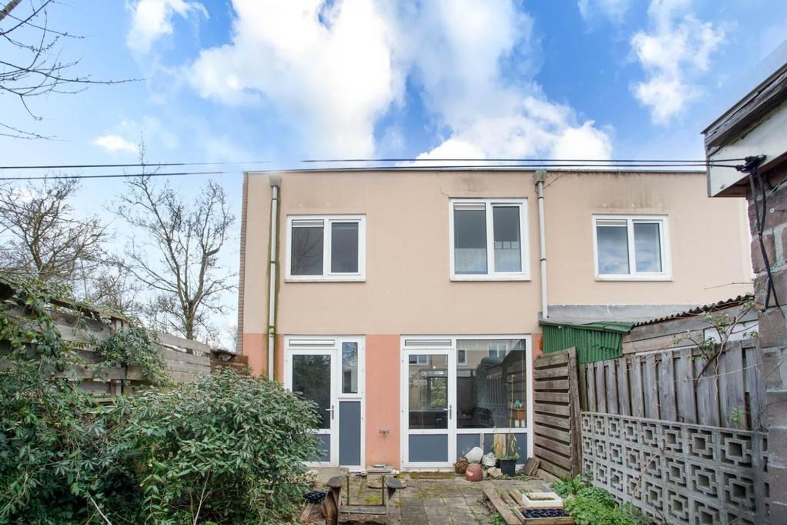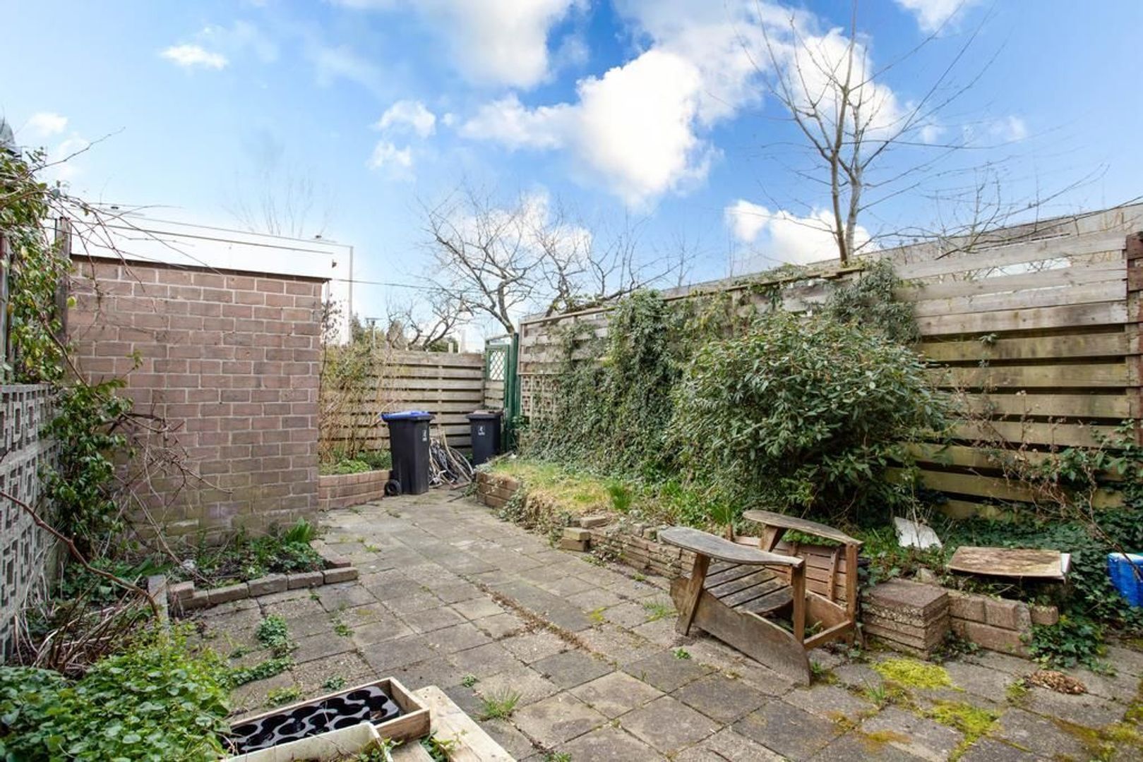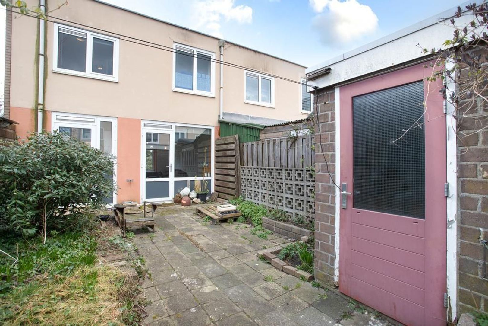 Je komt eerst in de voortuin. Bij binnenkomst van de woning betreed je de hal, met toegang tot het toilet, de ruime woonkamer, de keuken en de trapopgang naar de eerste verdieping. Zowel de woonkamer als de keuken bieden toegang tot de achtertuin. De achtertuin ligt op het zuidoosten, heeft een vrijstaande berging en een achterom.