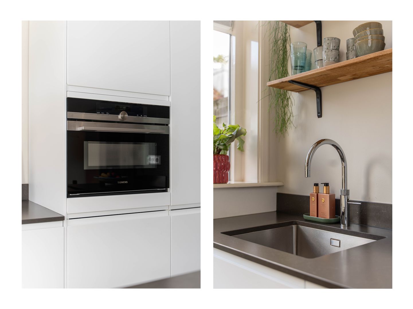 De keuken (uit 2023) met kookeiland is modern vormgegeven en voorzien van diverse inbouwapparatuur, waaronder een inductiekookplaat met geïntegreerd afzuigsysteem, combi-oven/magnetron, koel-/vriescombinatie en vaatwasser. Vanuit de keuken heb je toegang tot de fraai aangelegde achtertuin (zuid-oostelijke ligging), met een stenen berging en een achterom. Dankzij de lage bebouwing in de omgeving geniet je hier van verrassend veel zon én privacy.