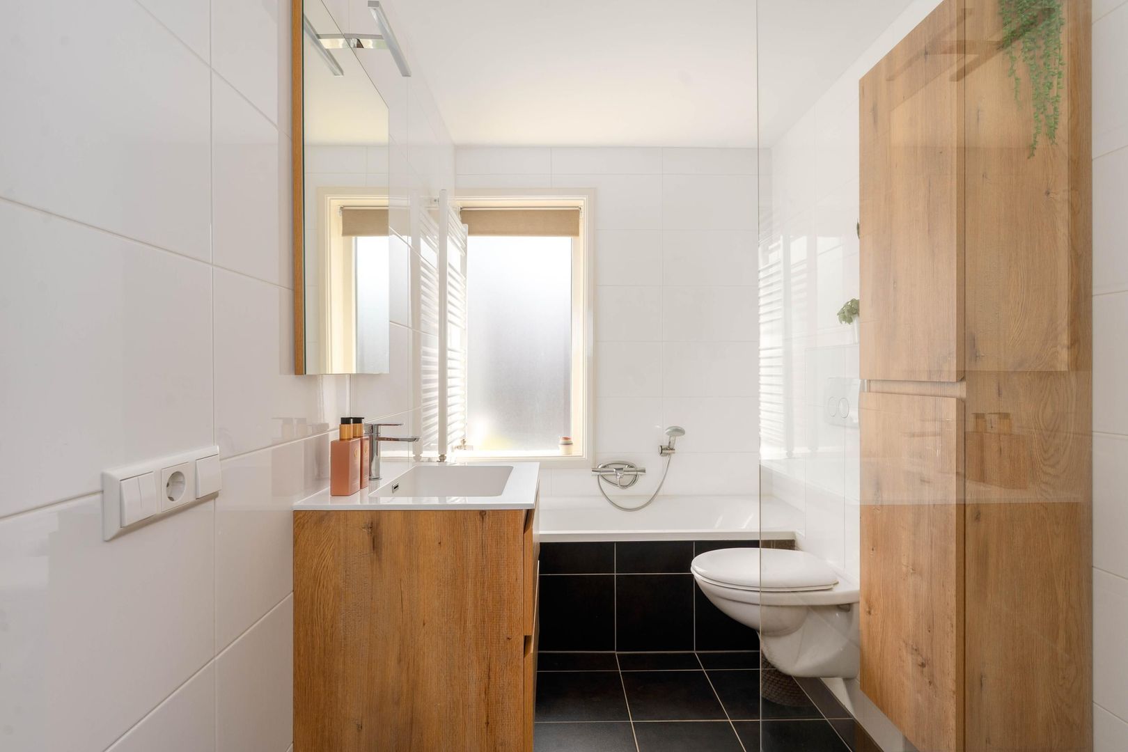 Op deze verdieping bevinden zich drie slaapkamers, waarvan twee ruim van formaat. Eén van de kamers biedt via openslaande deuren toegang tot een balkon. De derde kamer is compact, maar uitstekend geschikt als werk-, baby- of logeerkamer. De moderne badkamer is voorzien van een ruime inloopdouche, ligbad, tweede toilet en wastafel met meubel.