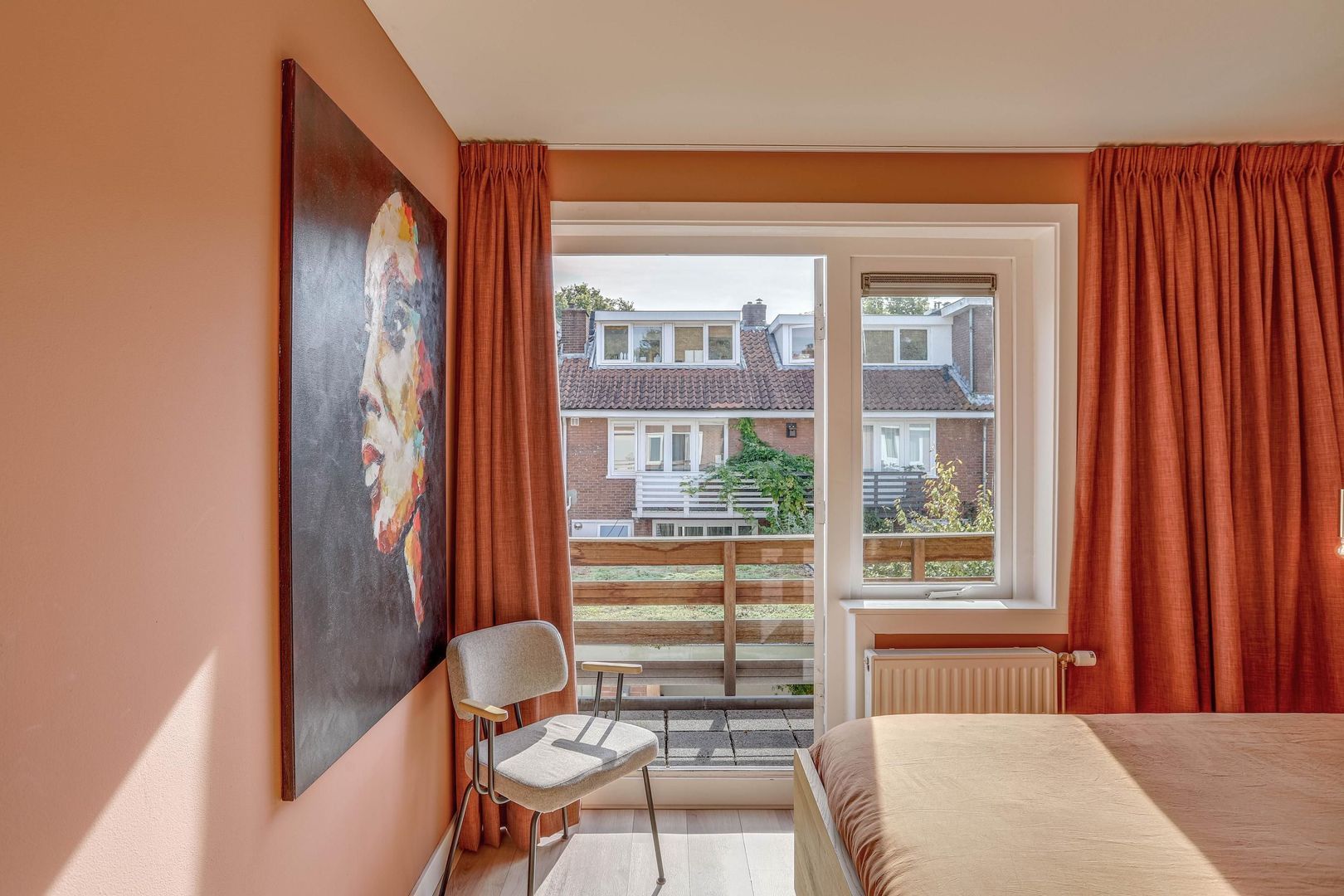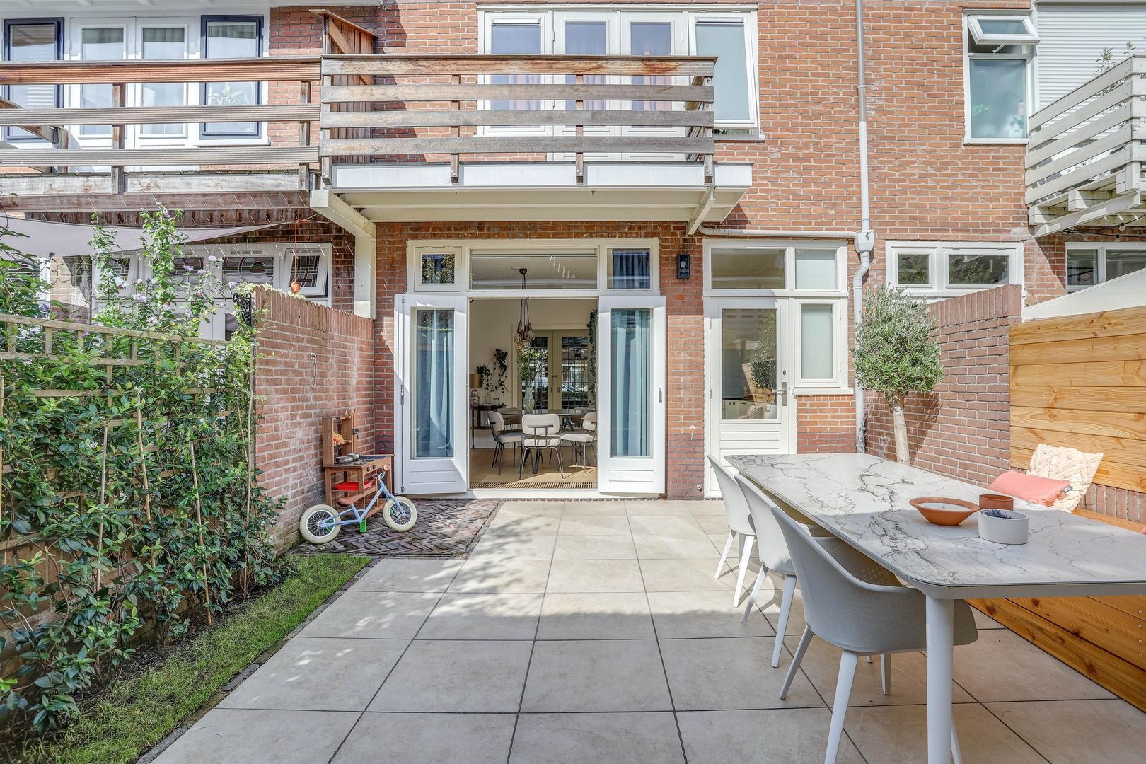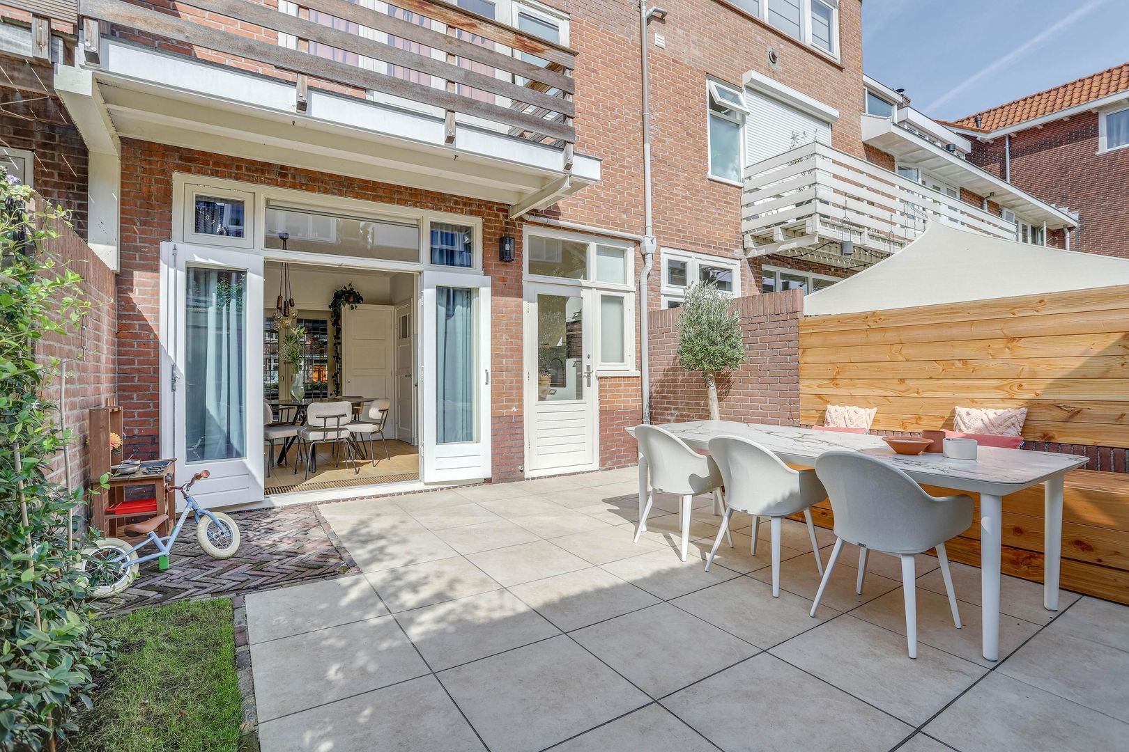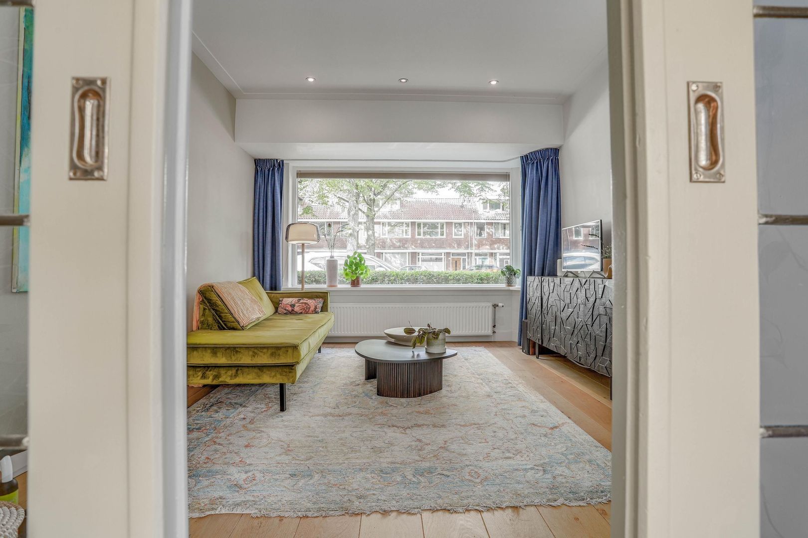 De entree/hal van deze woning wordt middels de voortuin met heg bereikt. De voortuin is nieuw aangelegd door de huidige bewoners. In de hal bevindt zich de trapopgang naar de eerste verdieping, het gastentoilet en bereik je de woonkamer. De woonkamer is voorzien van een gezellige erker en grote ramen welke uitzicht bieden op de voortuin en de brede straat met groenstrook. De woonkamer leent zich uitstekend voor een ruime zithoek. De en-suite-deuren met glas-in-lood ramen geven toegang tot de ruime eetkamer met aansluitend de open keuken. In zowel de woonkamer als eetkamer bevindt zich een inbouwkast met fijne extra bergruimte. De eetkamer is erg ruim waardoor er ruimte is voor een grote tafel waar heerlijk aan geborreld en gedineerd kan worden. De keuken heeft een moderne uitstraling en is voorzien van het volgende inbouwapparatuur: inductiekookplaat, afzuigkap, vaatwasser, quooker, koelkast en vriezer. De grote raampartijen zorgen gedurende de heel de dag voor een fijne daglicht inval in de woning. Door de enkele en dubbele openslaande deuren is de tuin makkelijk te betreden. De tuin is gelegen op het oosten waardoor er gedurende het grootste deel van de dag een plekje in de zon of schaduw te vinden is. De tuin is fraai aangelegd en helemaal vernieuwd in 2024. De tuin beschikt over een terras, diverse planten borders, een veranda en een berging. De overkapping is de ideale plek om tot in de late uurtjes en/of op slechtere dagen te genieten van de buitenlucht. De berging en overkapping hebben een sedum dak. Dit dak is erg onderhoudsarm en door het sedum dak wordt de temperatuur in de berging beter gereguleerd.