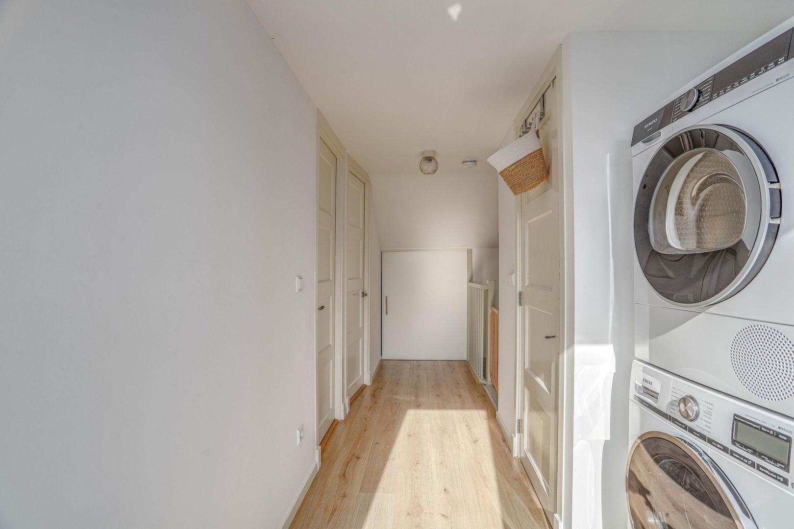 Op de tweede verdieping bevinden zich een ruime overloop en door het plaatsen van de opbouw zijn er nog twee volledige slaapkamers gecreëerd. Op de overloop zijn de aansluitingen voor de wasmachine en/of droger gelegen en is er een afgesloten ruimte voor de woninginstallaties. Van de twee slaapkamers heeft er één een dakkapel. Onder het schuin aflopende dak, achter de knieschotten, is nog een fijne extra bergruimte.