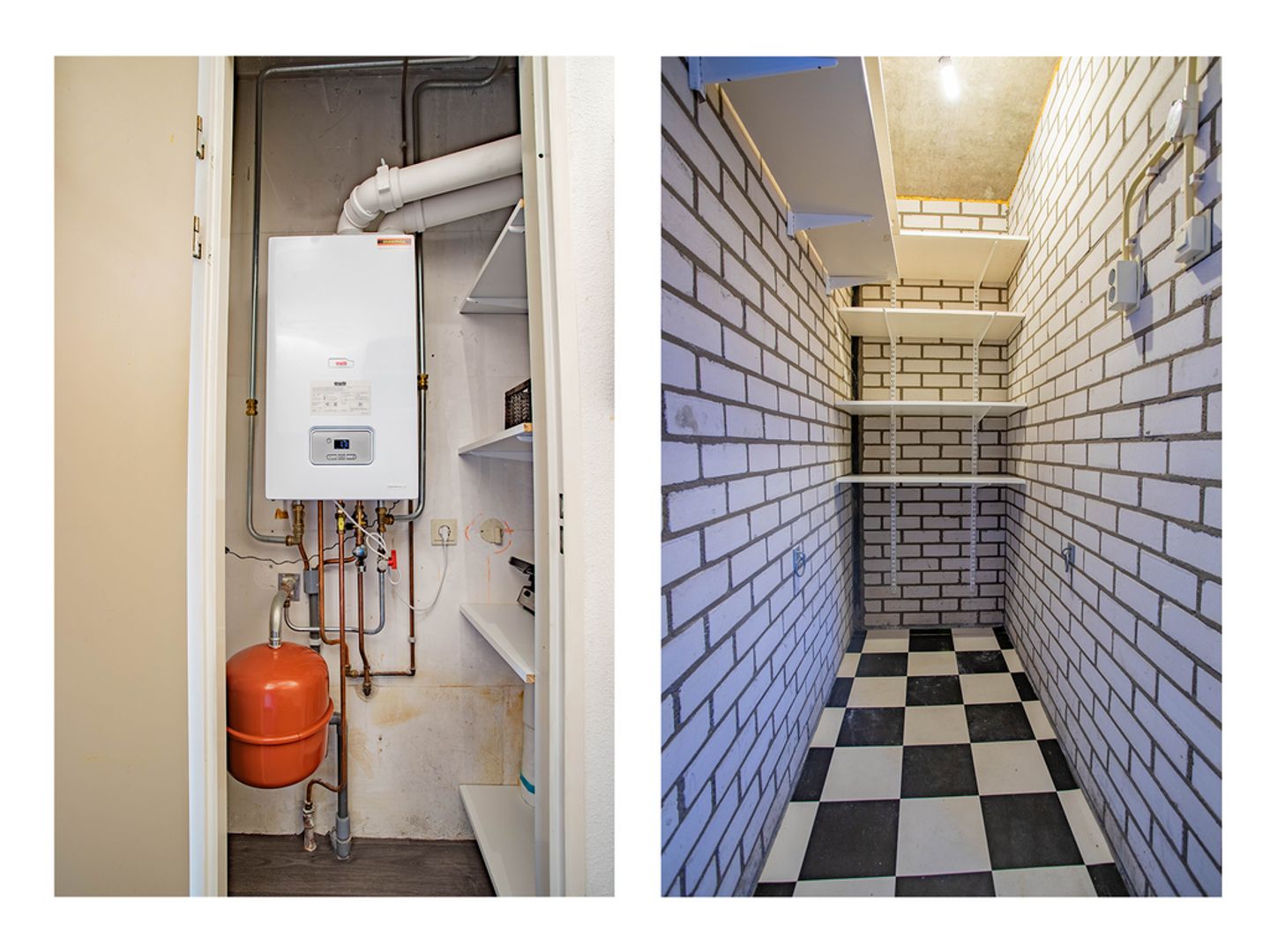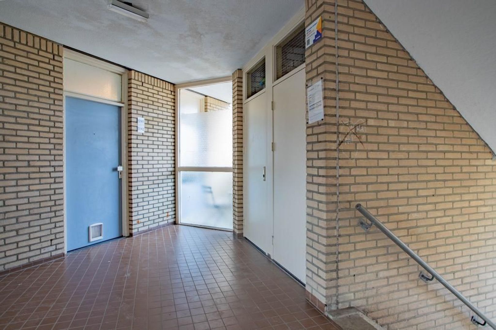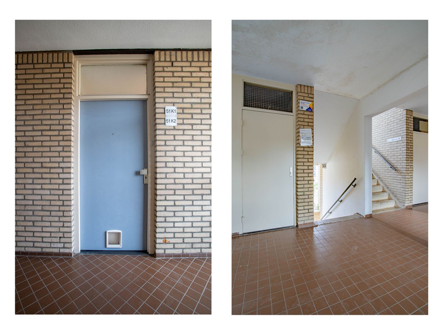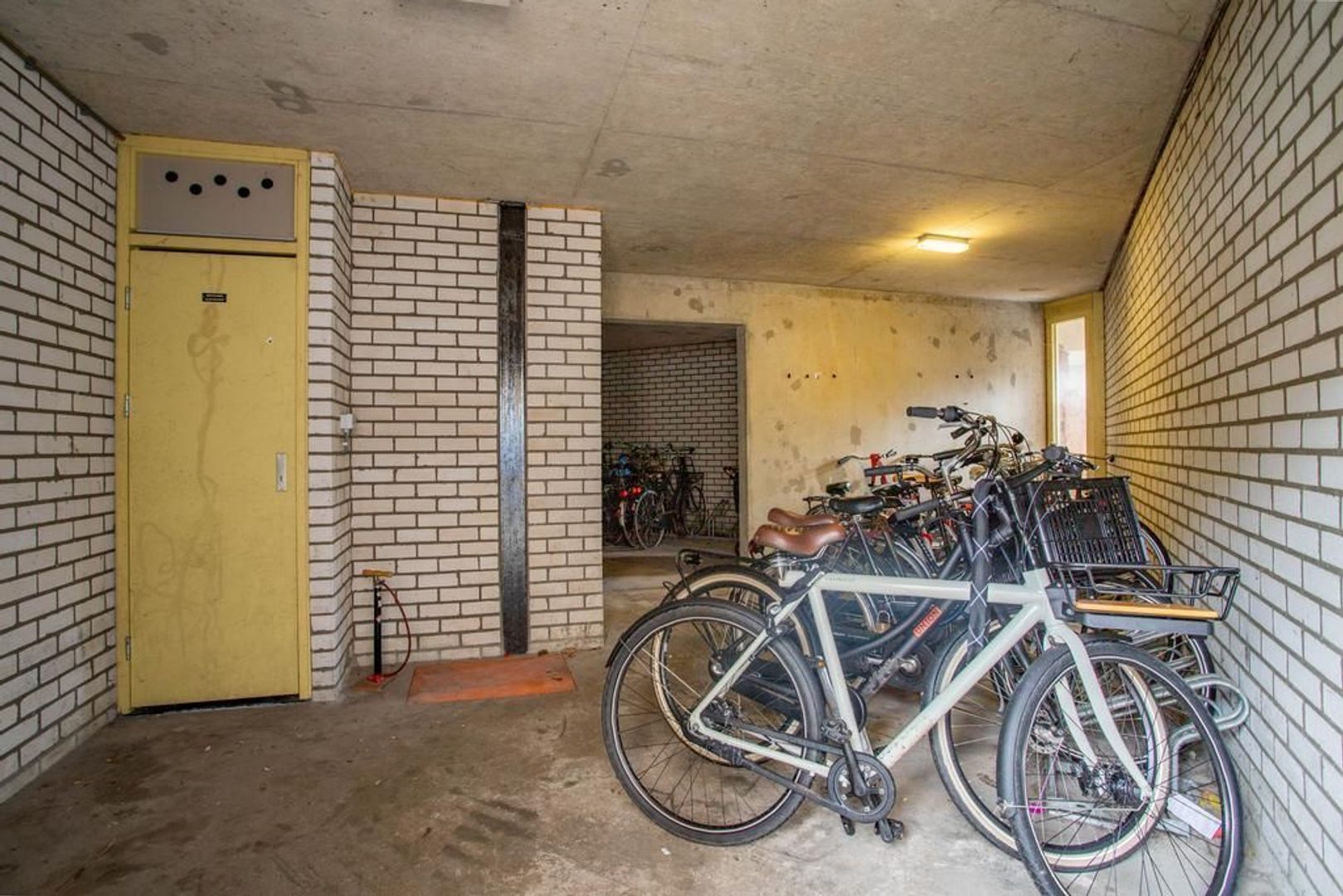 Gezamenlijk entree met brievenbussen, een fietshok, een trapopgang en toegang tot de bergingen. De berging is ruim en bevindt zich schuin tegenover de voordeur.
