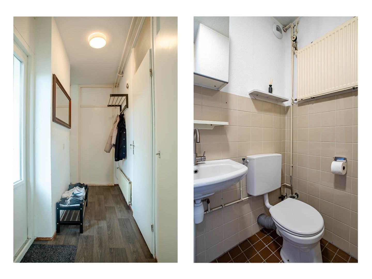 Entree/hal met toegang tot de woonkamer, het balkon en de badkamer. De lichte woonkamer is ingedeeld met een zit- en eetgedeelte. Deze ruimte is voorzien van een laminaatvloer. Via de woonkamer zijn het tweede balkon en de keuken bereikbaar. Beide balkons zijn gelegen op het noorden, bieden genoeg plek om heerlijk buiten te zitten en hebben fraai uitzicht over de woonwijk. De keuken is voorzien van inbouwapparatuur zoals een 4-pitsgasfornuis met een afzuigkap en een vaatwasser. Verder bevindt zich in de keuken een kast met cv-opstelling en is er ruimte om spullen op te bergen. Via de keuken zijn de slaapkamer en de woonkamer bereikbaar. De ruime slaapkamer biedt genoeg ruimte voor een werkplek, een tweepersoonsbed en een grote kledingkast. Via de hal bereik je de badkamer, deze is voorzien van een ligbad met douche, een toilet, een wastafel en heeft een witgoedaansluiting.